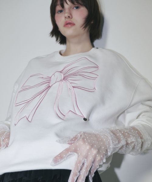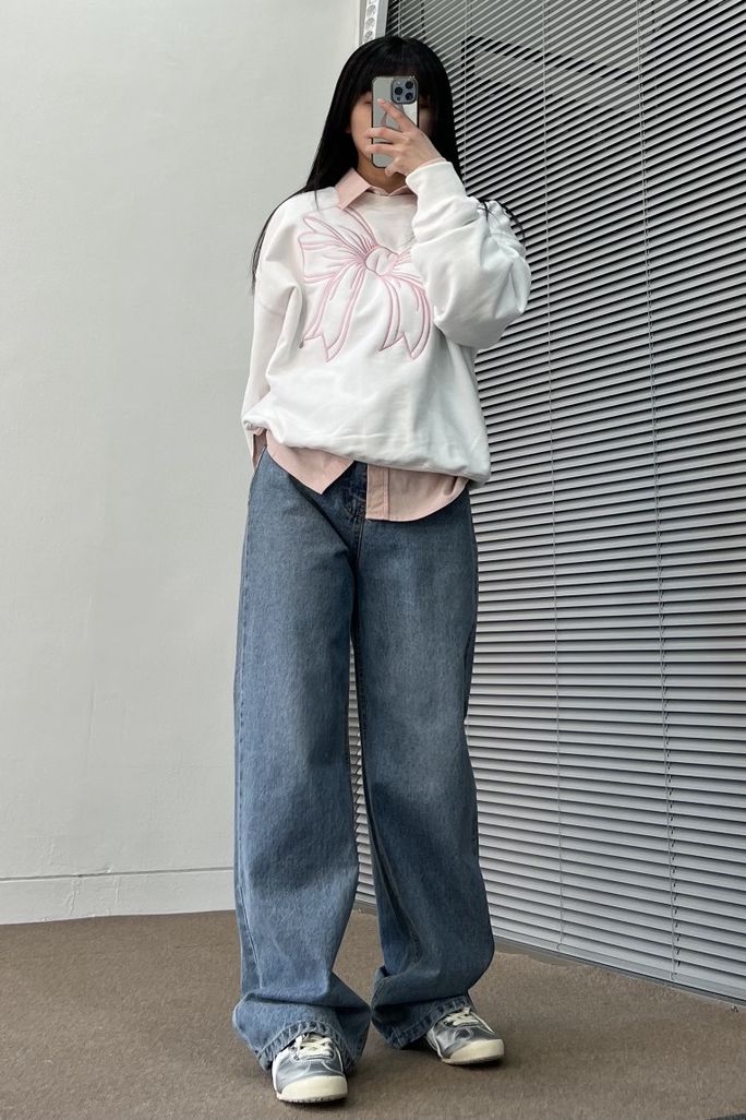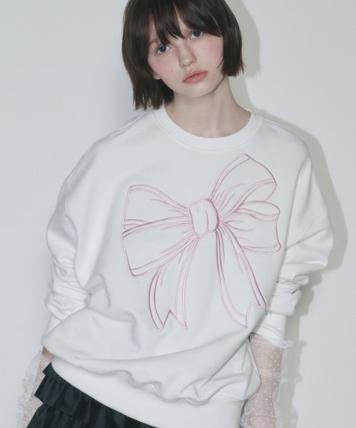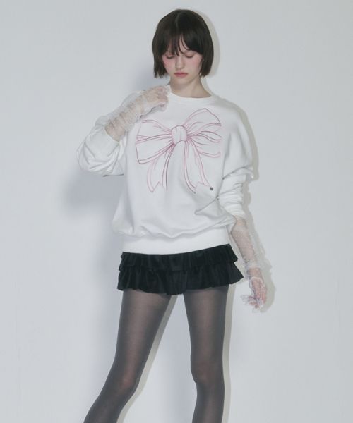 【限時優惠】韓國(RONRON) - BIG RIBBON LINE SWEATSHIRT WHITE PINK