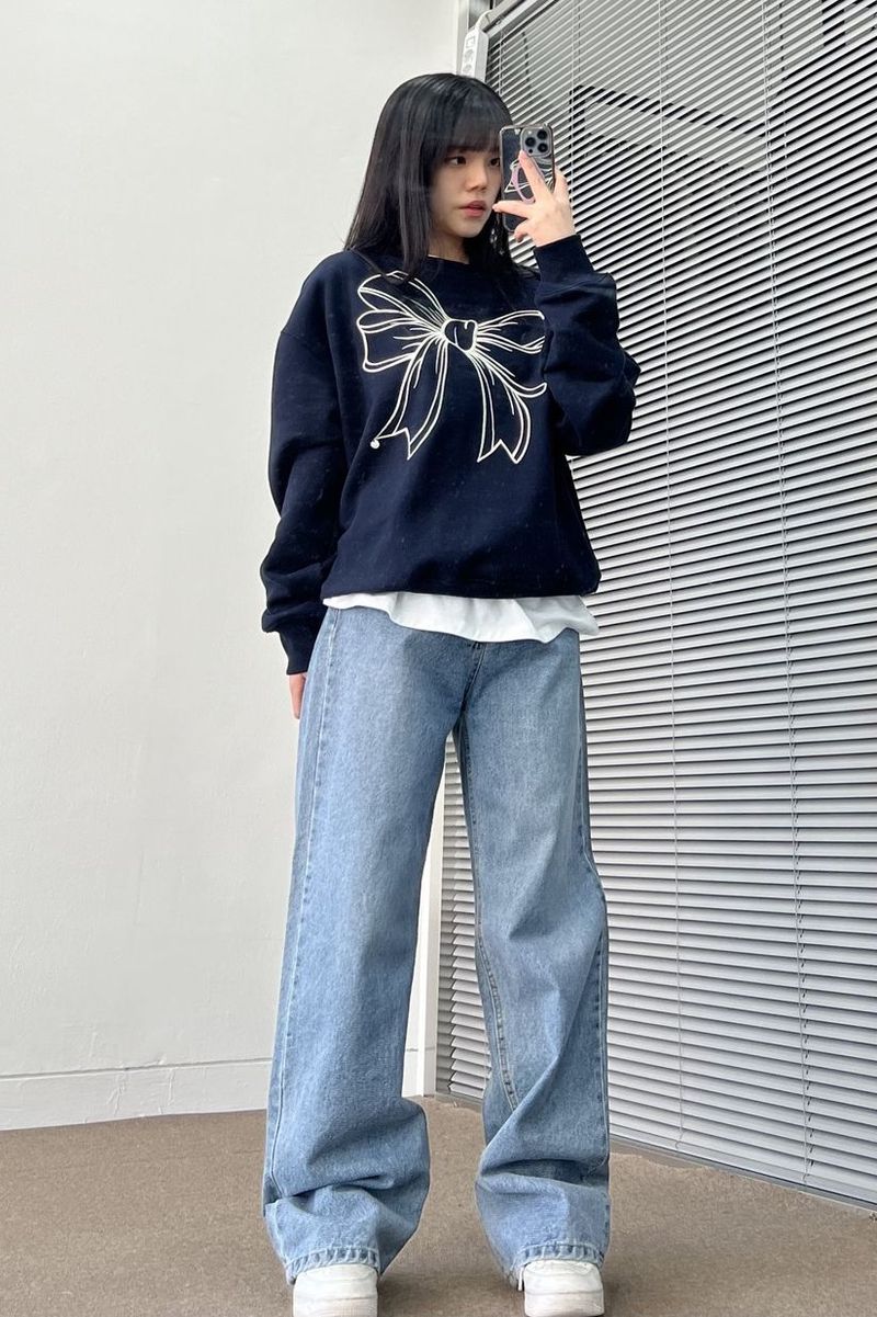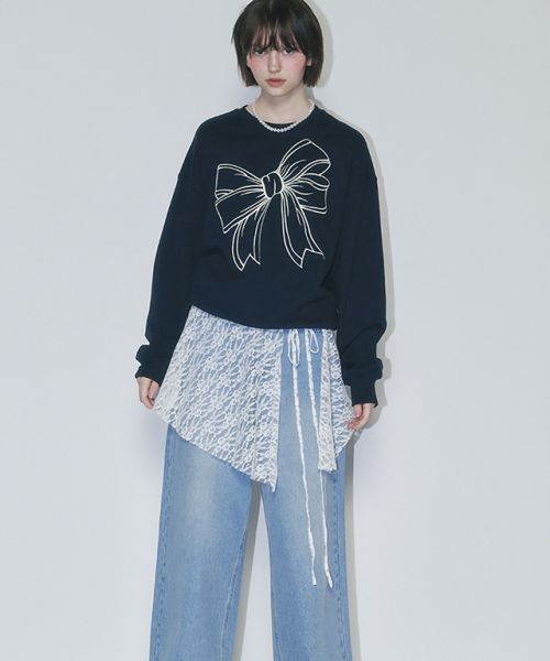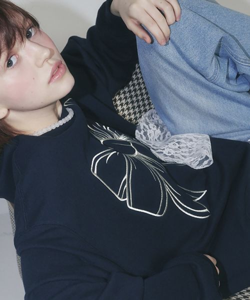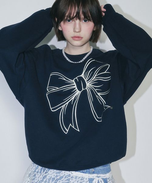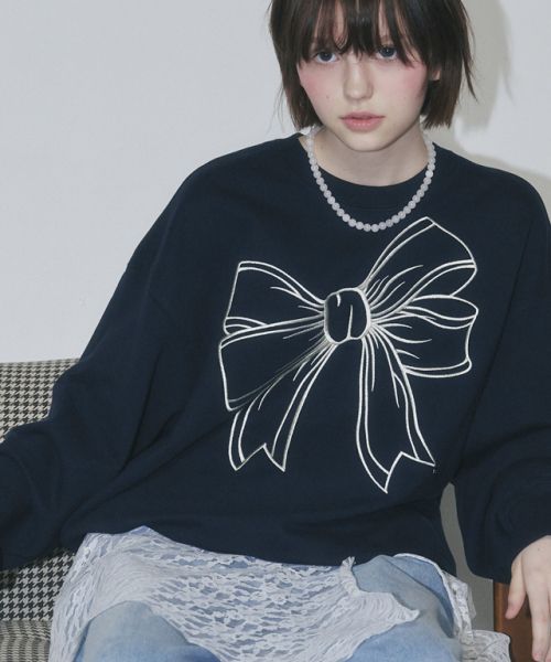 【限時優惠】韓國(RONRON) - BIG RIBBON LINE SWEATSHIRT NAVY
