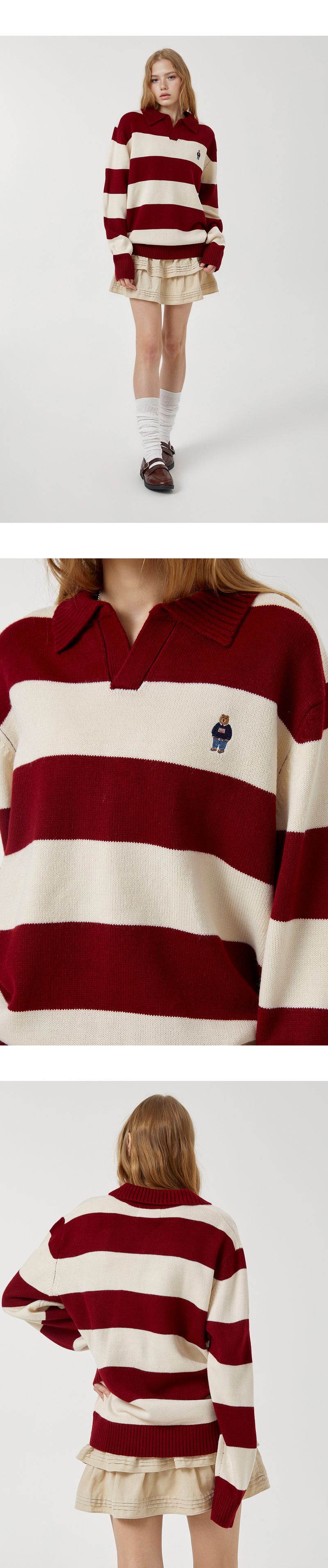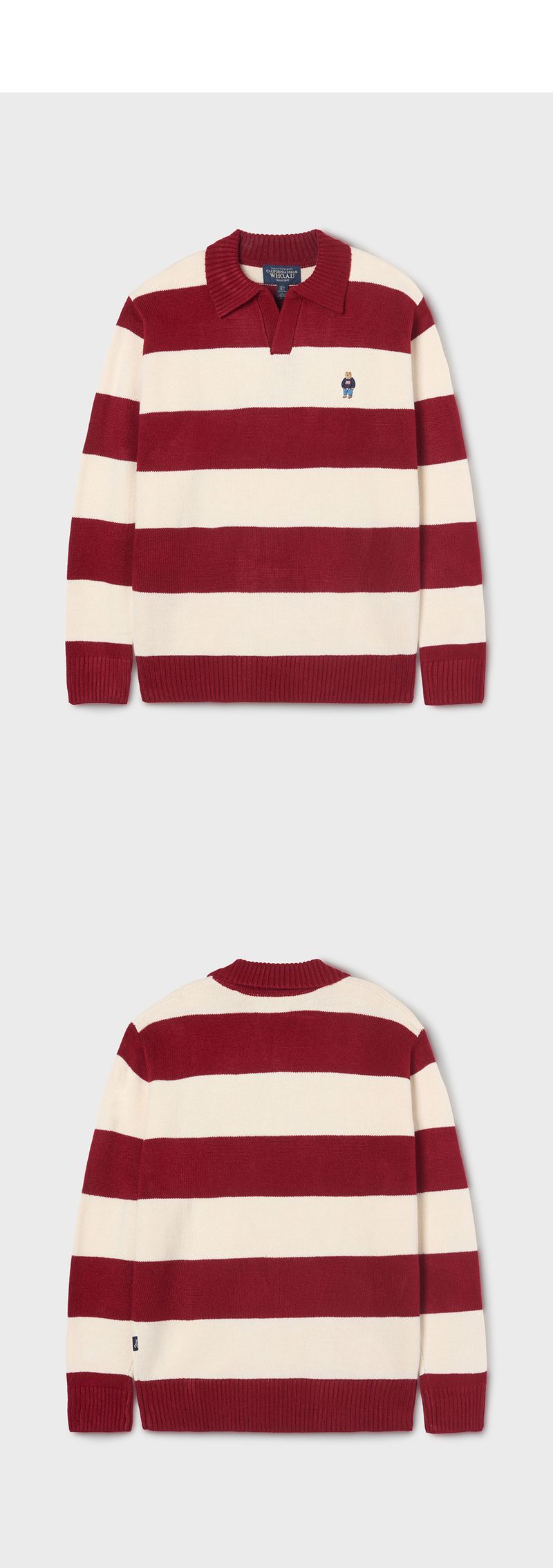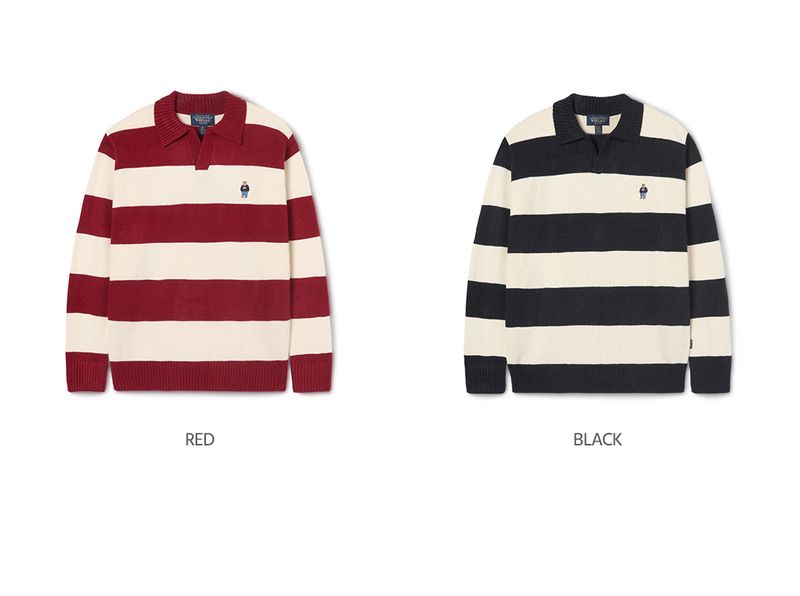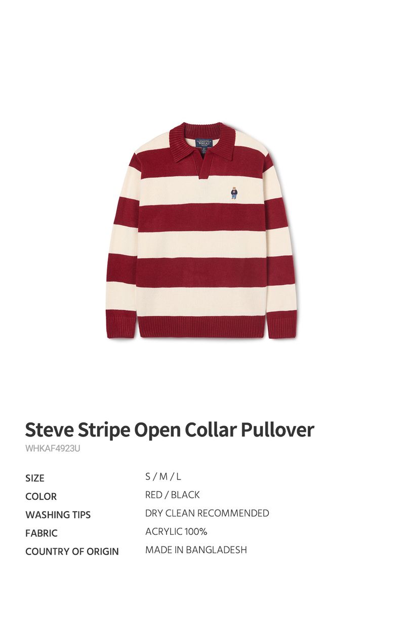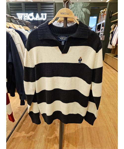 韓國直送 WHO.A.U - Steve Stripe Open Collar Pullover