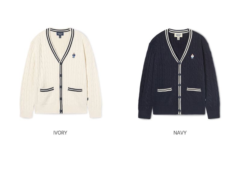 韓國直送 WHO.A.U - Steve V-neck Tilden Cable Cardigan
