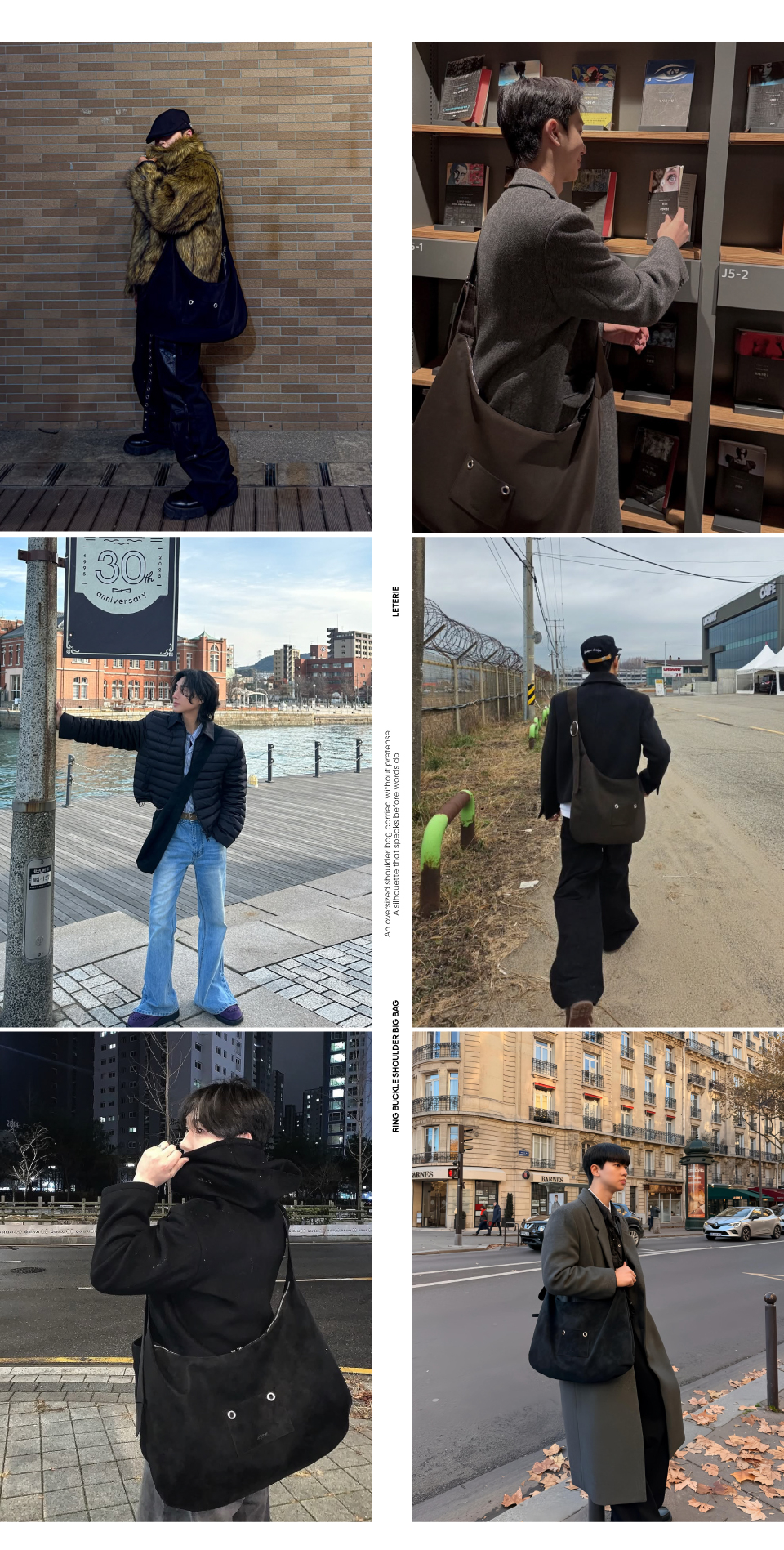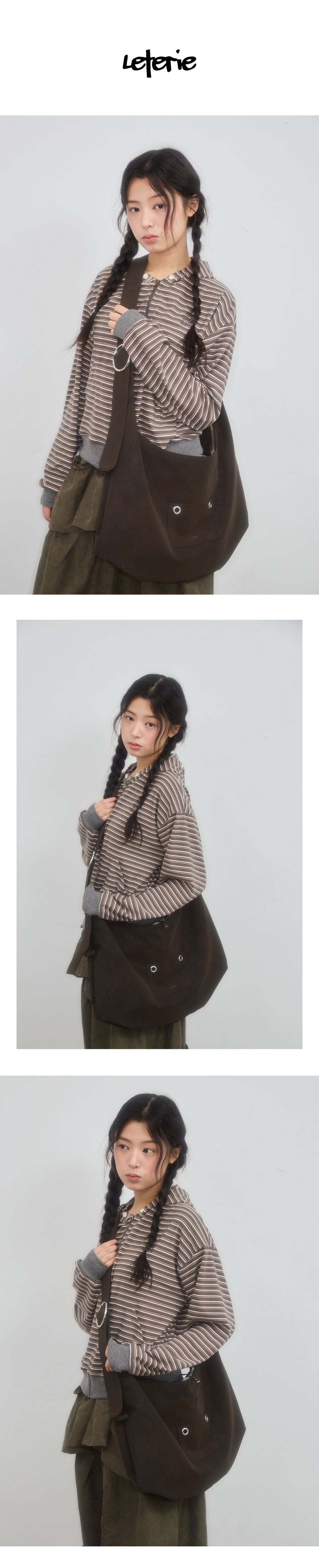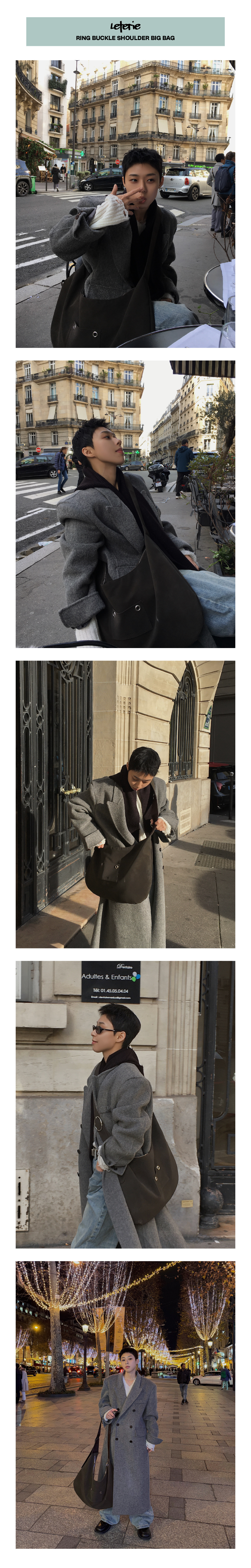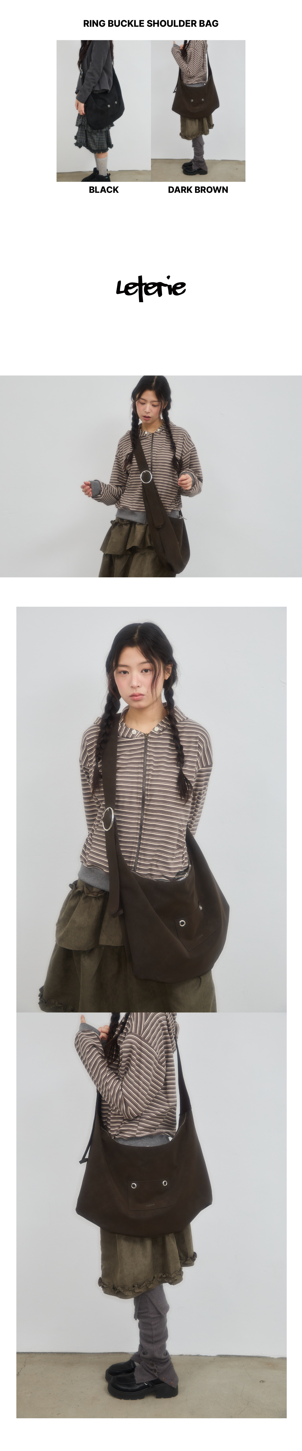 韓國 LETERIE - Ring Buckle Shoulder Big Bag Dark Brown