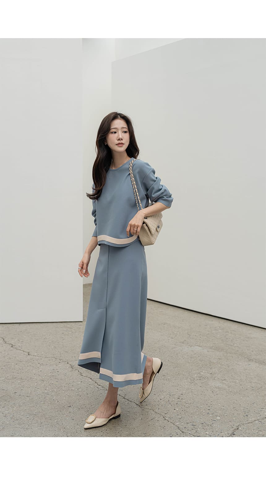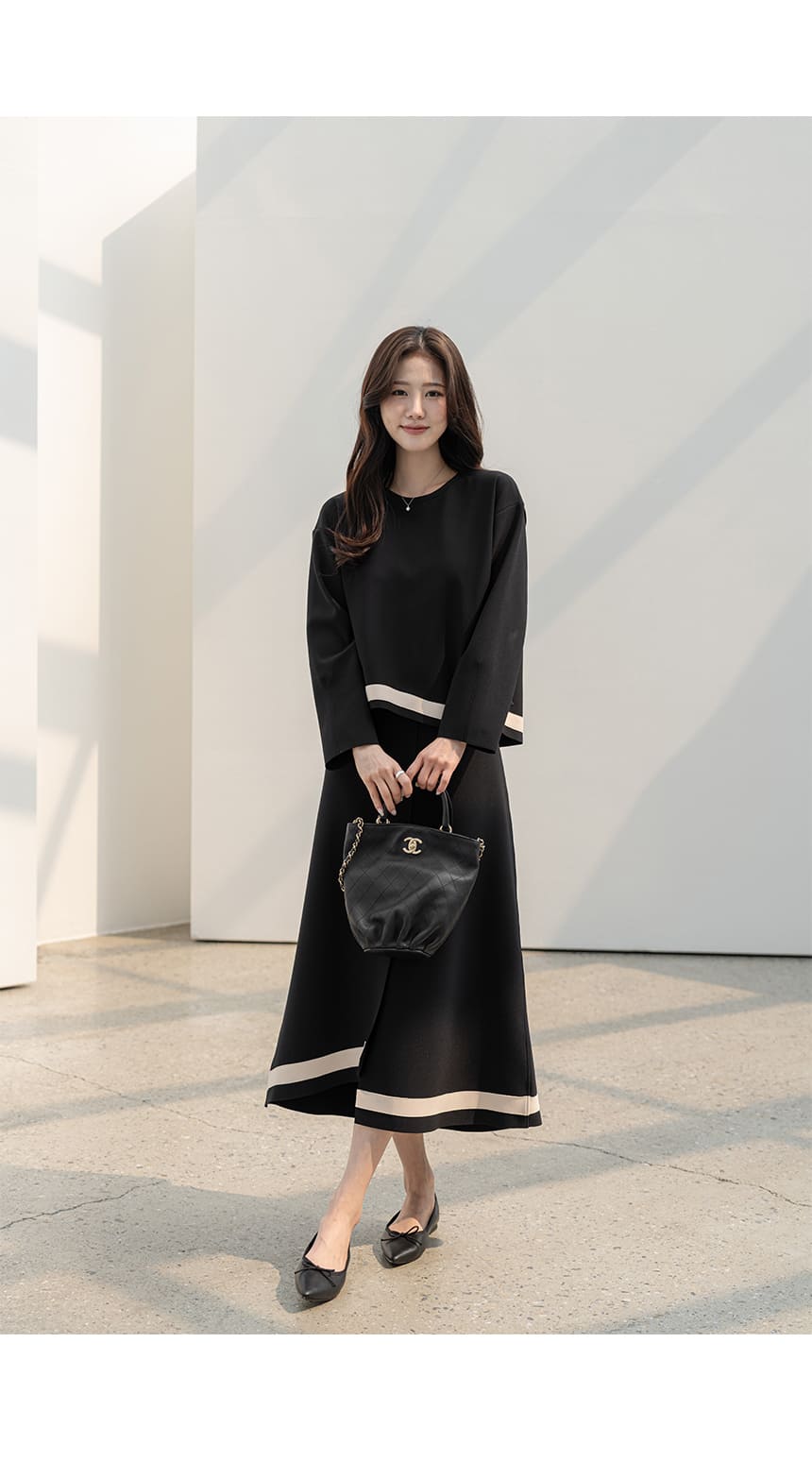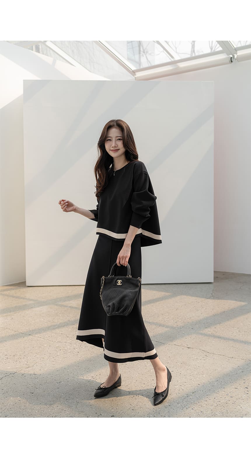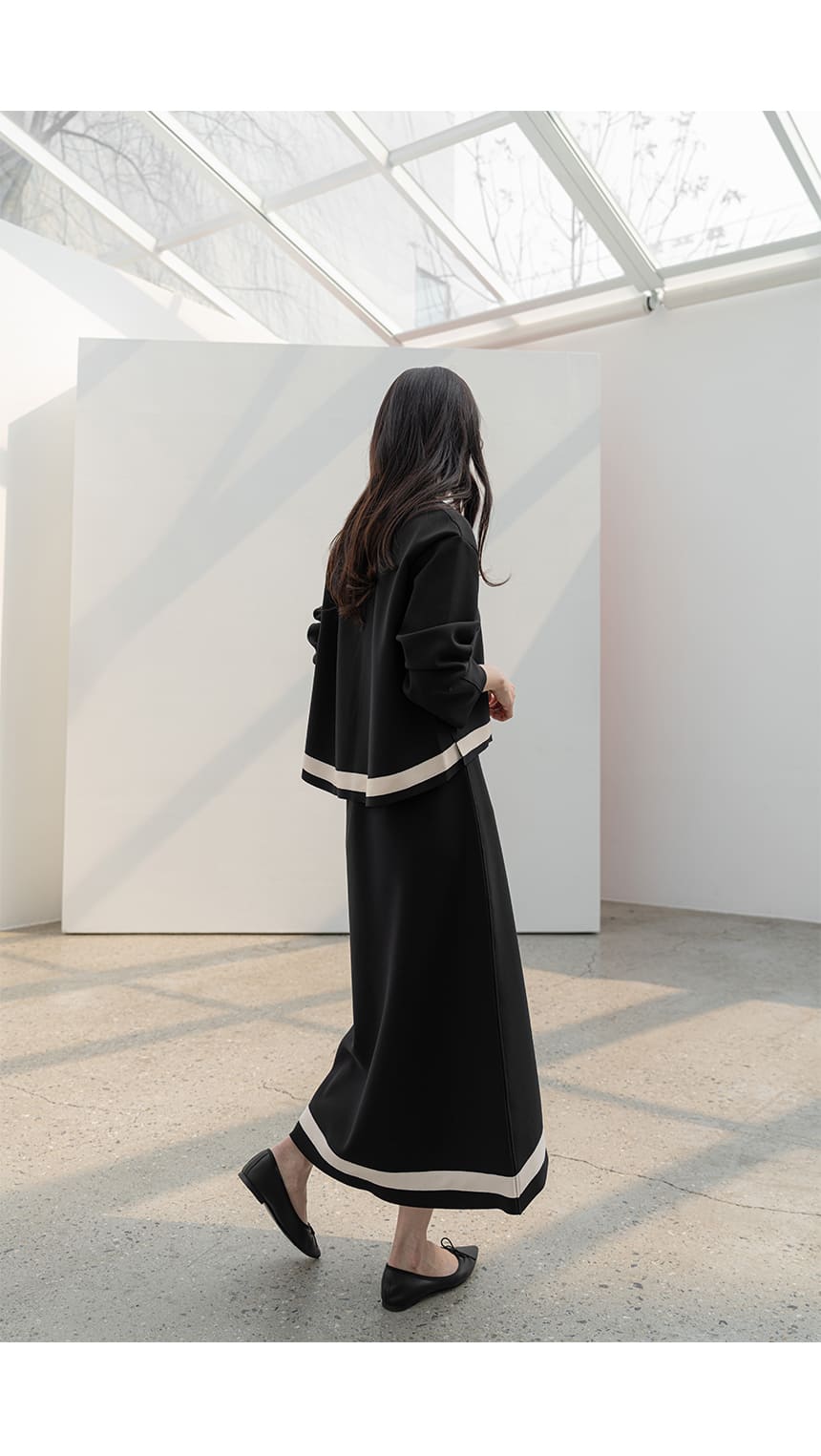 mazia - 에스텔 배색 A라인 분또 셋업♡韓國女裝套裝