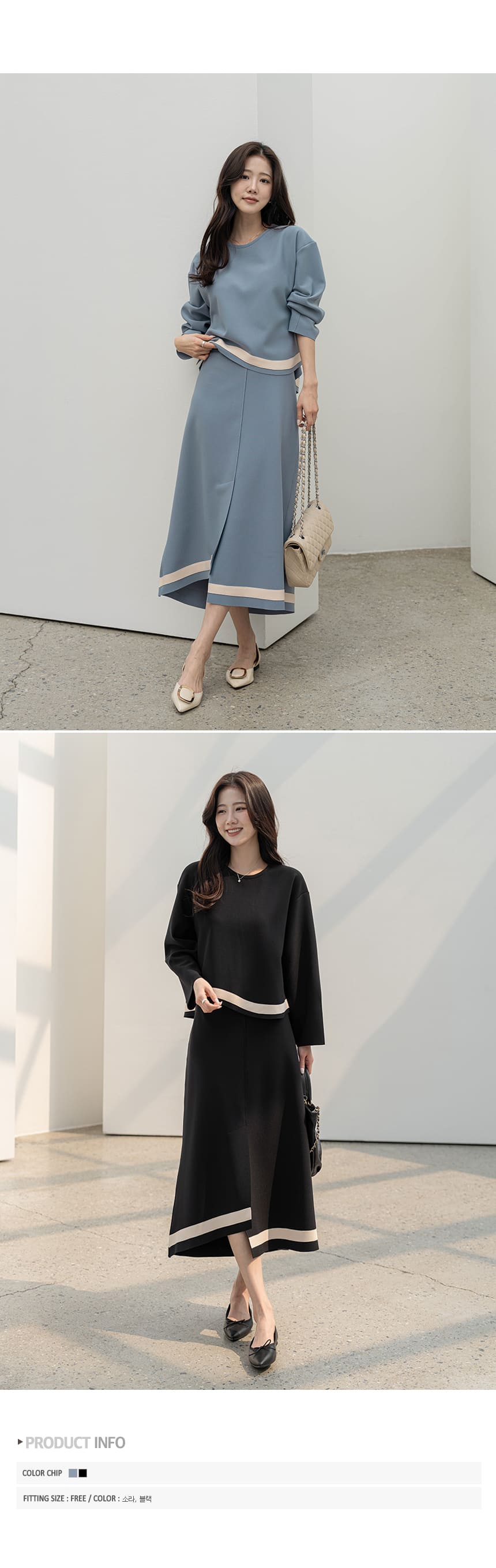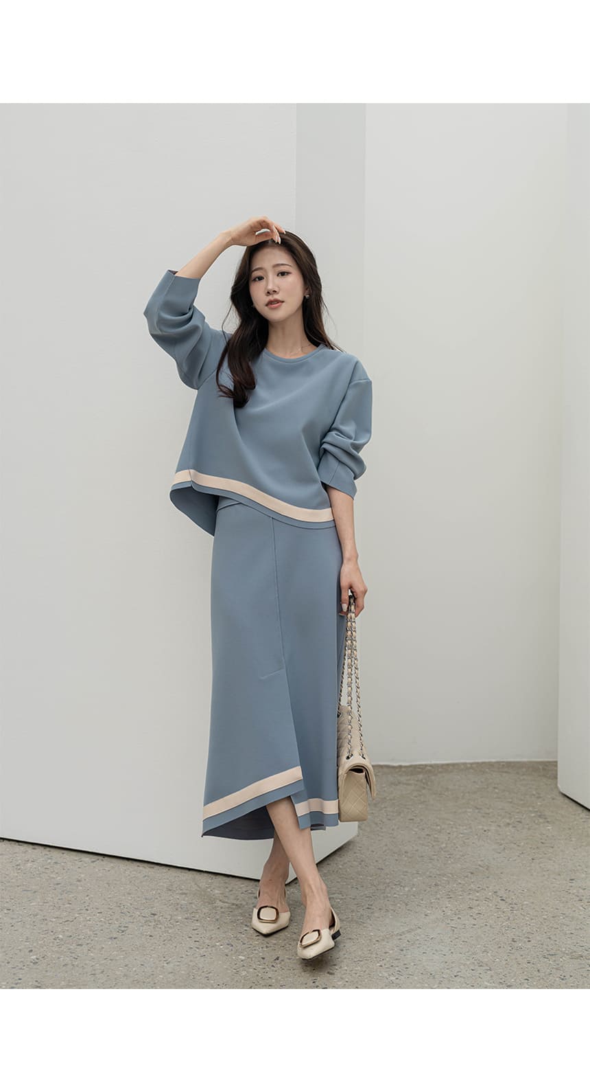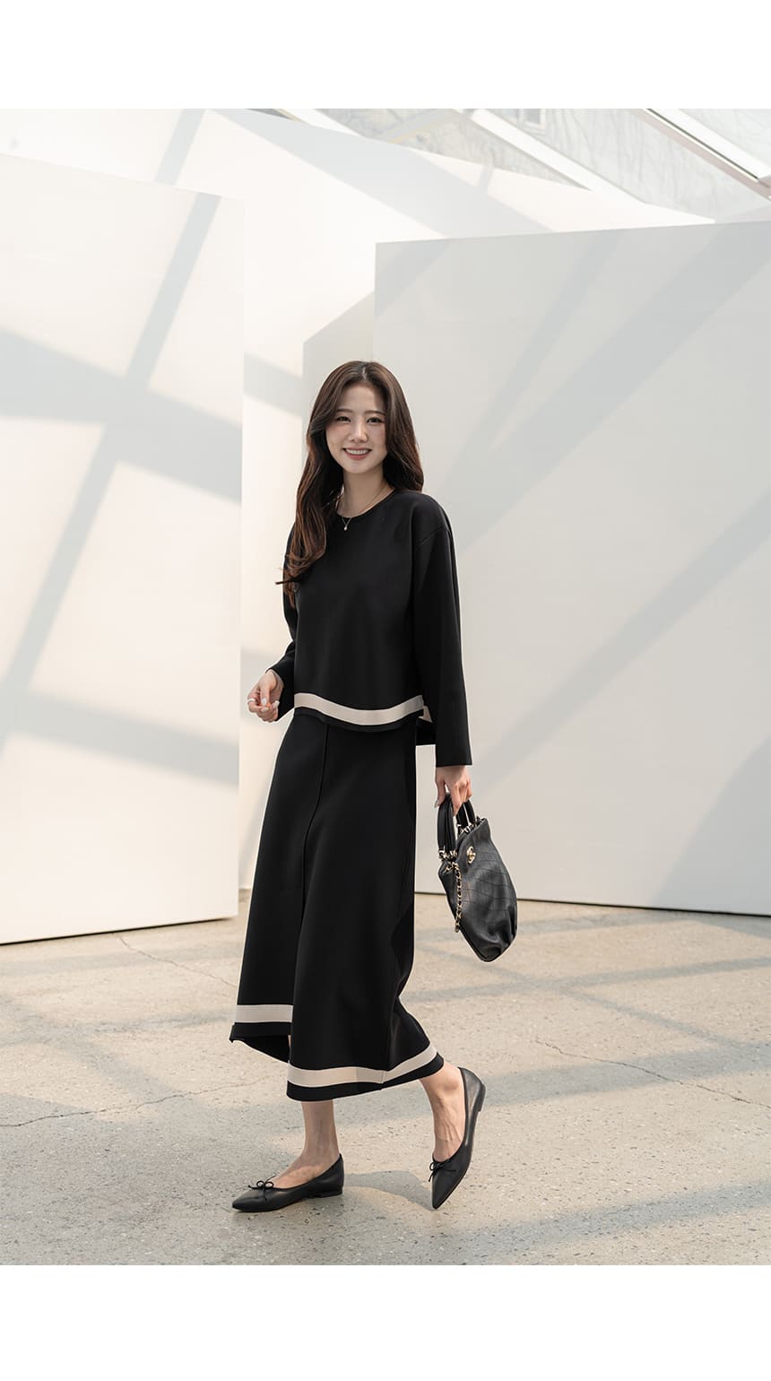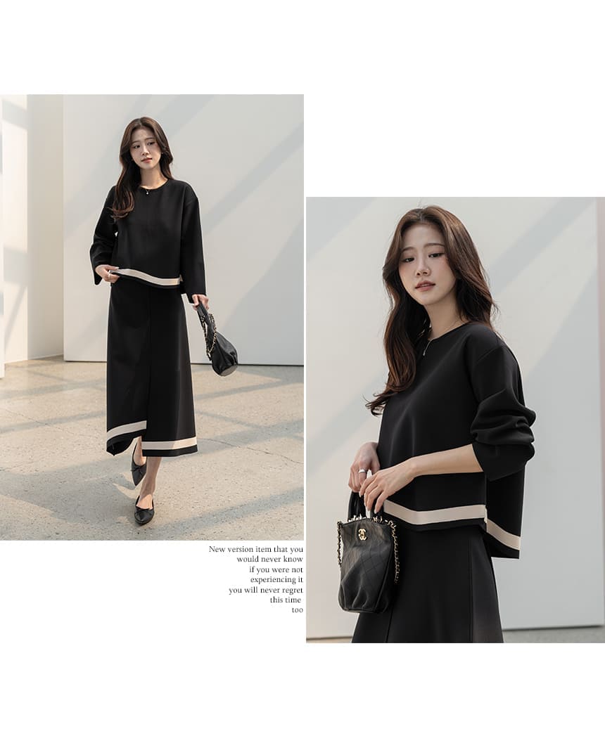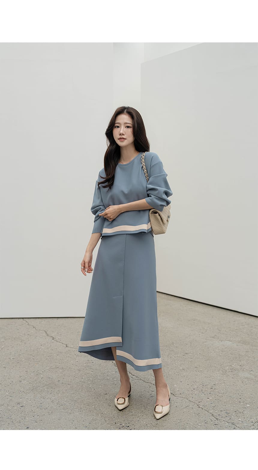 mazia - 에스텔 배색 A라인 분또 셋업♡韓國女裝套裝