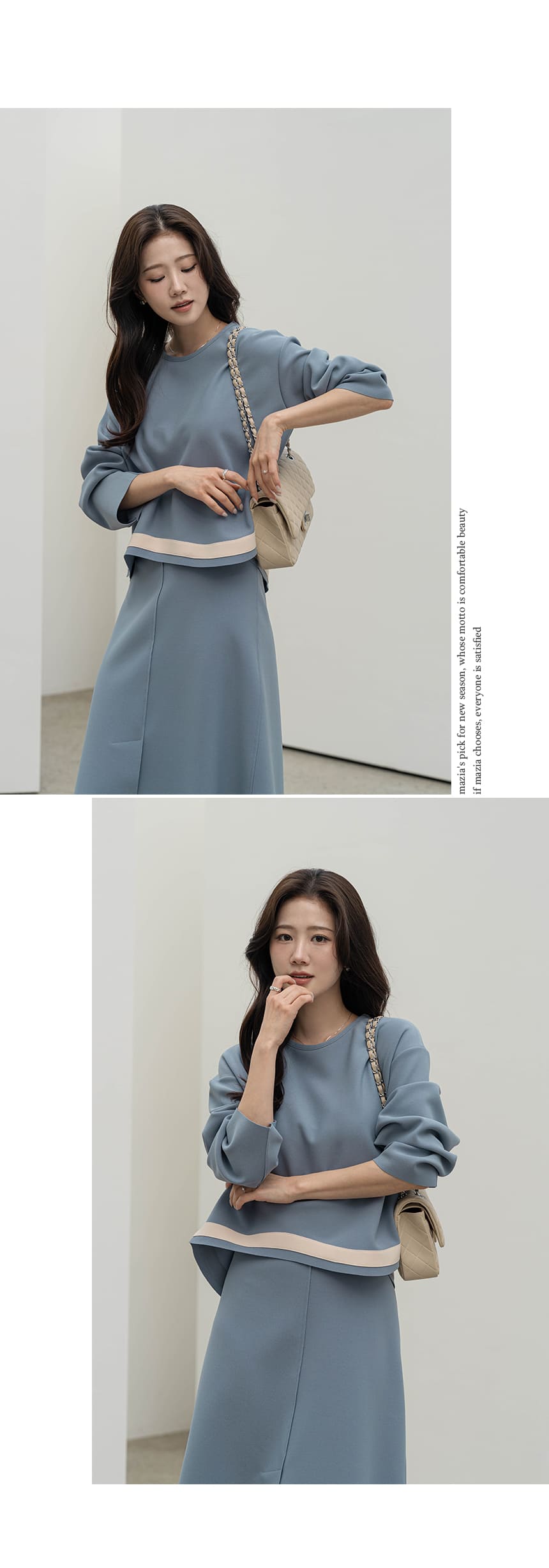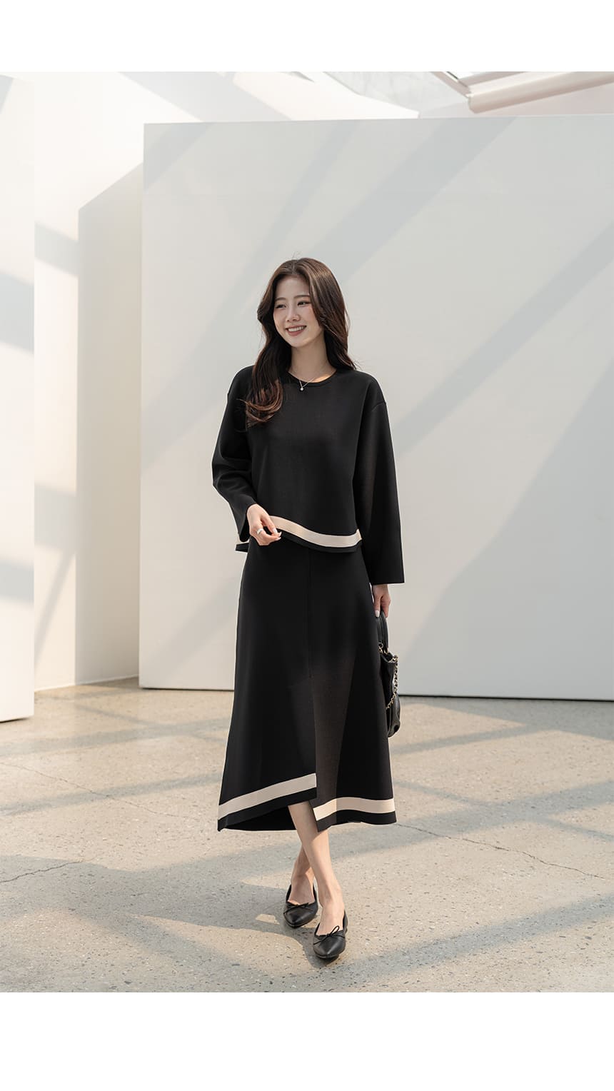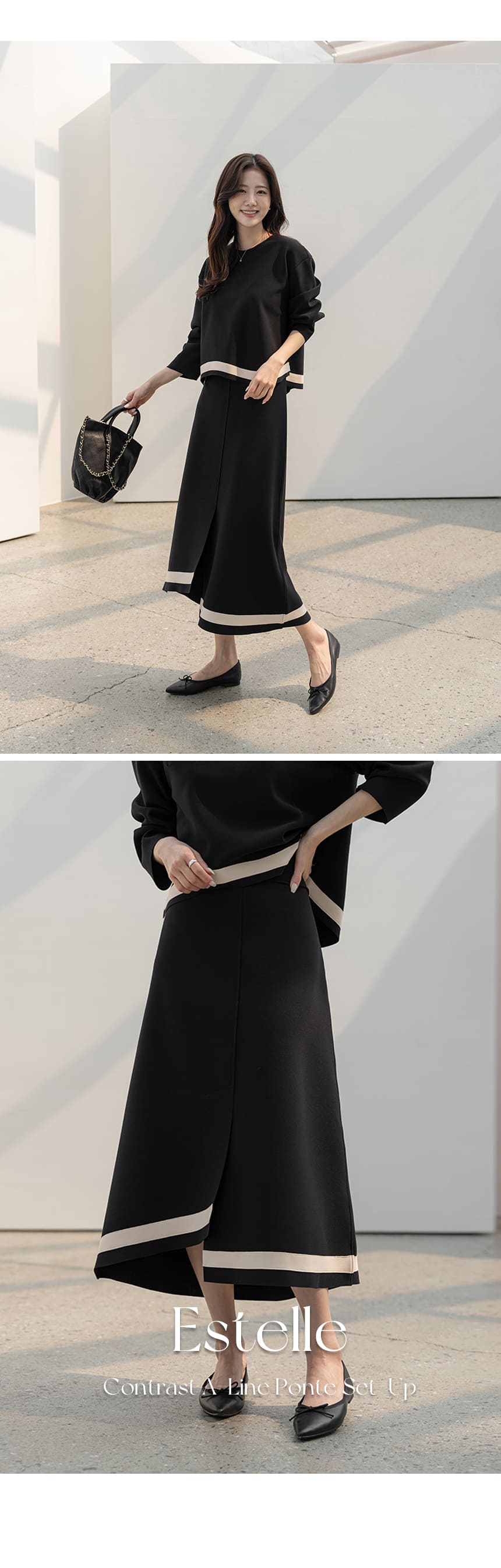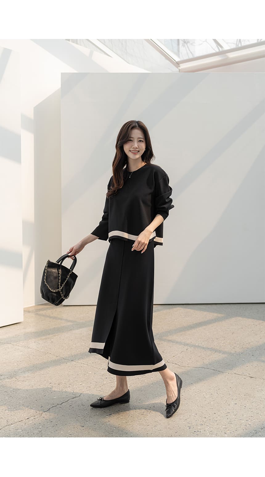 mazia - 에스텔 배색 A라인 분또 셋업♡韓國女裝套裝