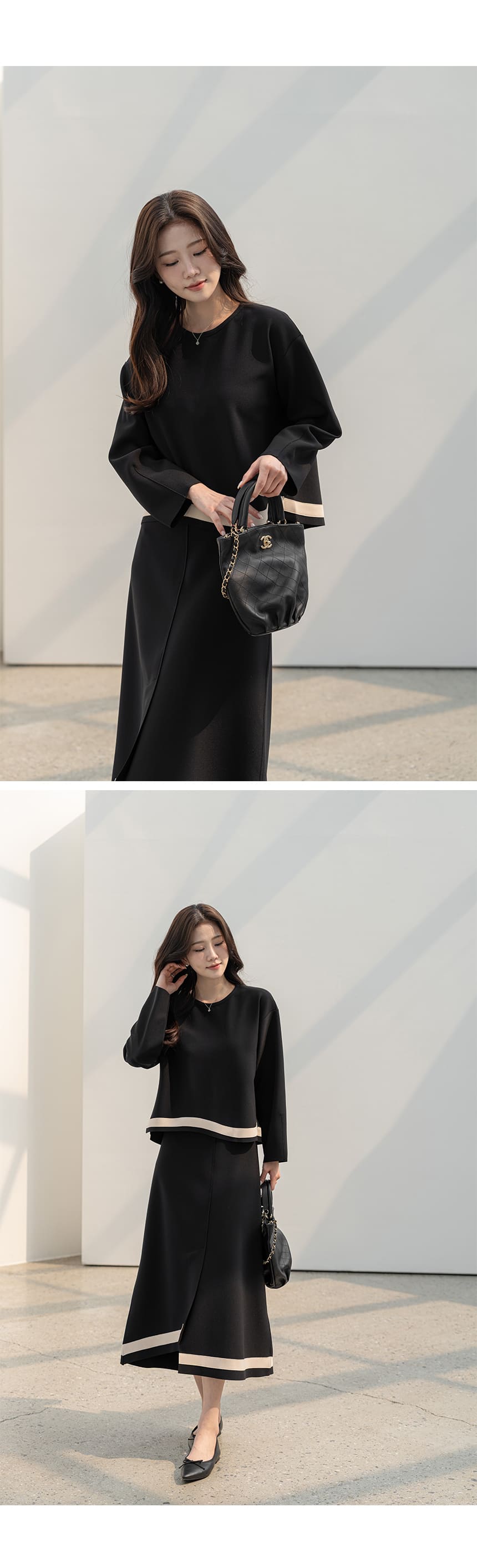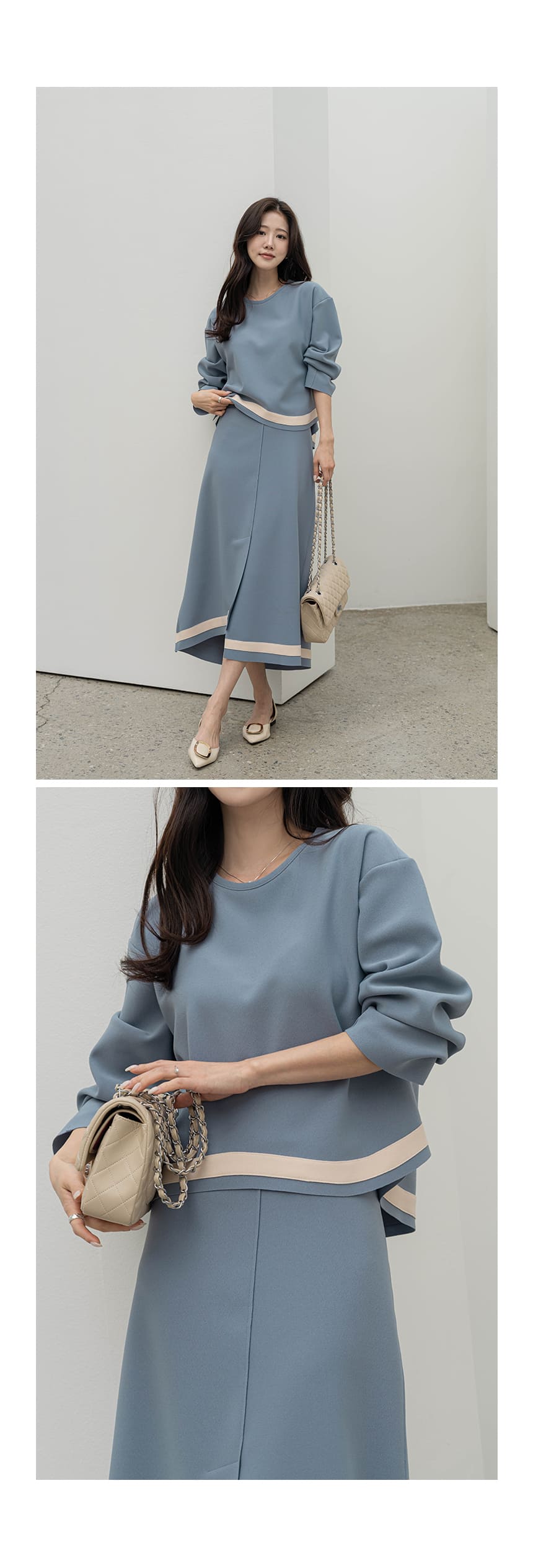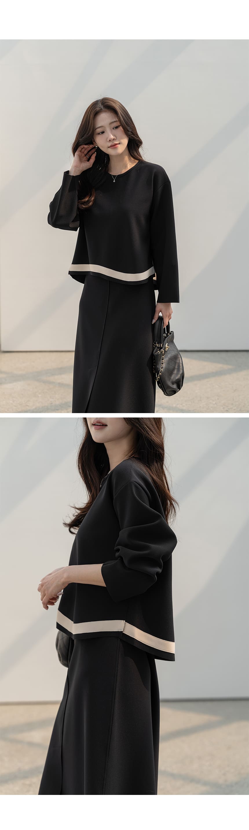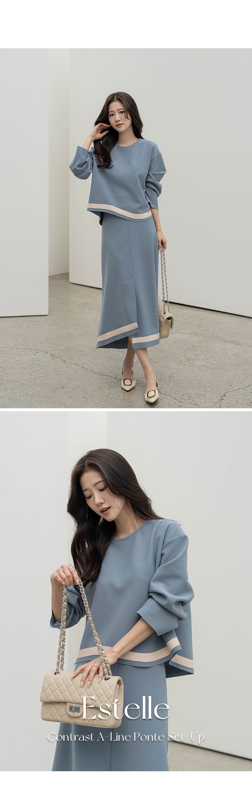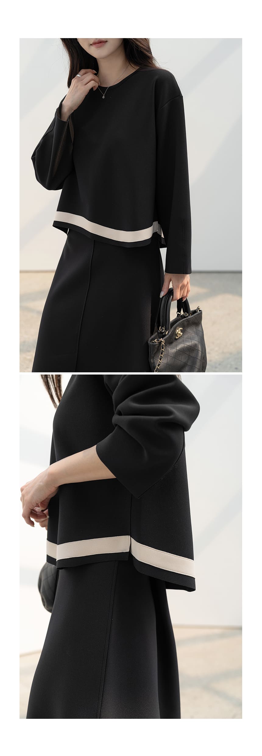 mazia - 에스텔 배색 A라인 분또 셋업♡韓國女裝套裝