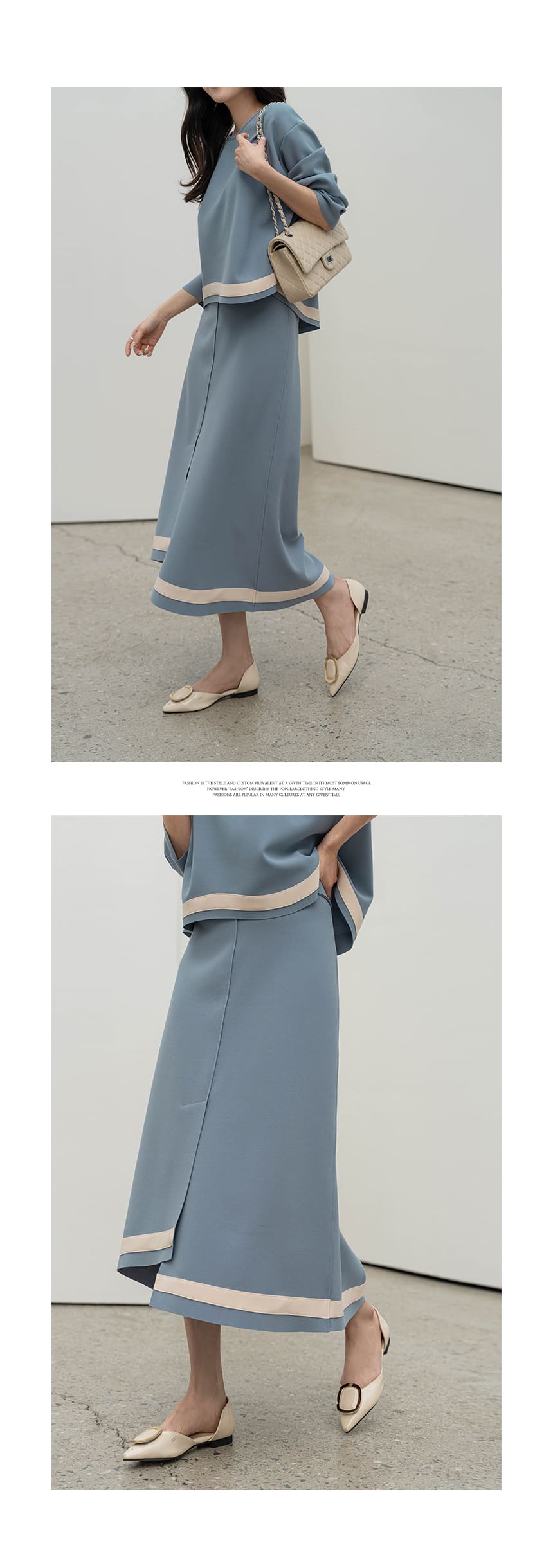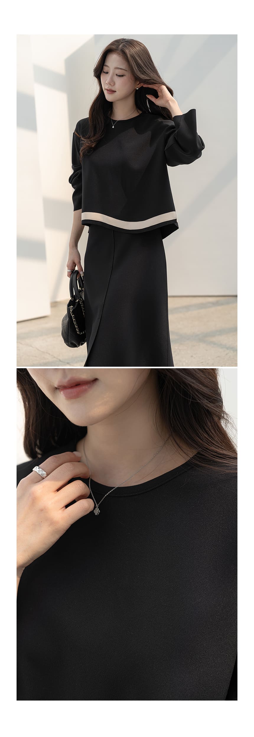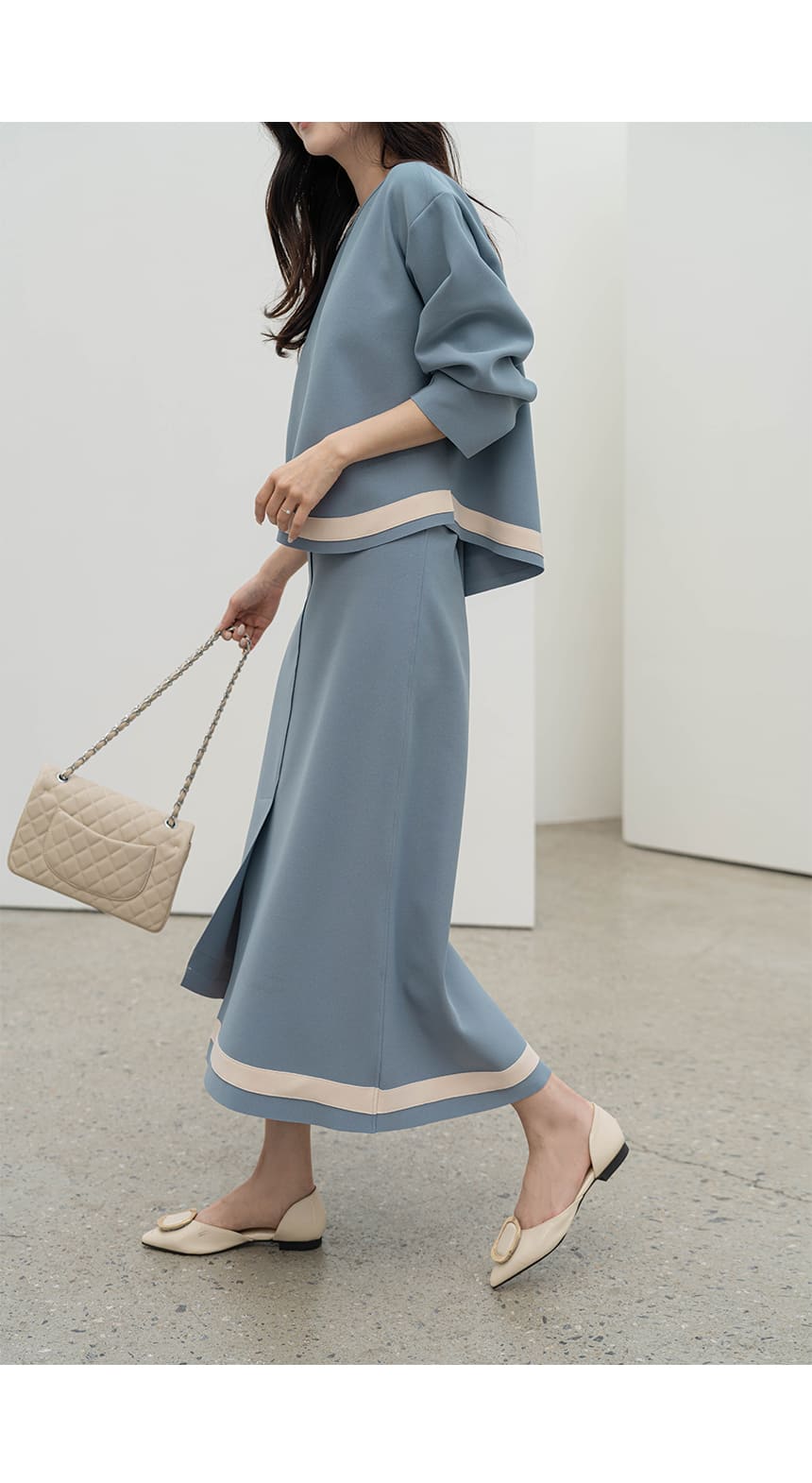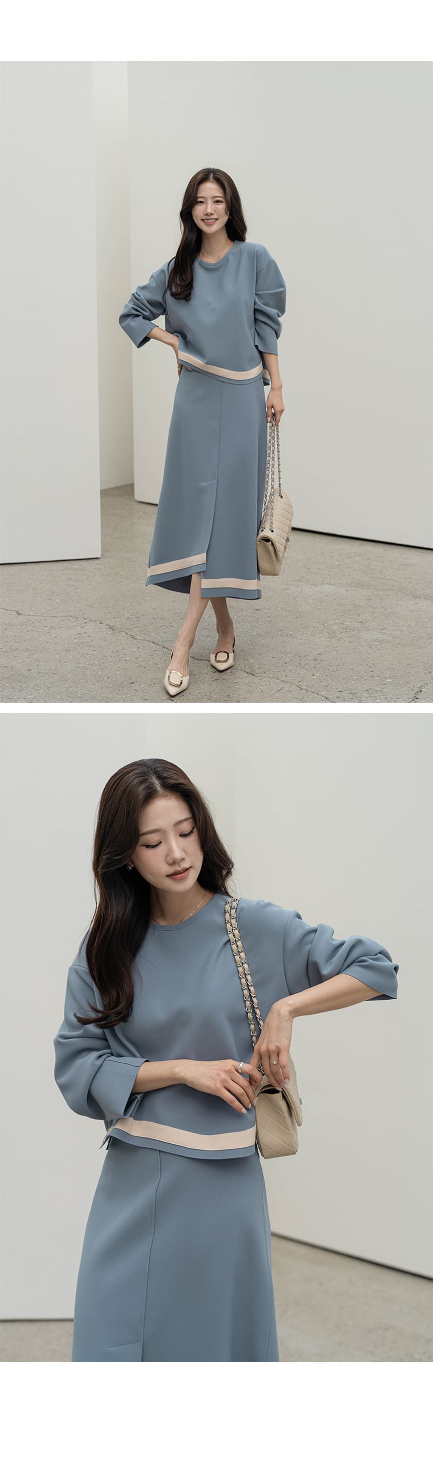 mazia - 에스텔 배색 A라인 분또 셋업♡韓國女裝套裝