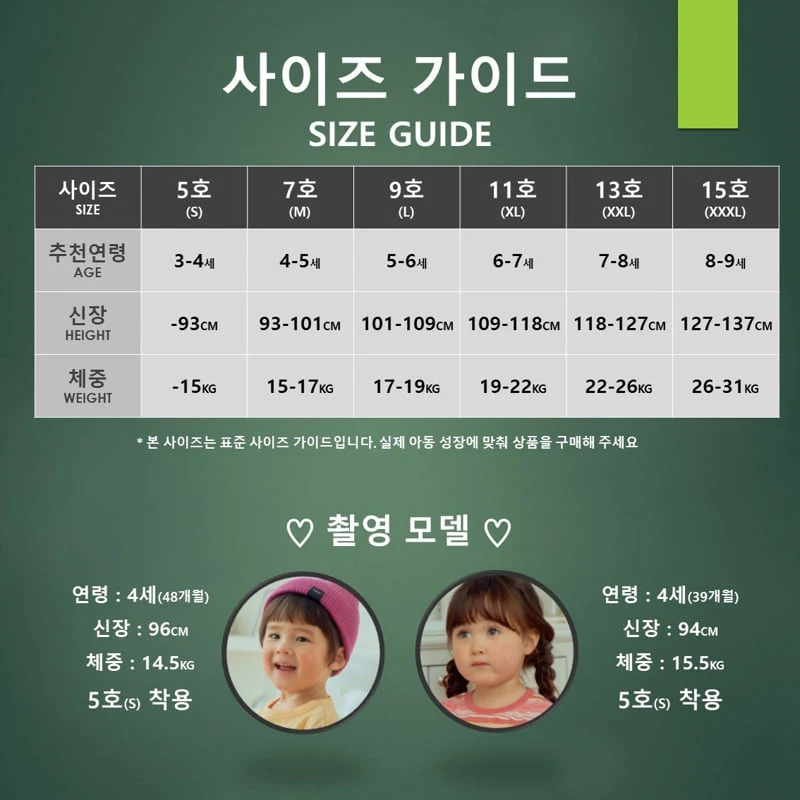 尺碼及韓文參考