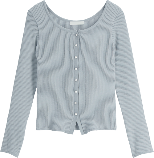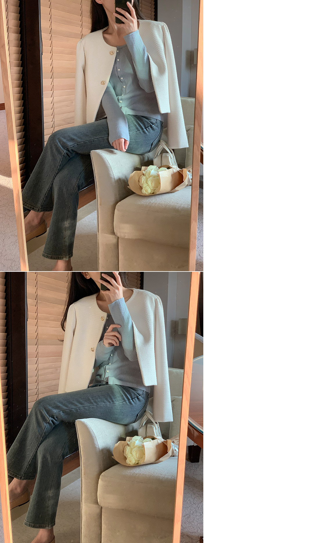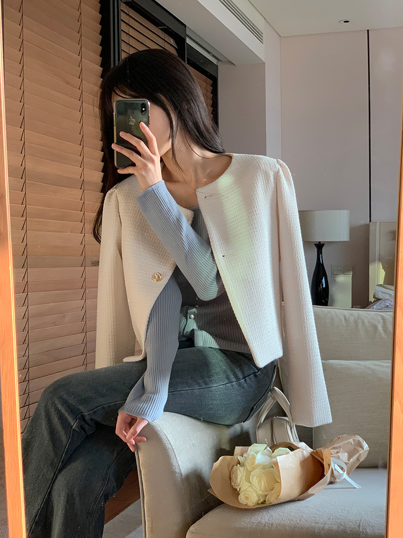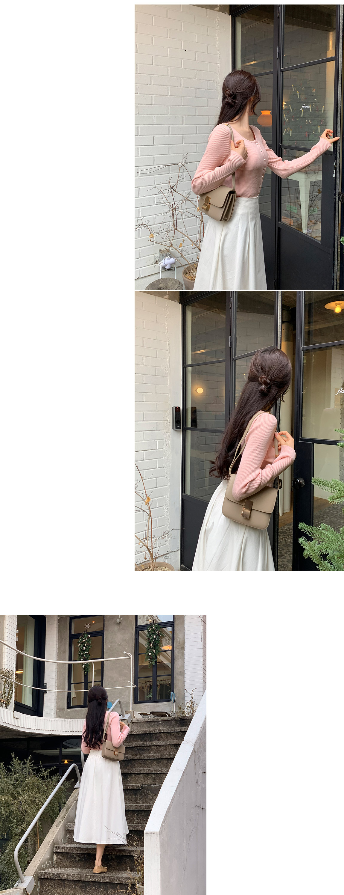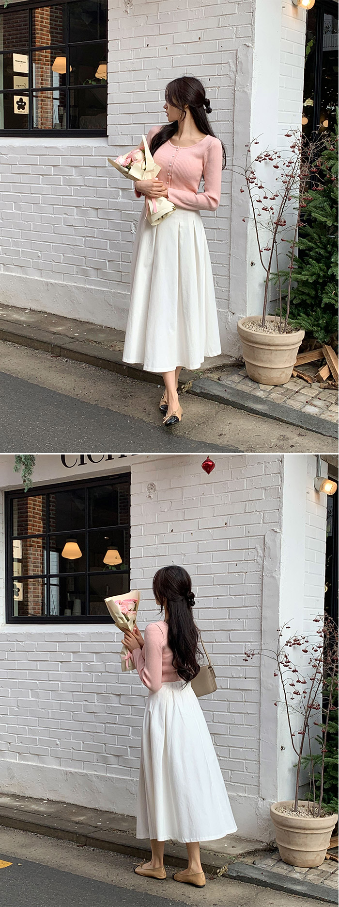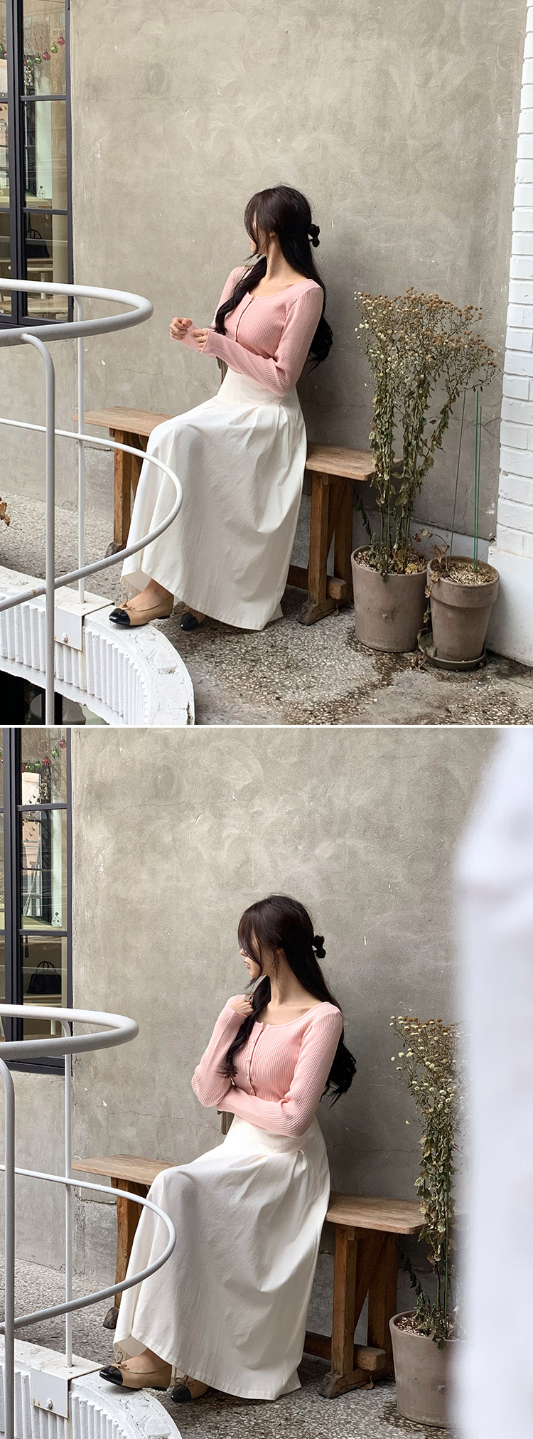 attrangs-아뜨랑스 - (페미닌/청순여리) 포엘즈 진주 버튼 유넥 슬림핏 골지 가디건♡韓國女裝上衣