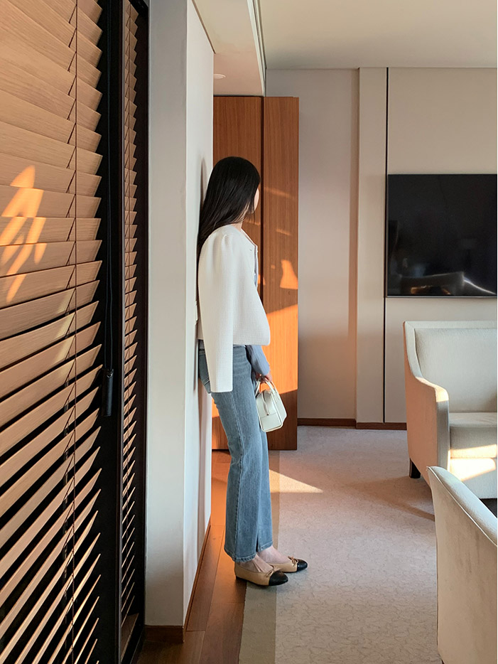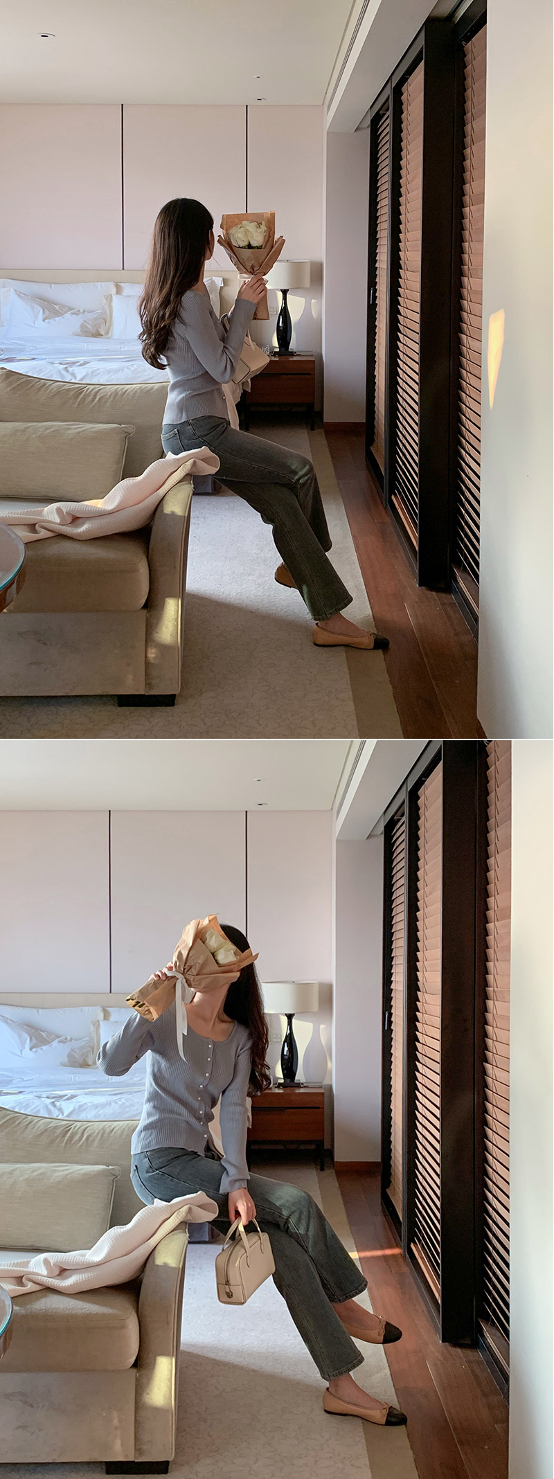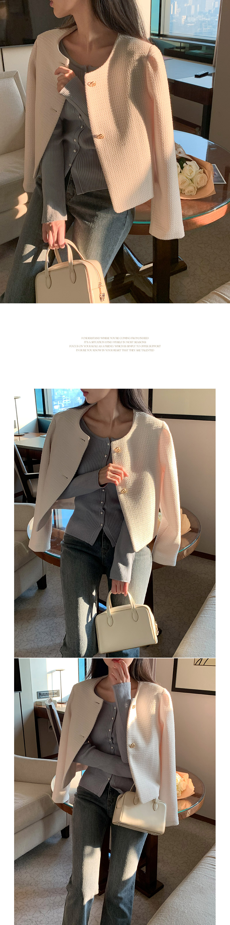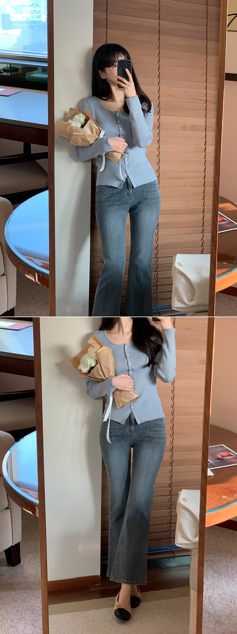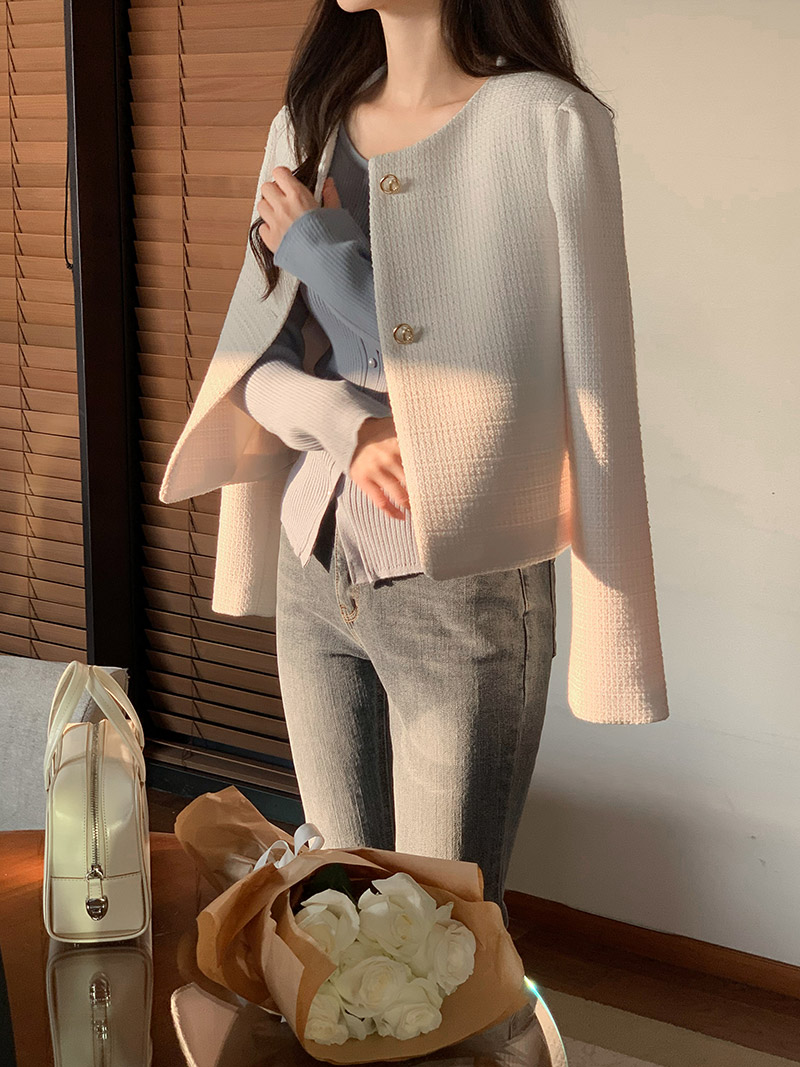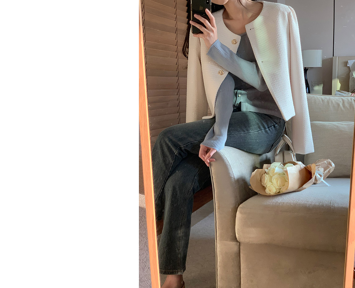 attrangs-아뜨랑스 - (페미닌/청순여리) 포엘즈 진주 버튼 유넥 슬림핏 골지 가디건♡韓國女裝上衣