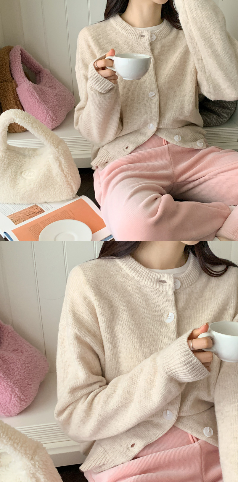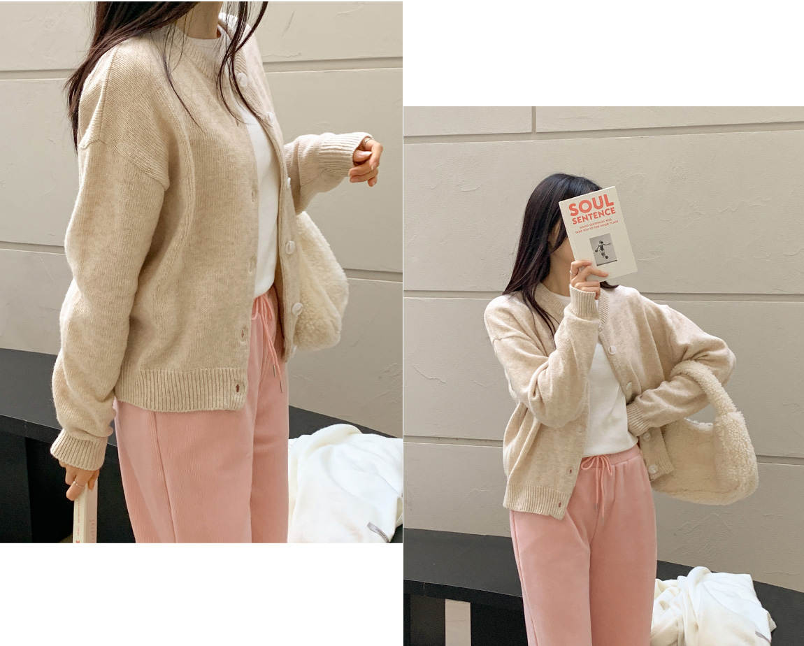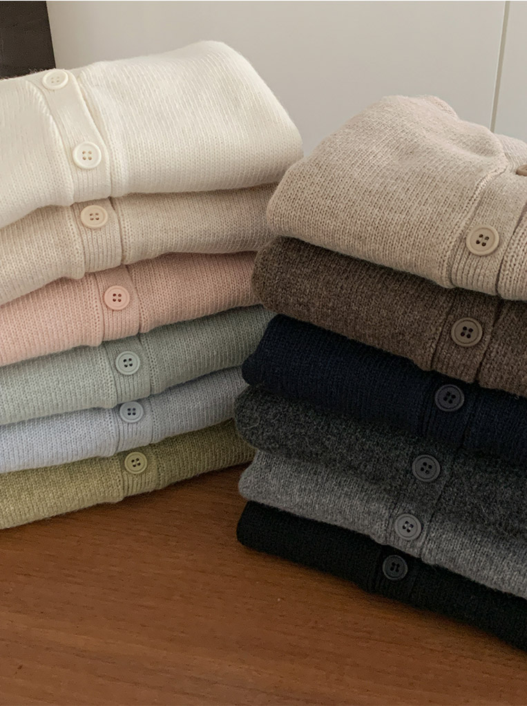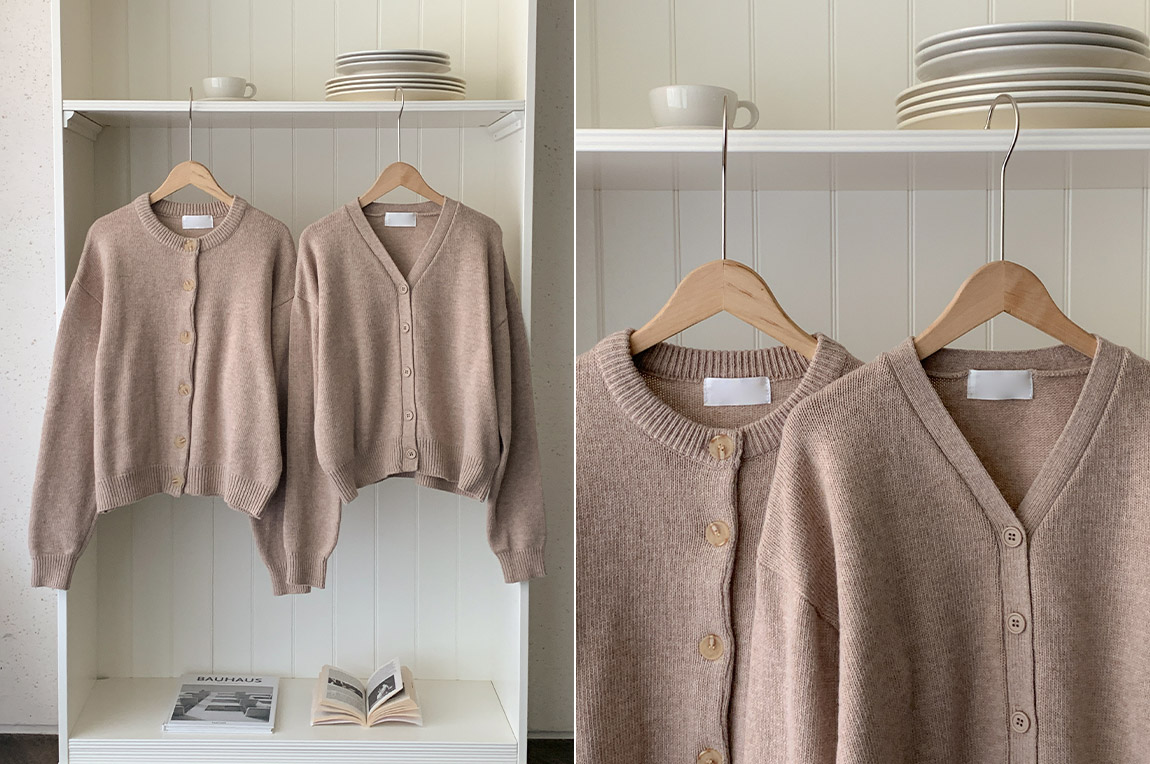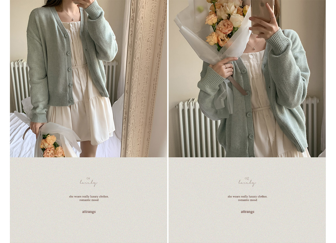 attrangs-아뜨랑스 - [울함유] 루체른 알파카 울 라운드넥 브이넥 니트 겨울 가디건♡韓國女裝外套