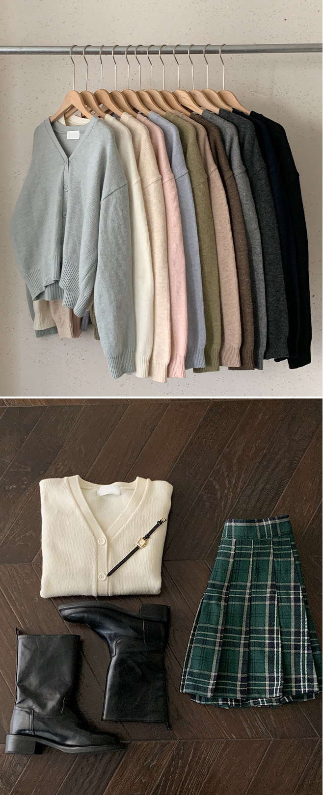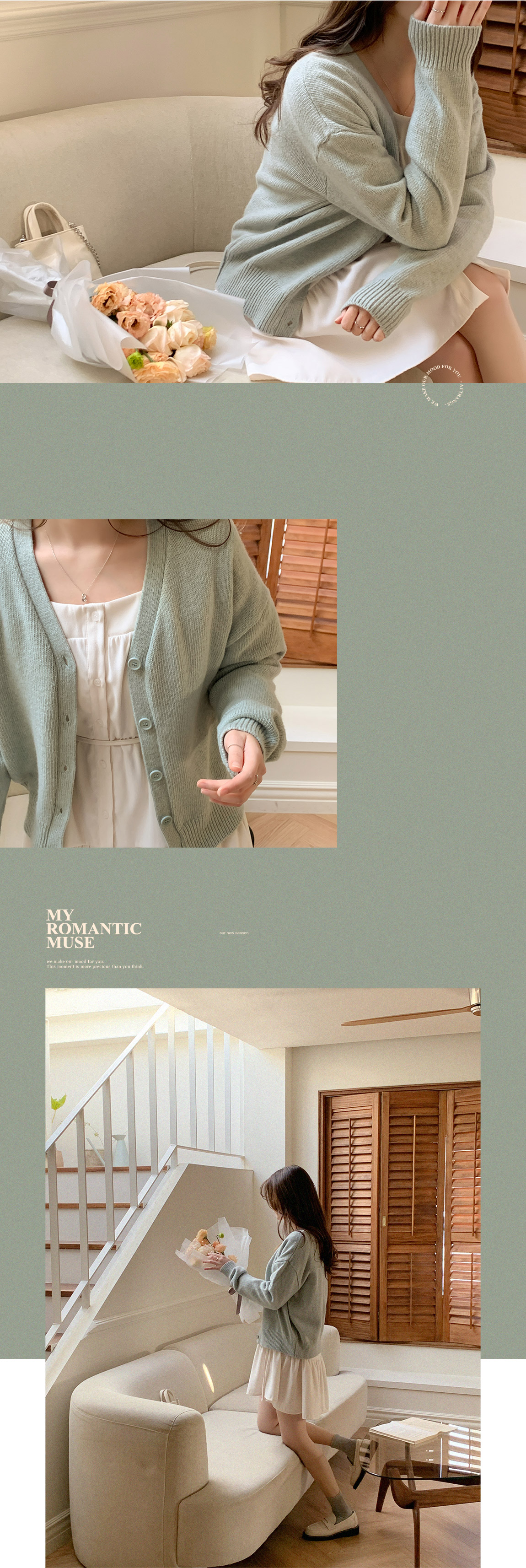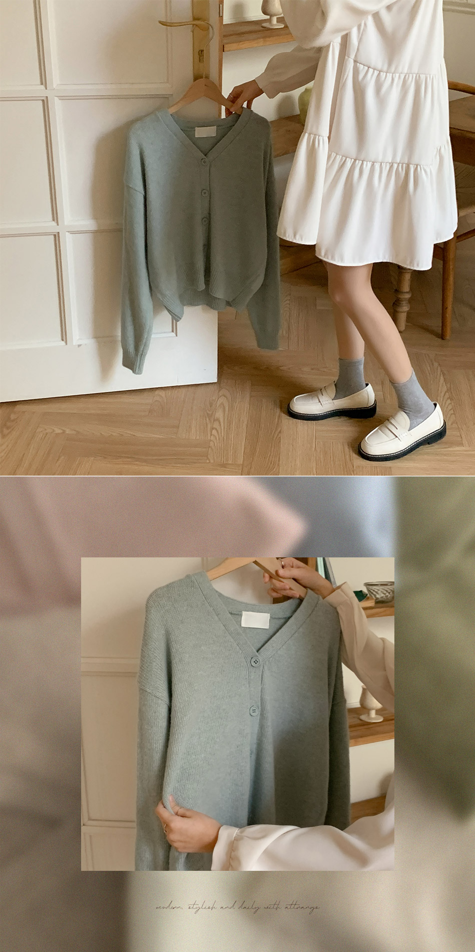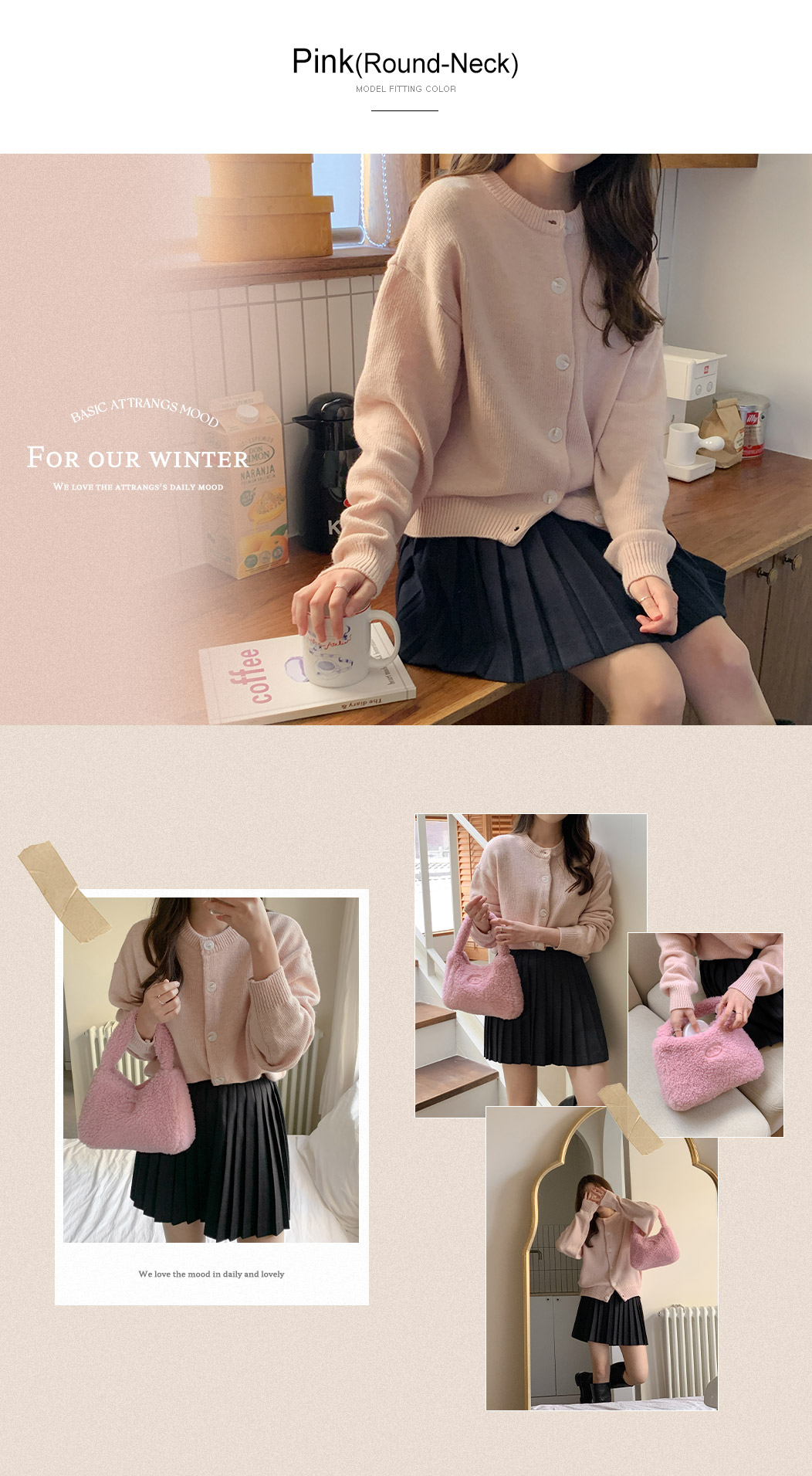 attrangs-아뜨랑스 - [울함유] 루체른 알파카 울 라운드넥 브이넥 니트 겨울 가디건♡韓國女裝外套