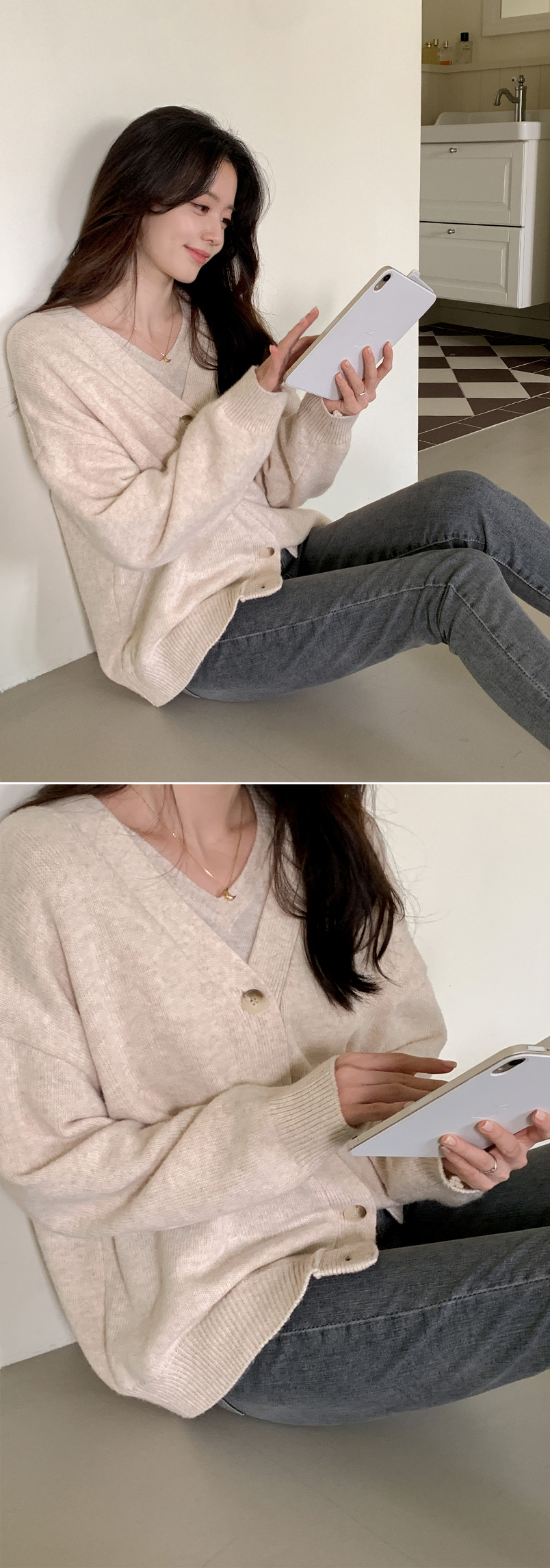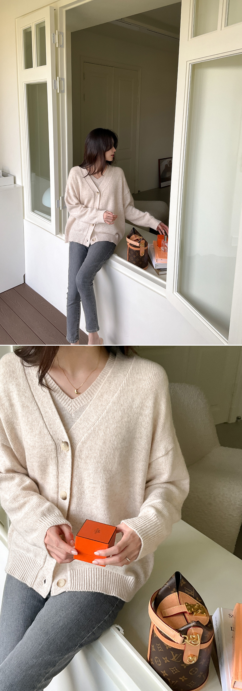 attrangs-아뜨랑스 - [울함유] 베르 캐시울 루즈핏 V넥 니트 가디건♡韓國女裝外套