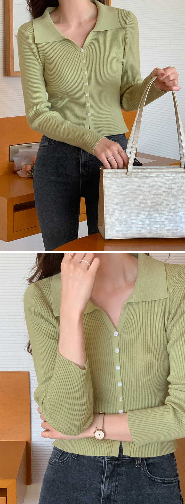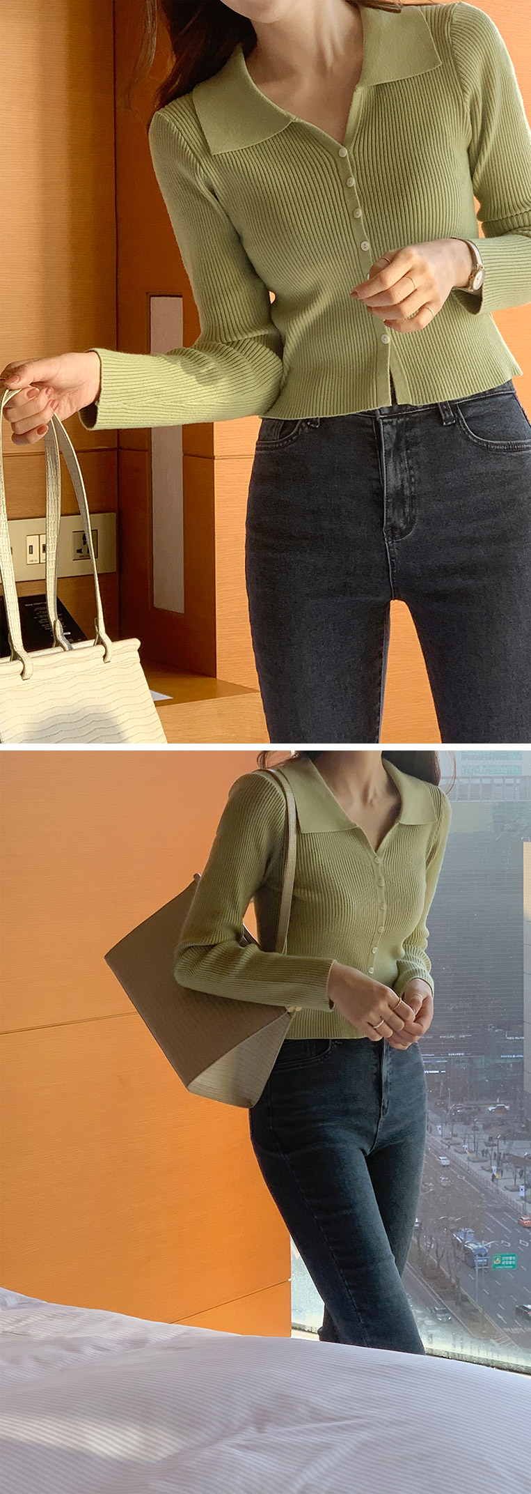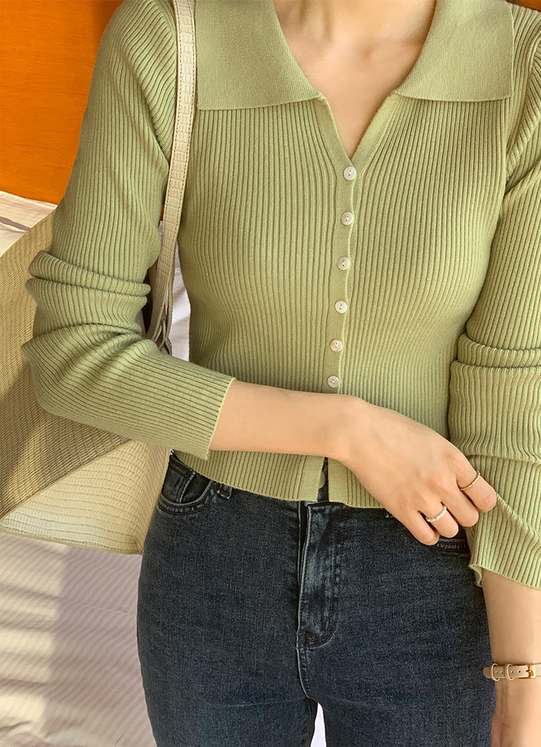 attrangs-아뜨랑스 - 모네 골지 크롭 카라 가디건♡韓國女裝外套