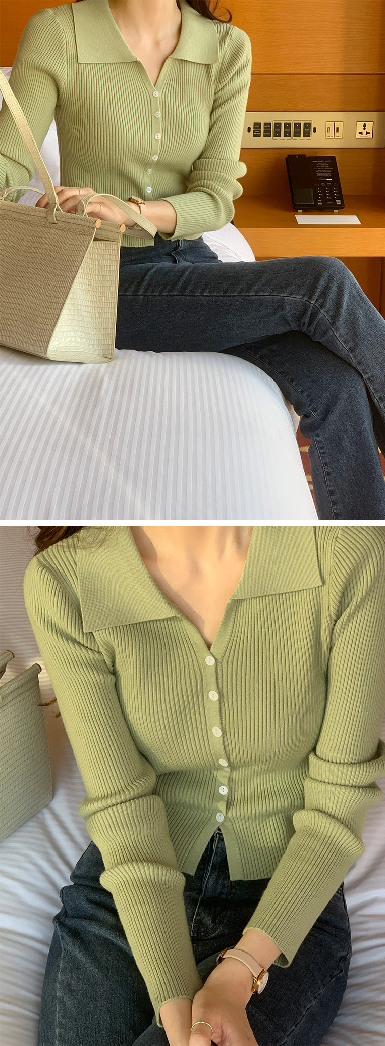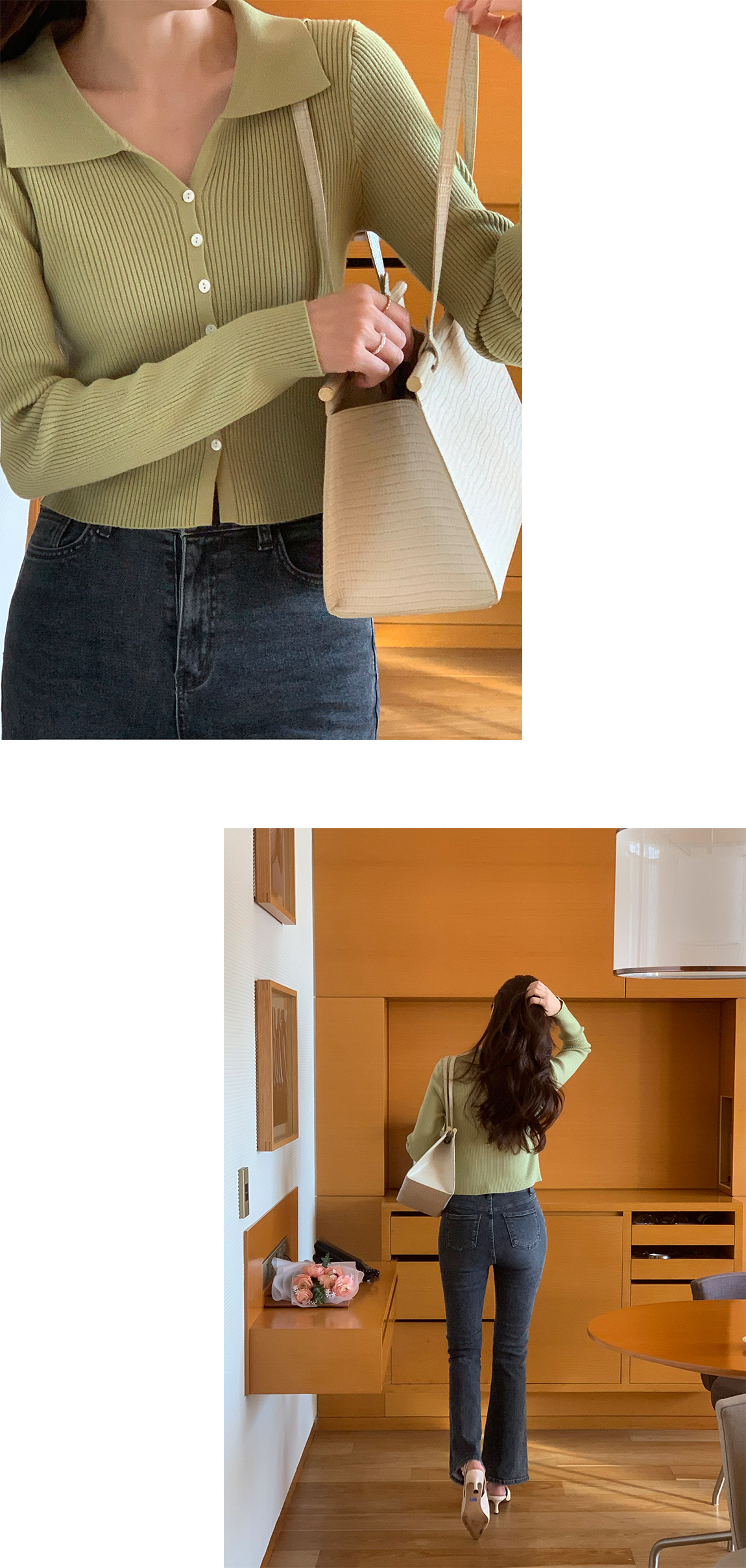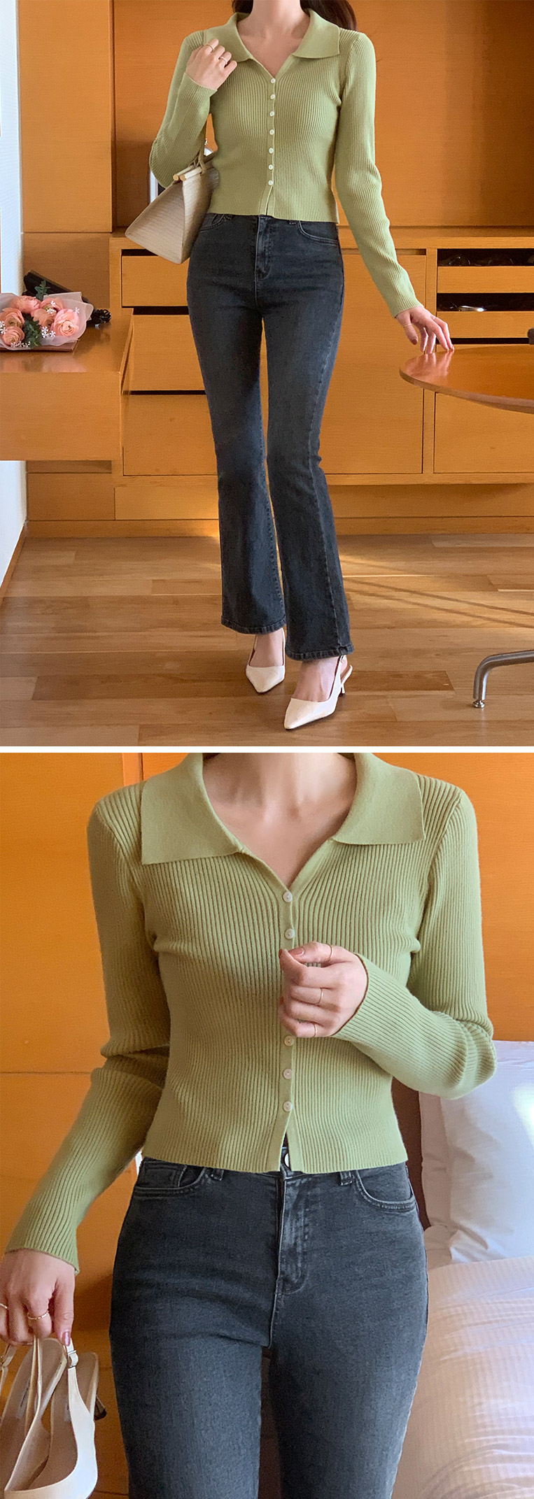 attrangs-아뜨랑스 - 모네 골지 크롭 카라 가디건♡韓國女裝外套