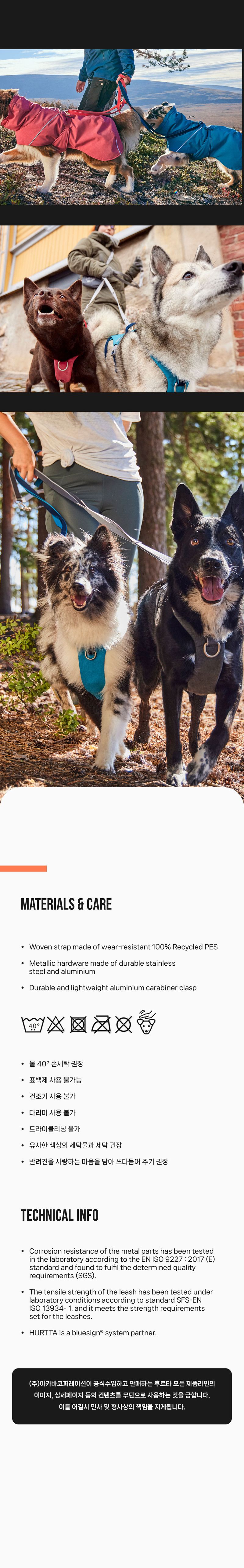| 備註 H 為了讓主人與狗狗享受各種戶外活動與冒險, Hurtta 推出升級版的 多用途長牽繩 II, 重量更輕、顏色更多樣。 這款牽繩可根據不同活動自由調整長度, 最短可達 100 公分,最長可延伸至 300 公分。 無論散步、訓練、遠足或運動,都能靈活使用。 牽繩兩端均設有強力金屬扣, 可同時連接兩隻狗的背帶或項圈, 亦可用於防止拉扯訓練,或作為臨時固定用途。 牽繩採用 100% 再生PES環保織帶 製成, 延續 Hurtta 對「狗與地球」友善的理念, 同時提供多款時尚色系, 讓你與狗狗在登山、散步、騎車時都能舒適又安全地同行。 *商品尺寸以cm為單位,可能因布料不同出現1~4cm的差異 *由於電腦螢幕的設定與解析度不同,可能會有輕微色差現象 |