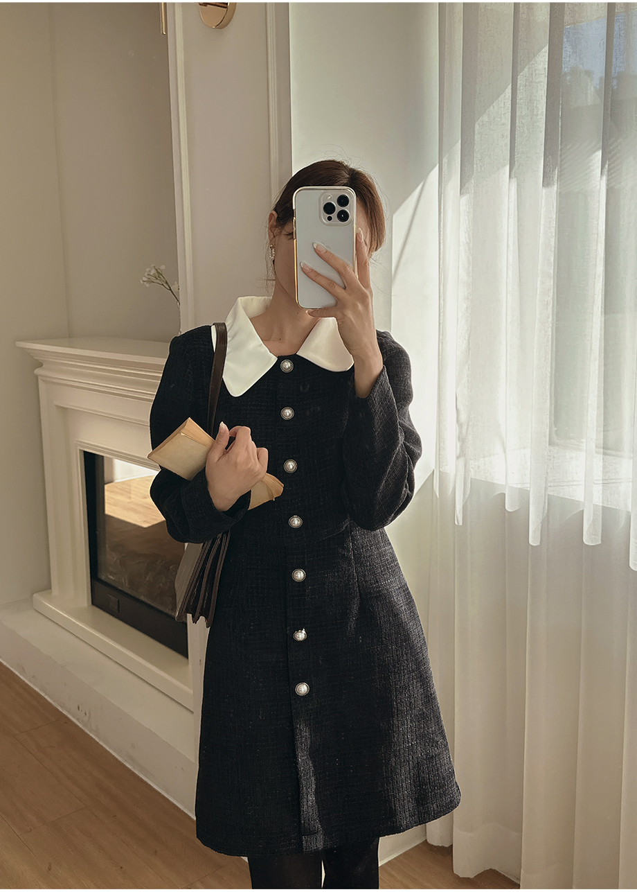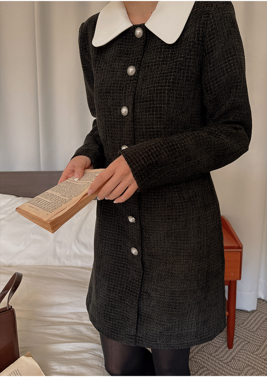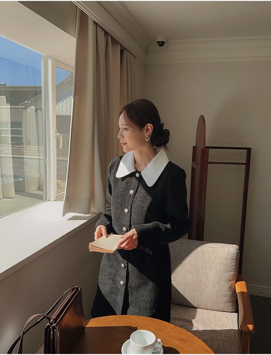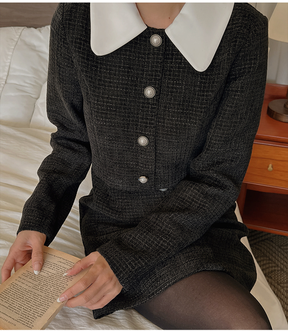 ririnco-[무료배송] 디셀르브 배색 트위드 미니 원피스♡韓國女裝連身裙