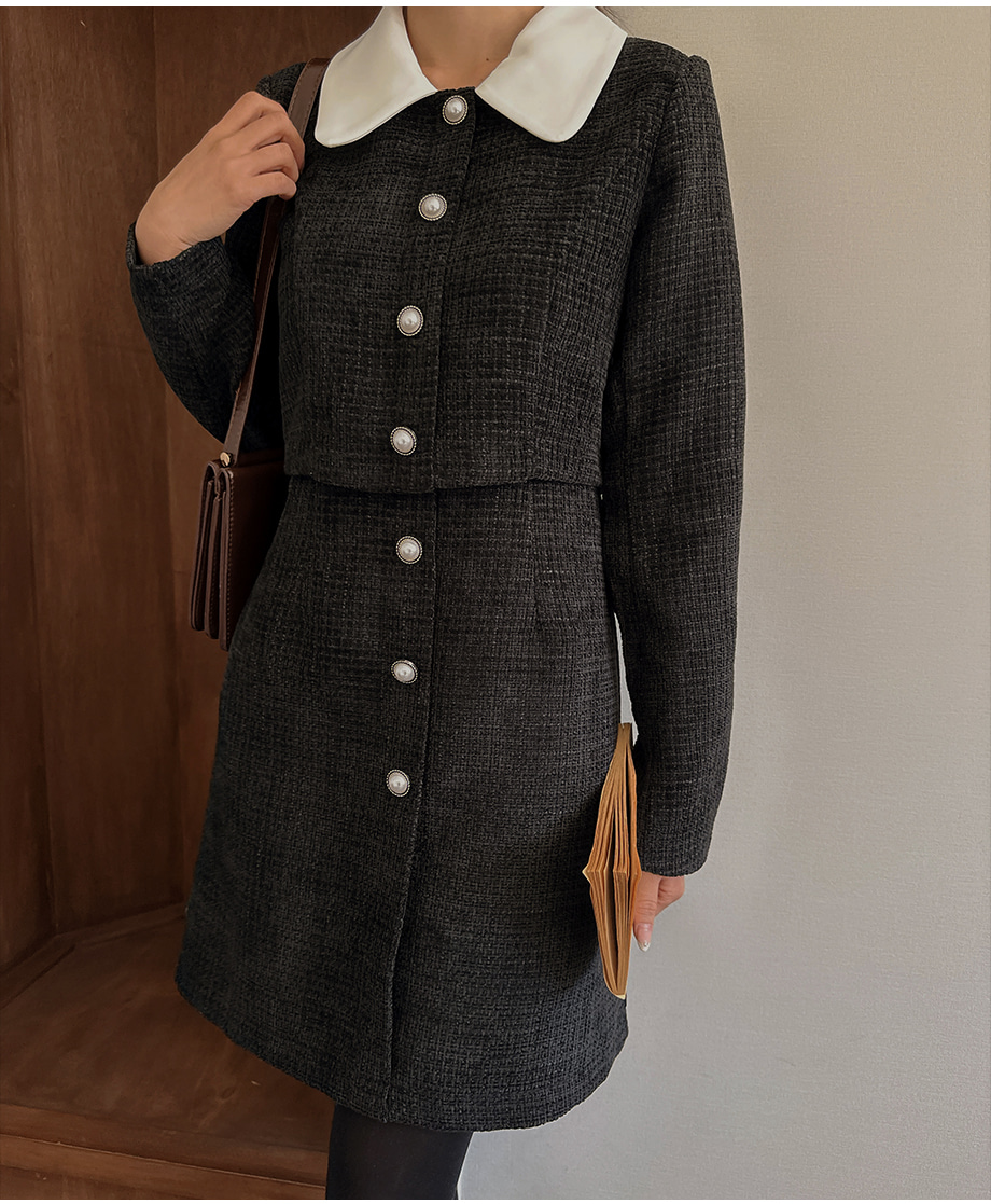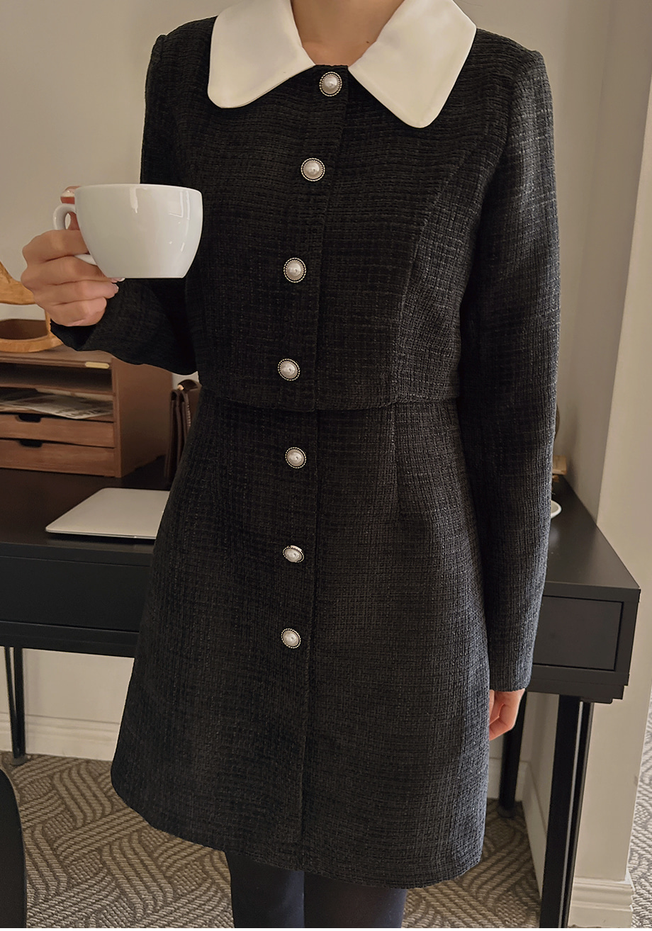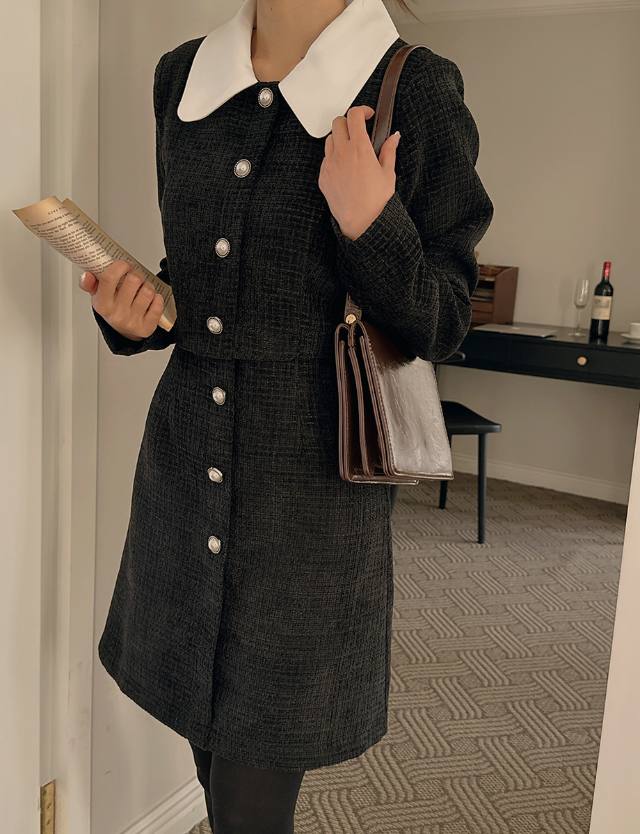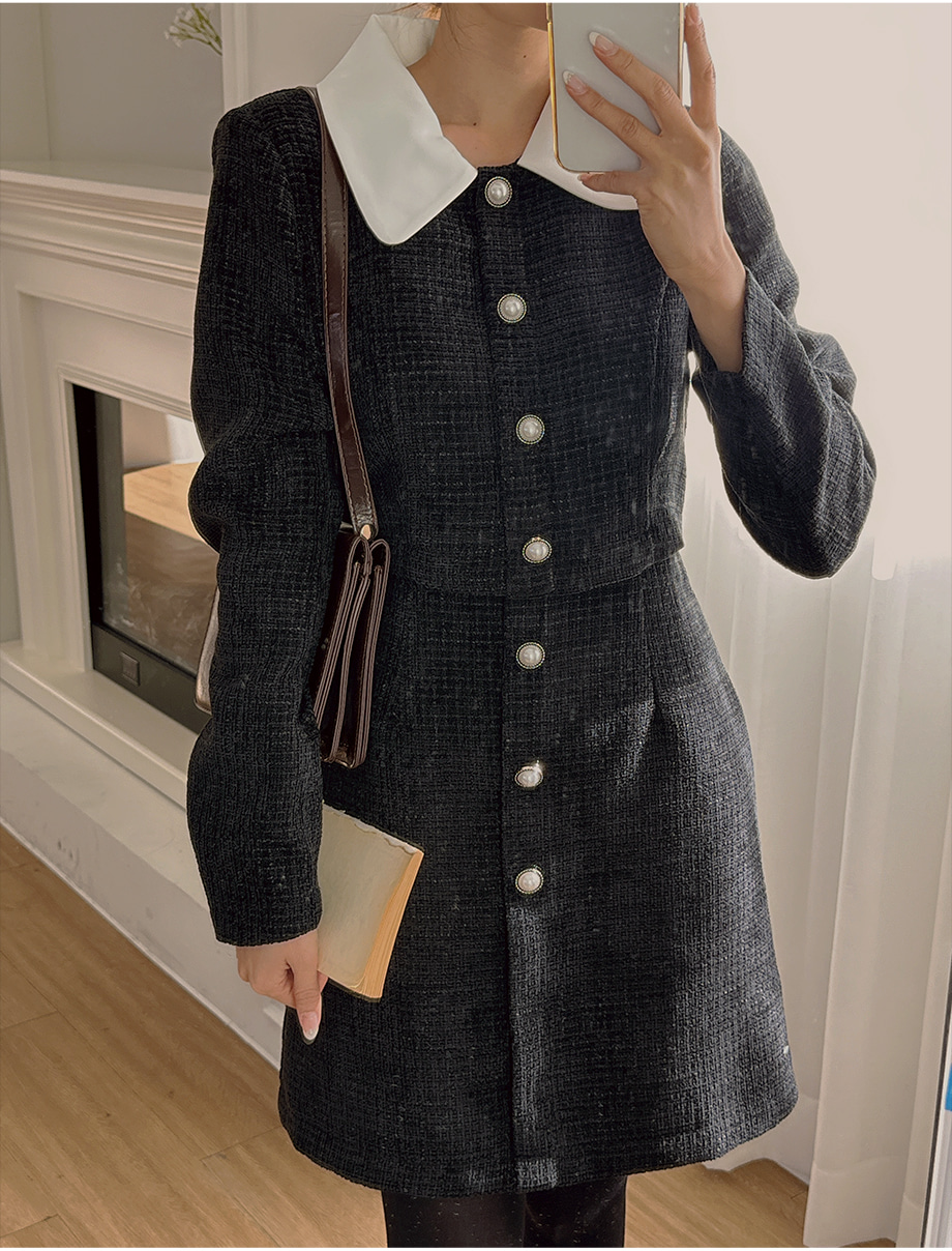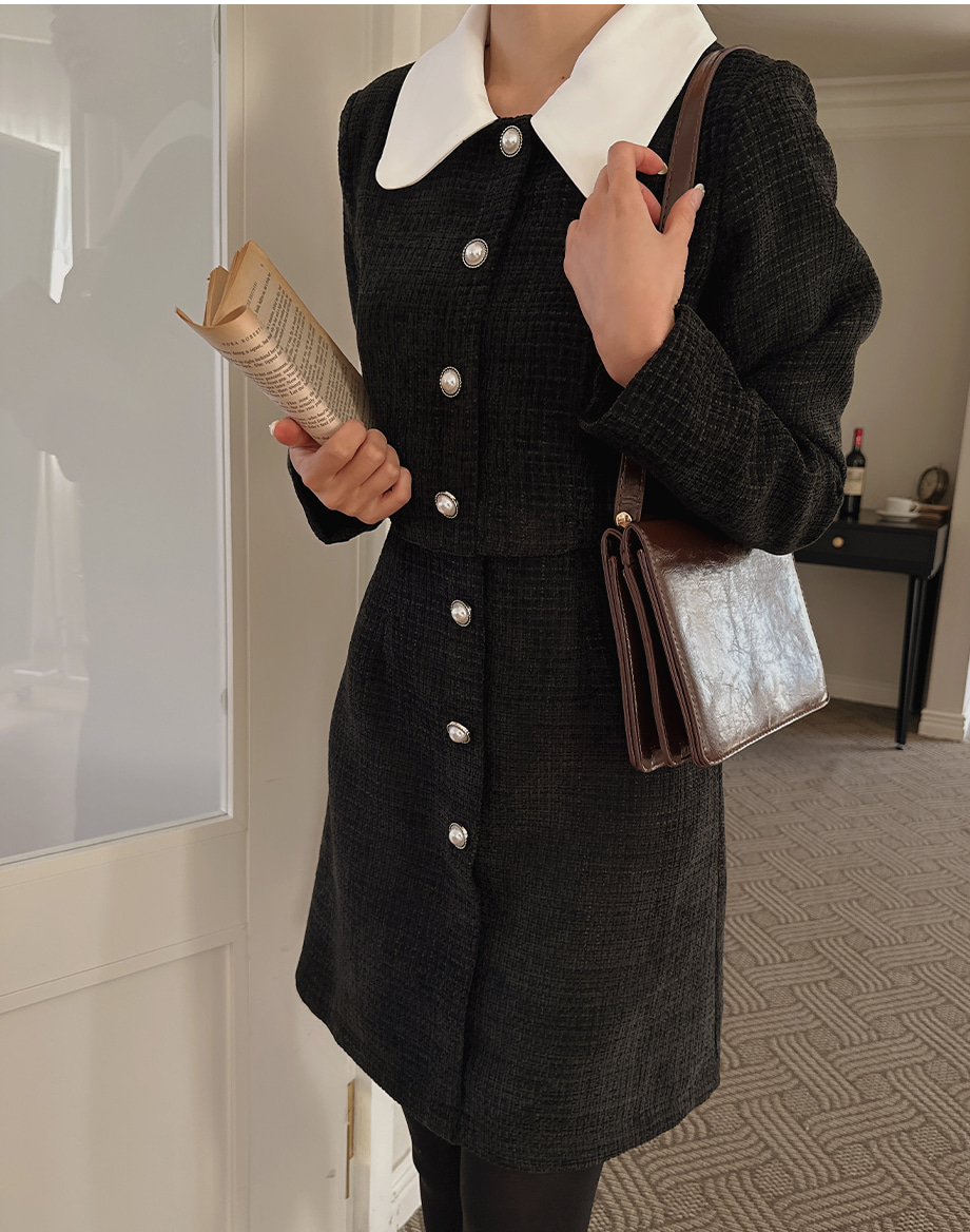 ririnco-[무료배송] 디셀르브 배색 트위드 미니 원피스♡韓國女裝連身裙