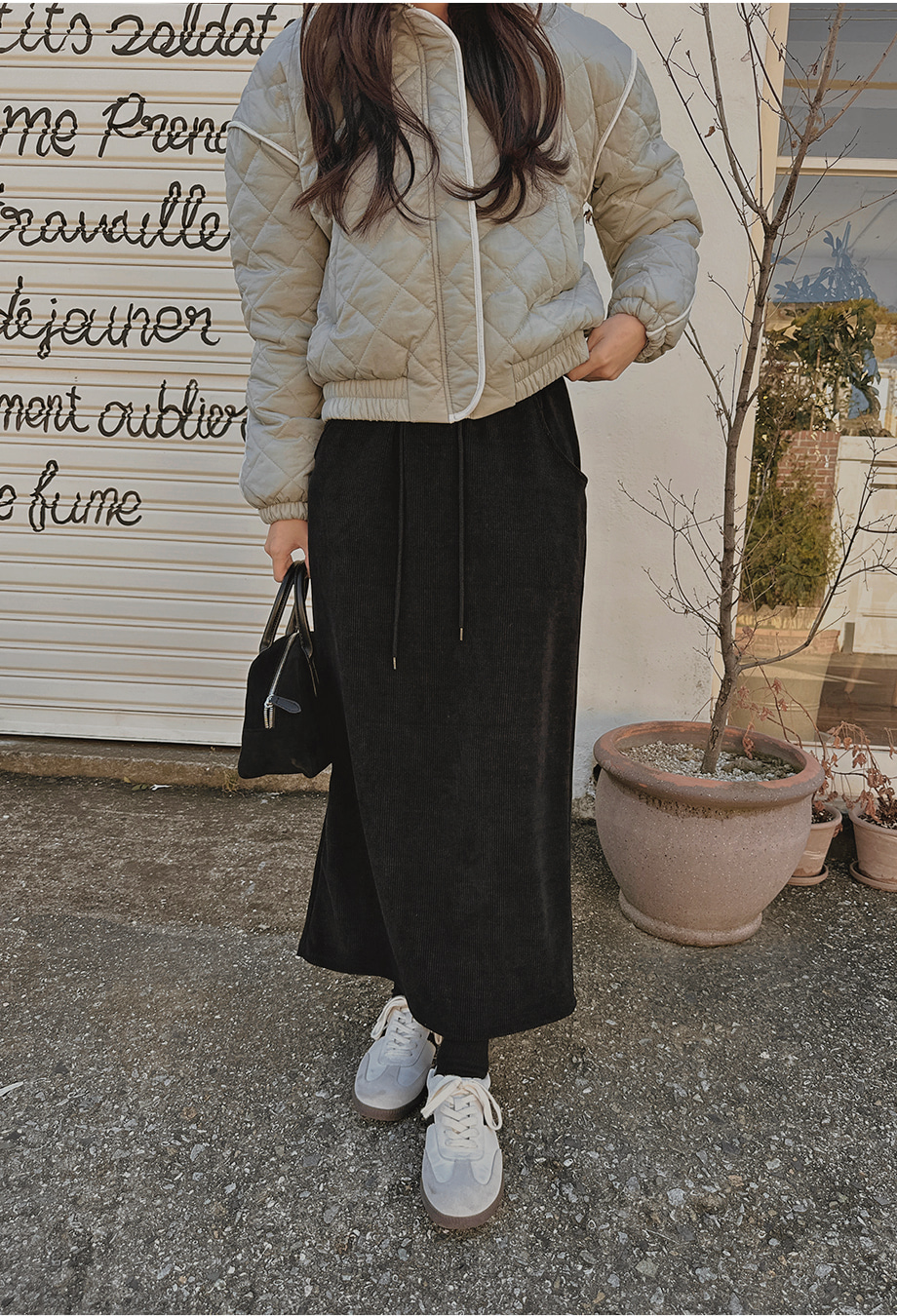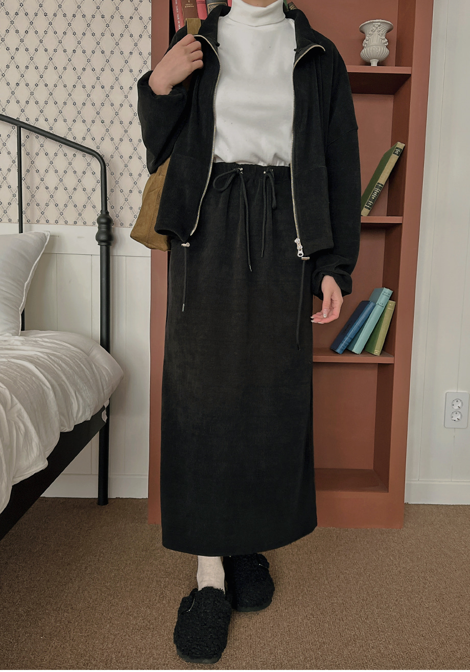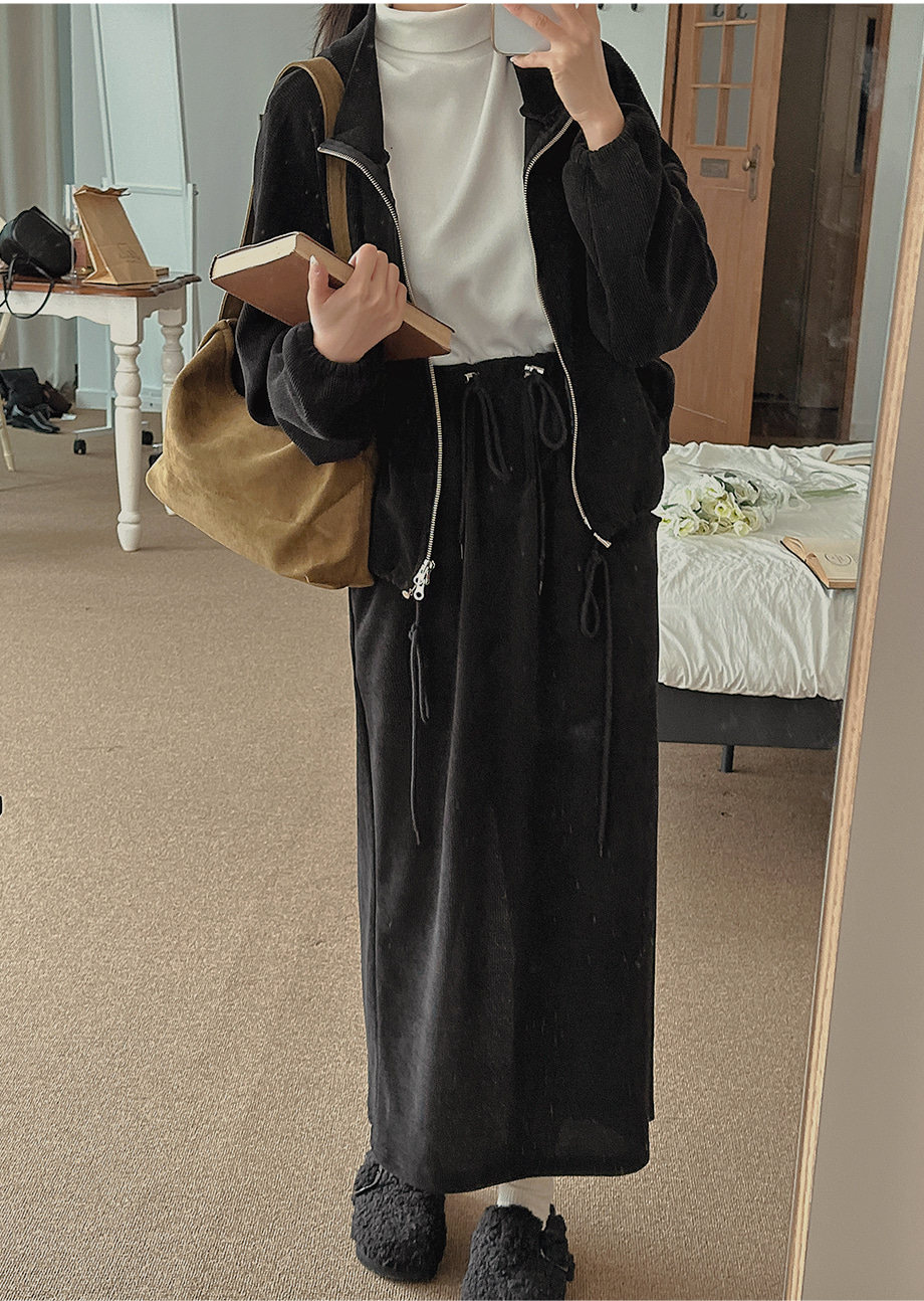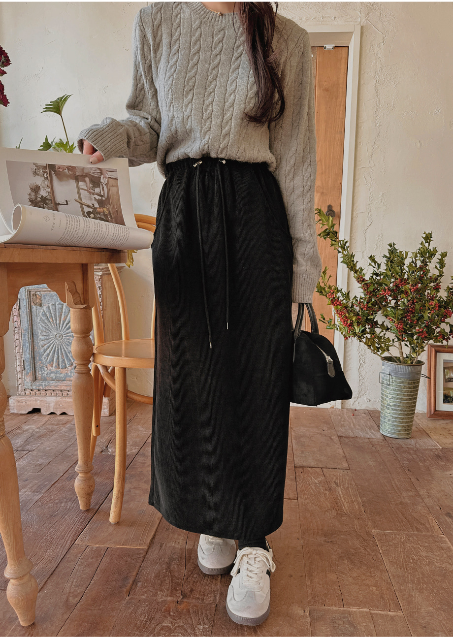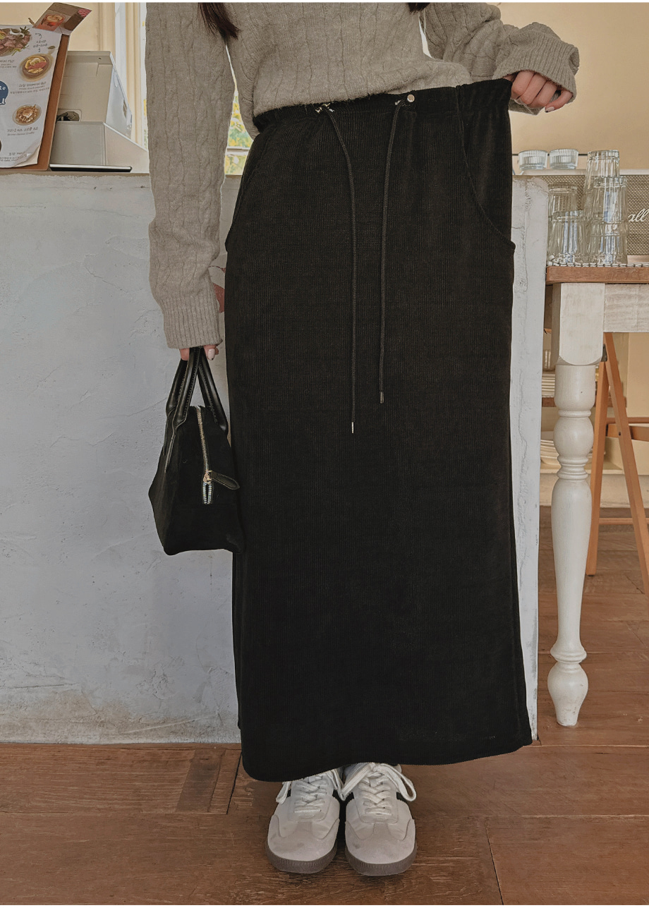 ririnco-우디븐 골덴 투피스 밴딩 뒷트임 스트링 스커트♡韓國女裝裙