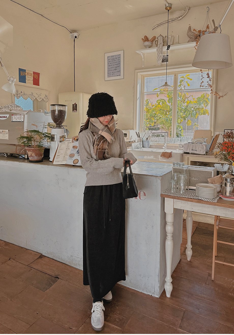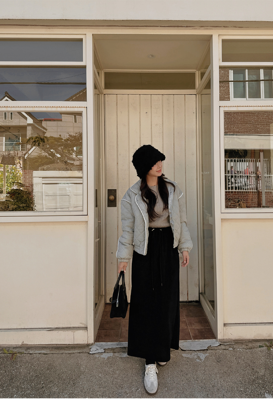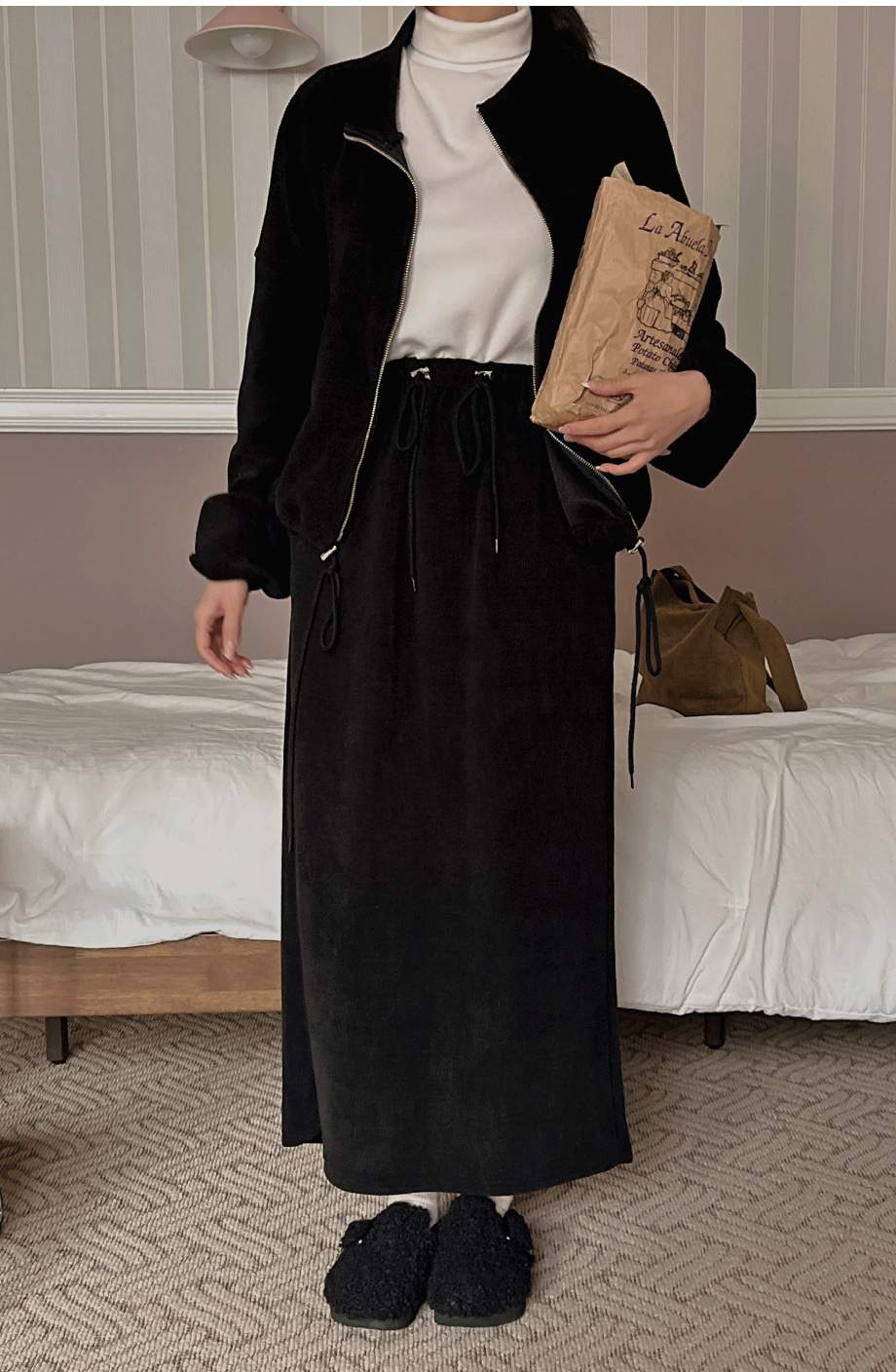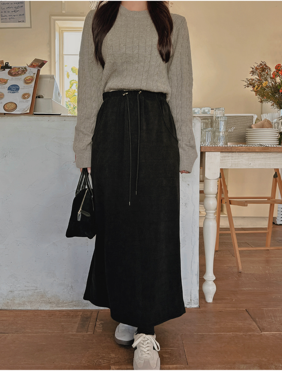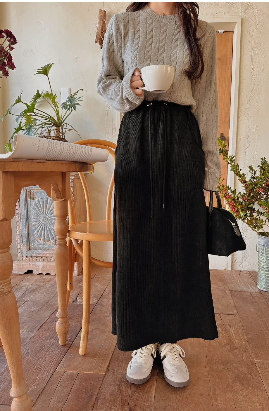 ririnco-우디븐 골덴 투피스 밴딩 뒷트임 스트링 스커트♡韓國女裝裙