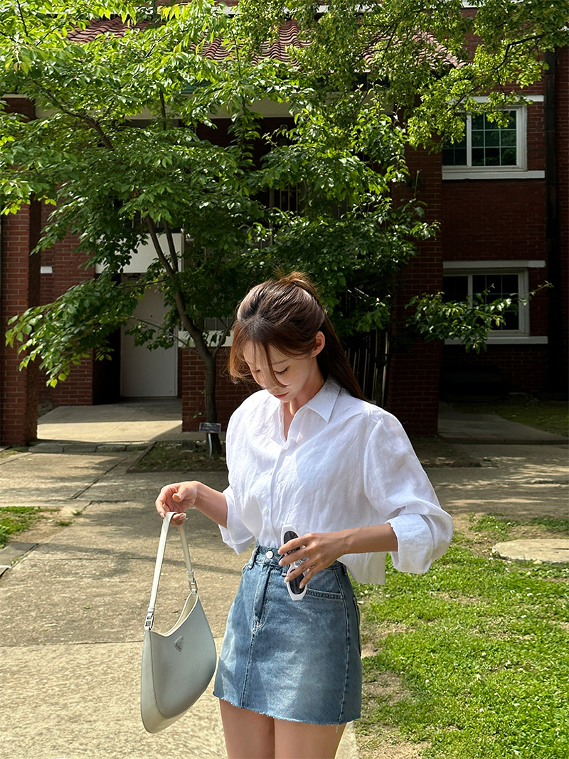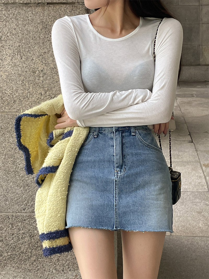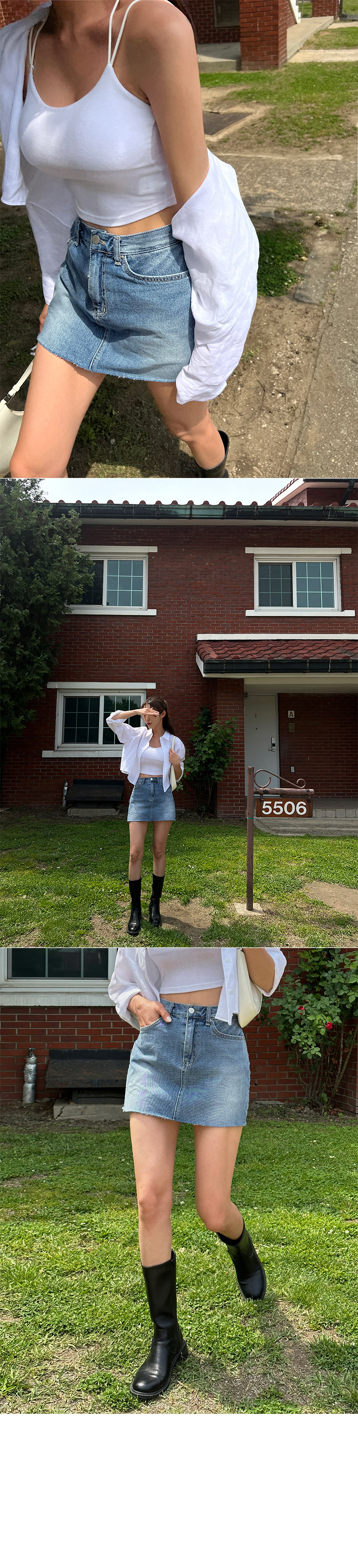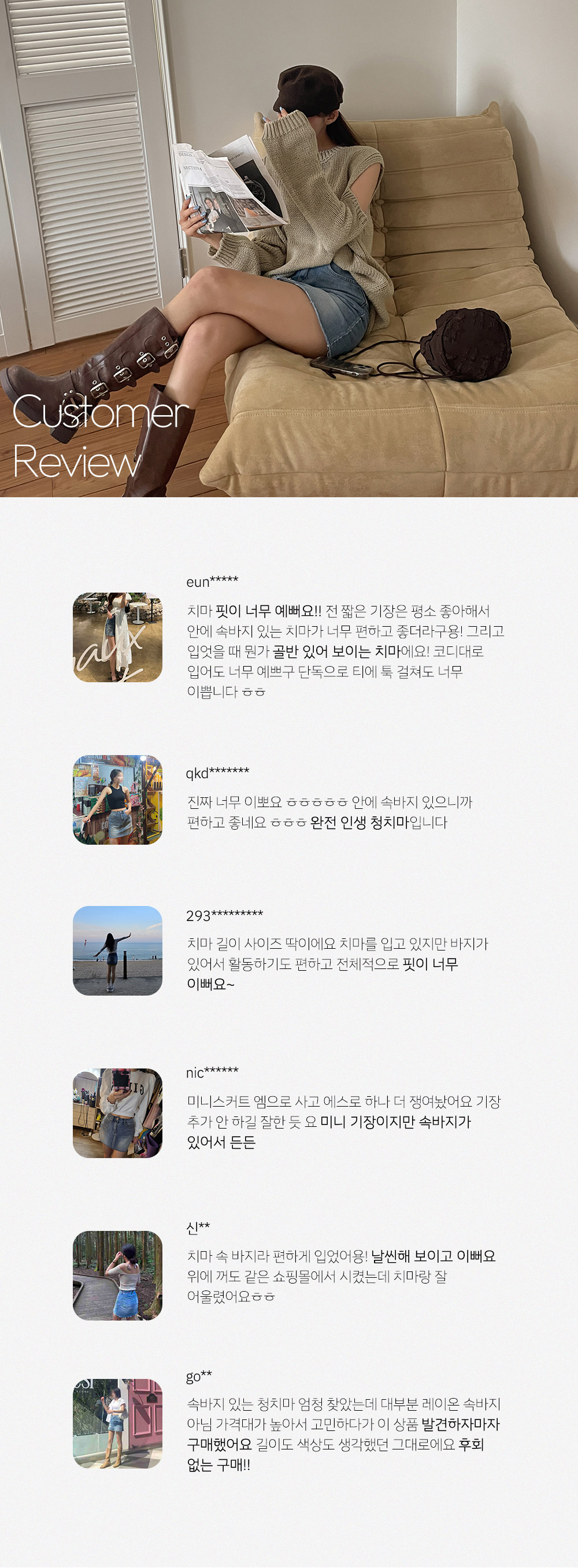 maybins-[당일발송]린 데님 미니 스커트(속바지포함)(자체제작 기장추가 기장추가스커트 치마바지 바지안감 A라인스커트)♡韓國女裝裙