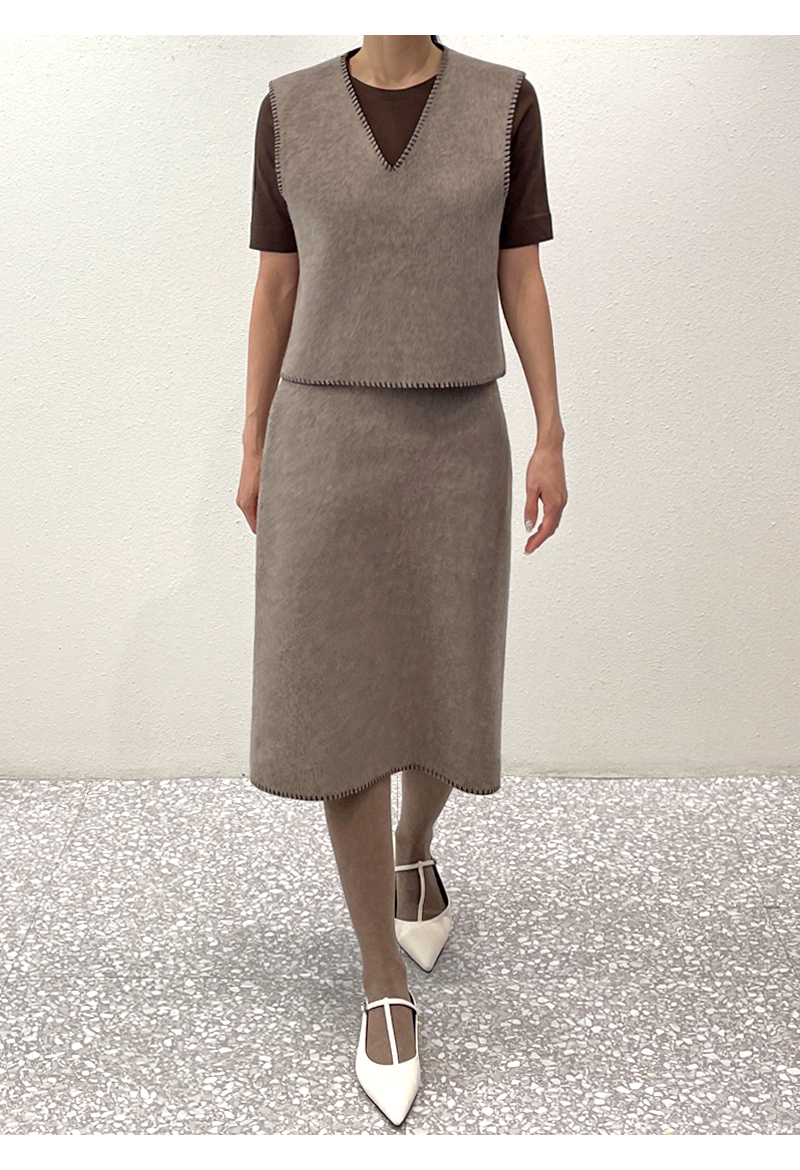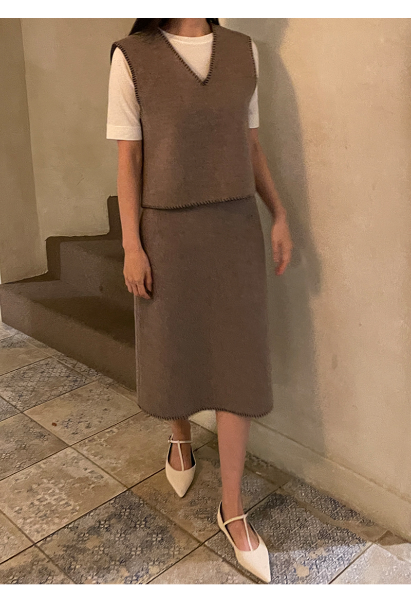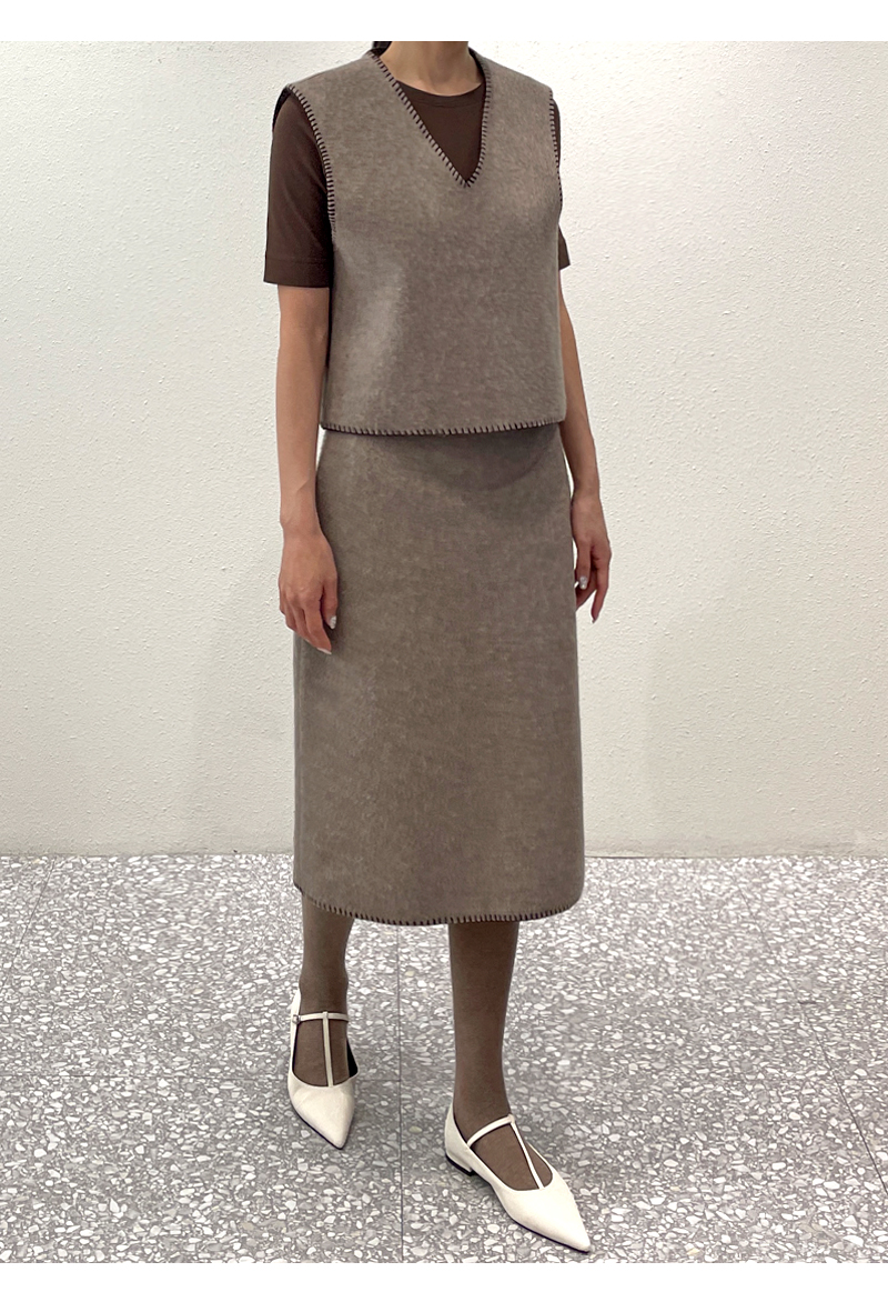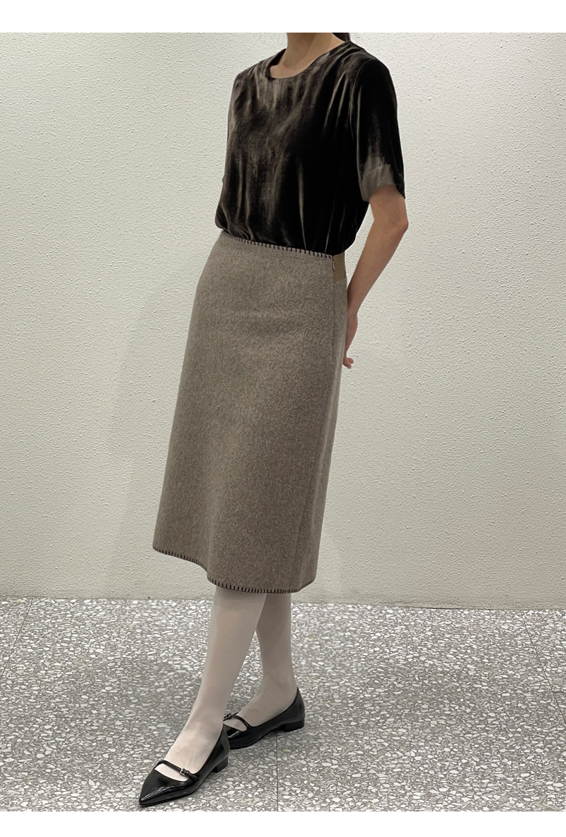 zoozoom-wt123/[울80%]스티치포인트 H라인 밴딩스커트♡韓國女裝裙