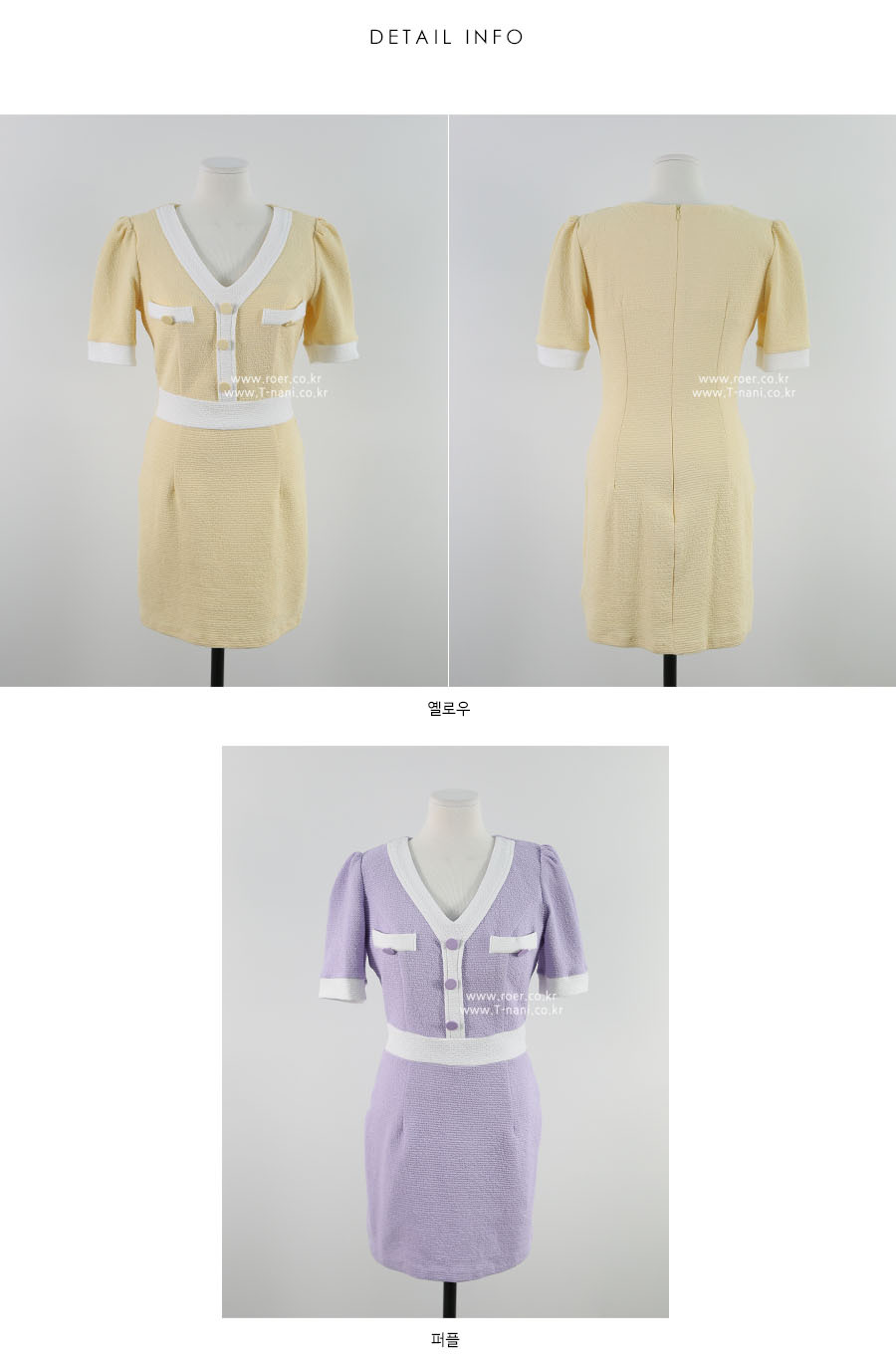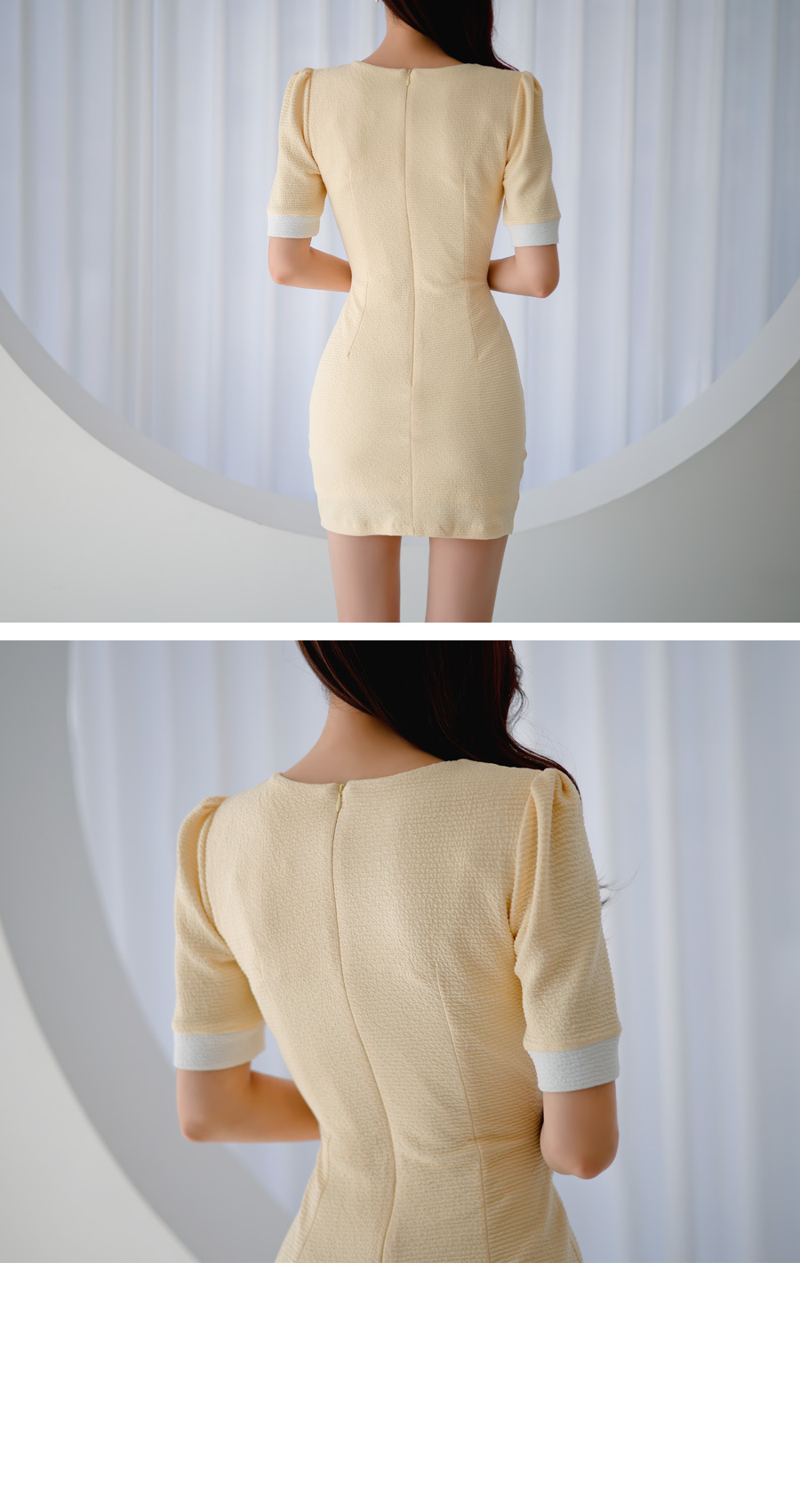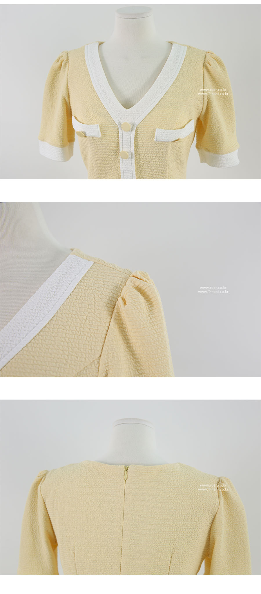 roer-Roer [엠보싱 배색 원피스]♡韓國女裝連身裙