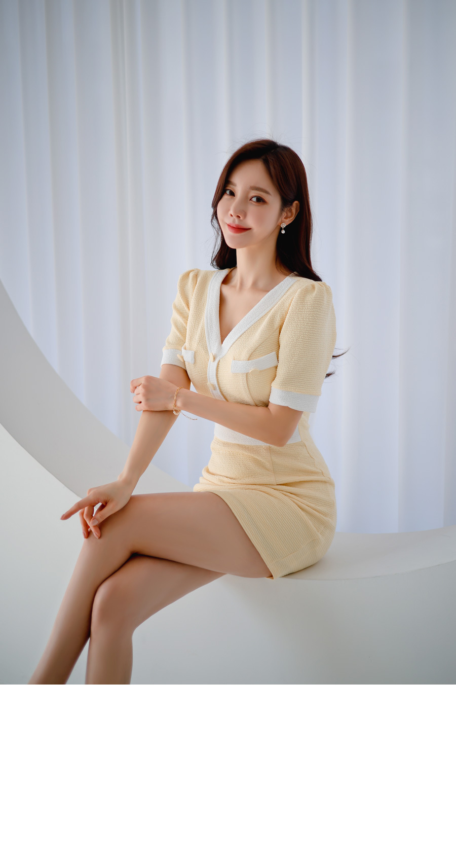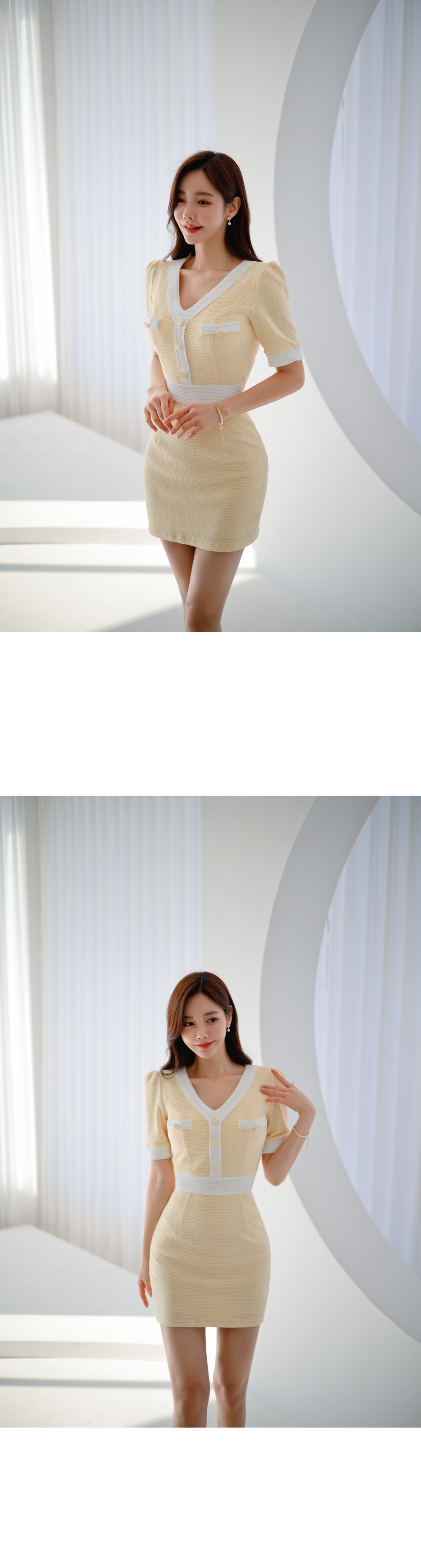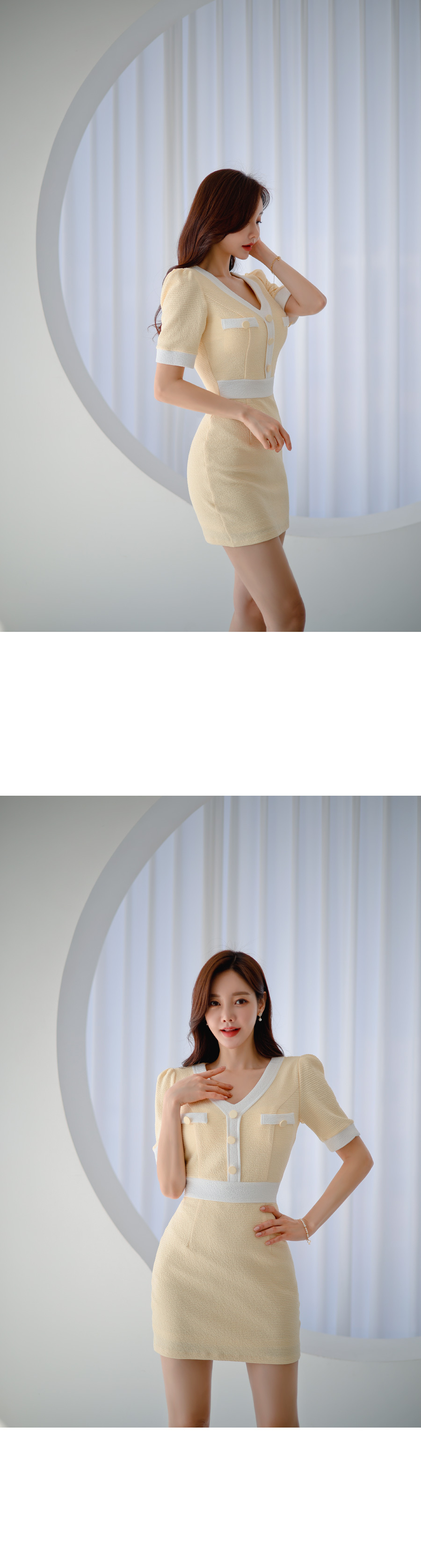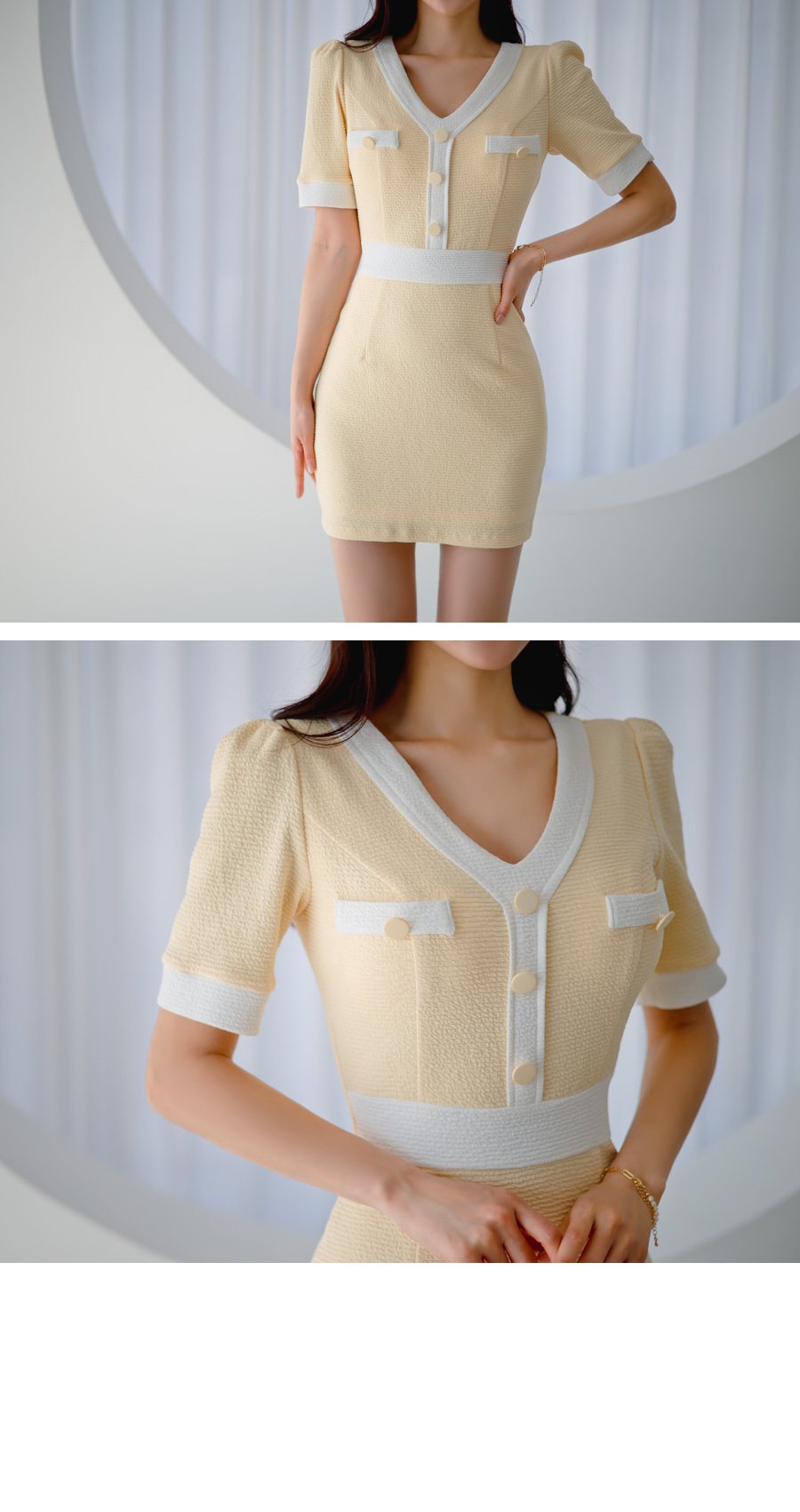 roer-Roer [엠보싱 배색 원피스]♡韓國女裝連身裙