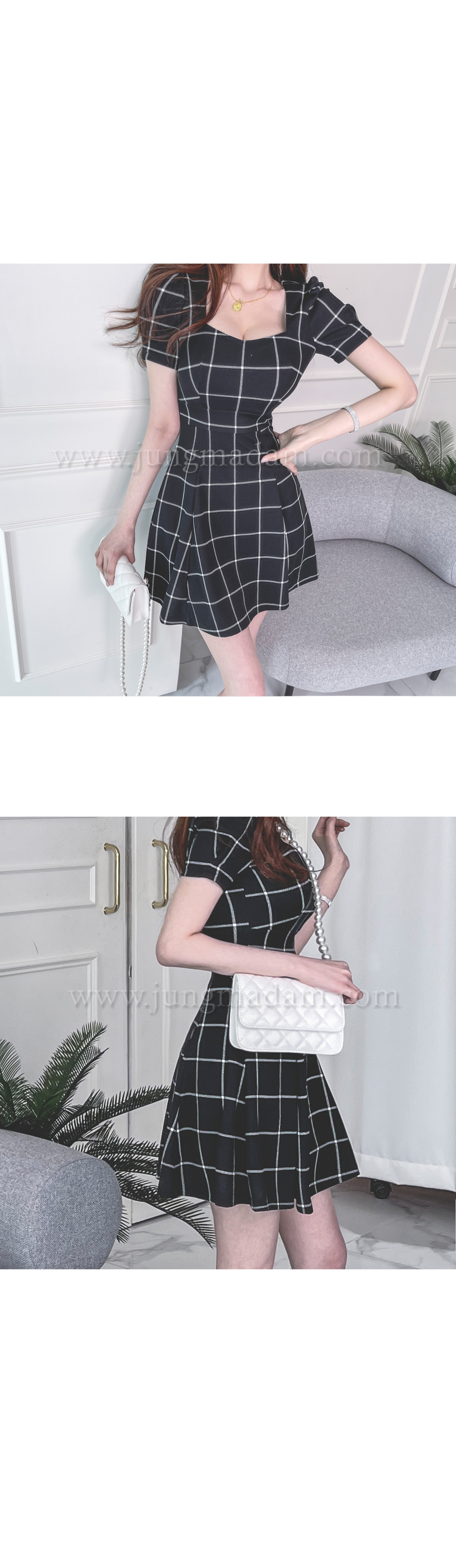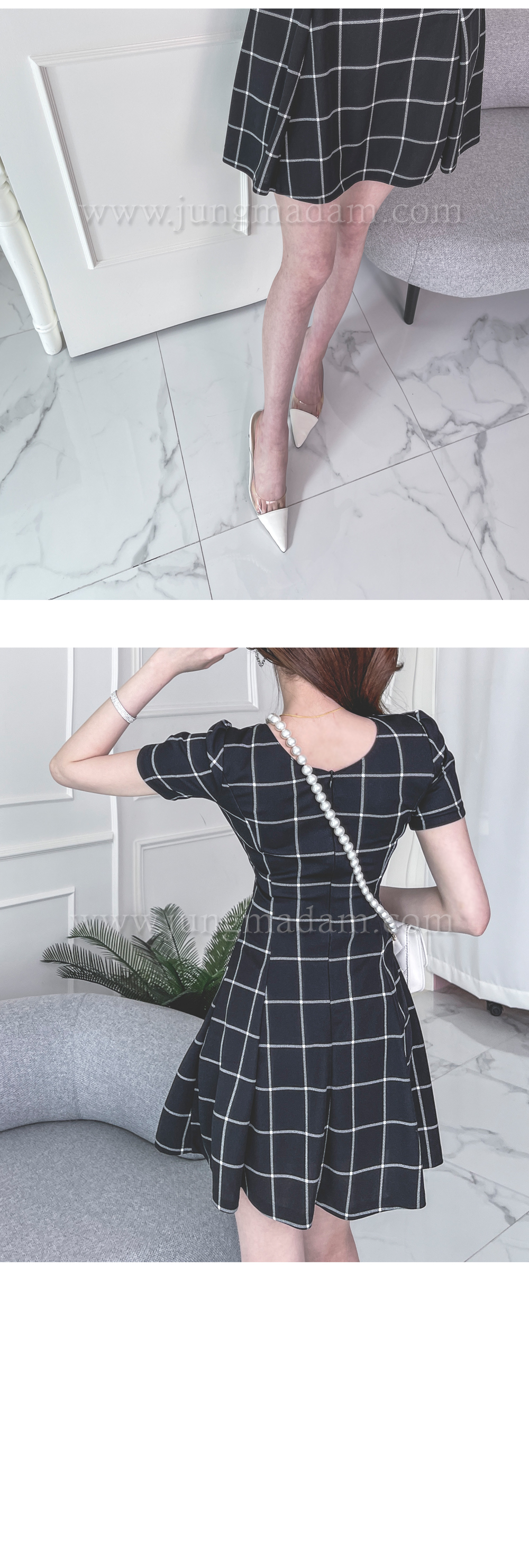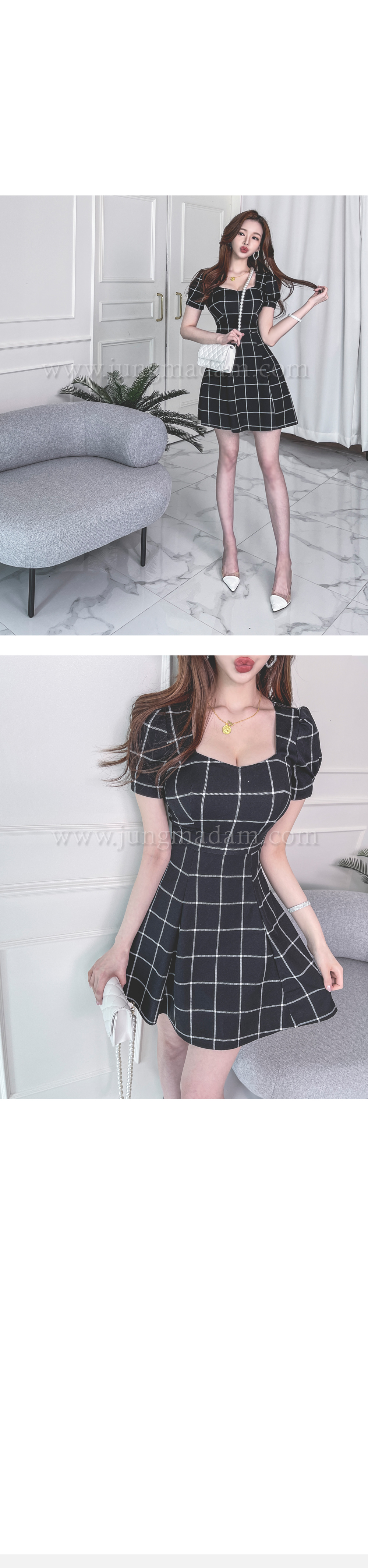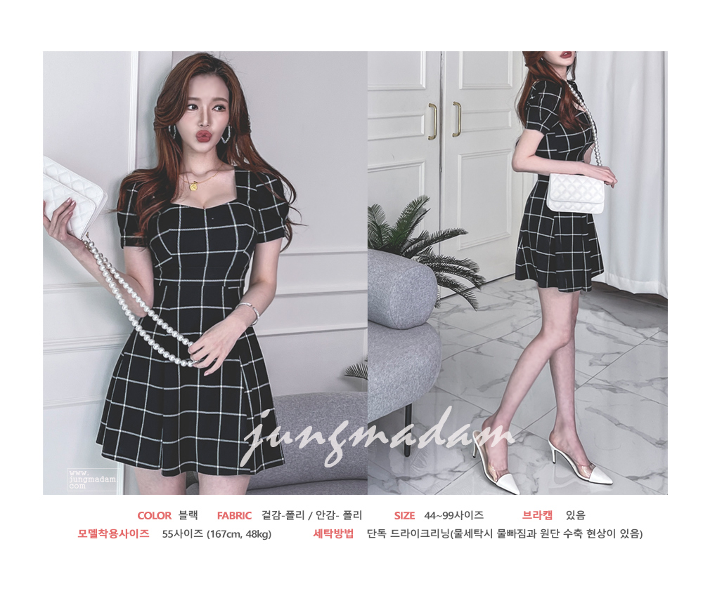 jungmadam - [15386]블랙 첵스 플레어 원피스♡韓國女裝連身裙