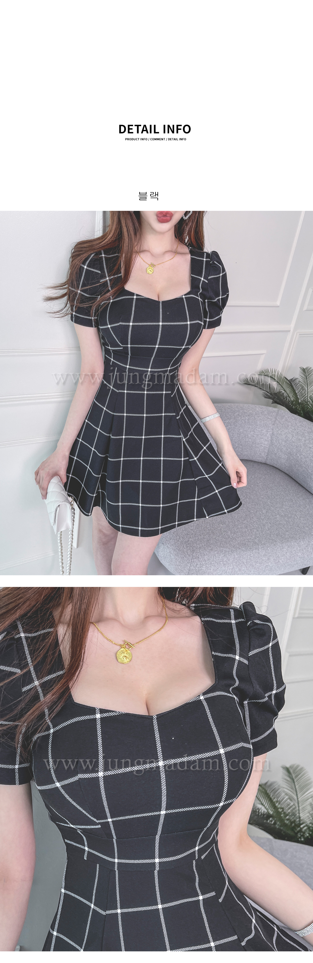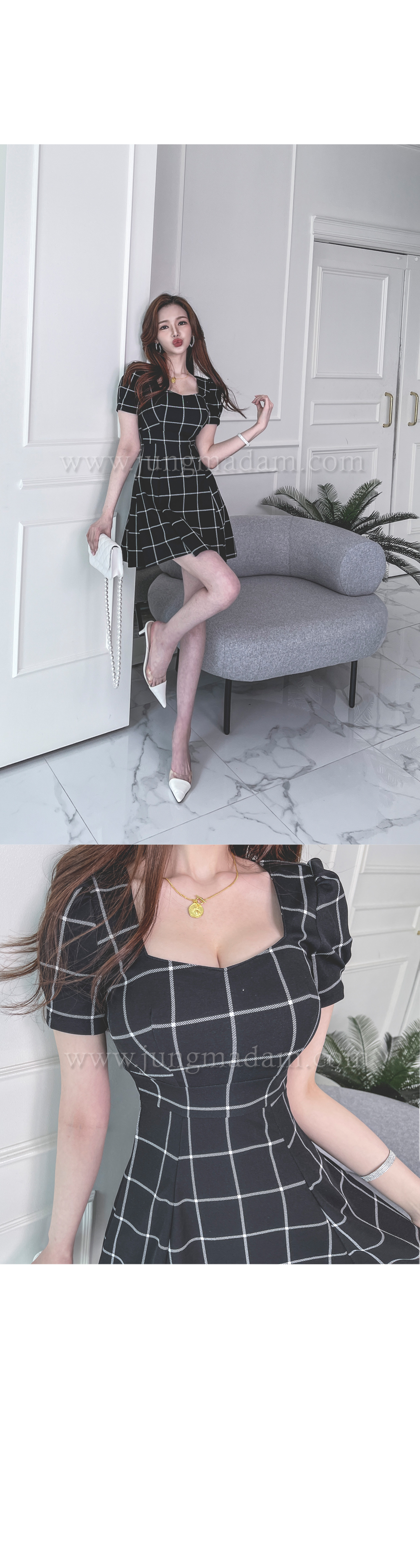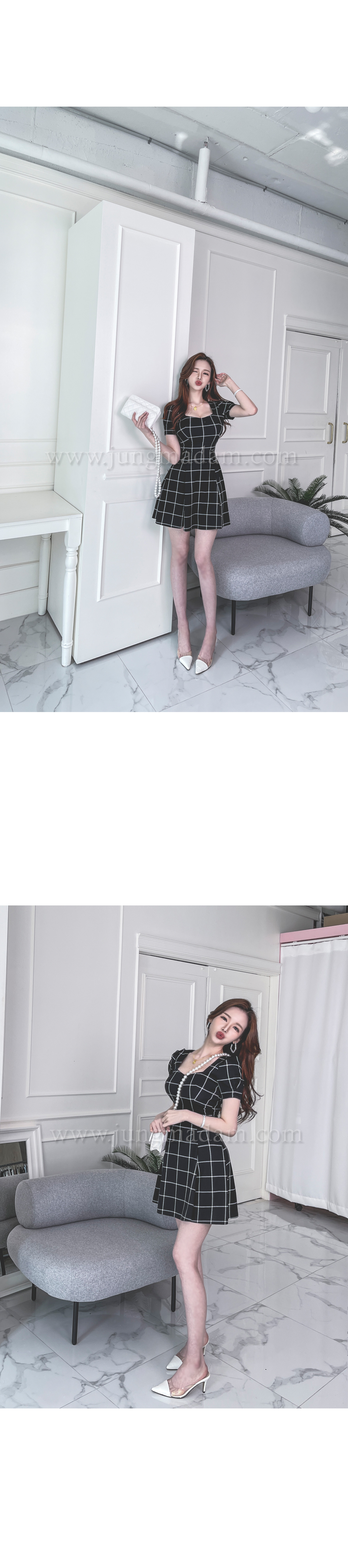 jungmadam - [15386]블랙 첵스 플레어 원피스♡韓國女裝連身裙
