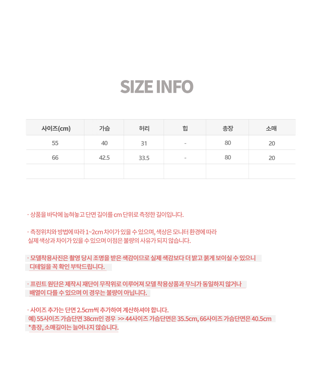 | 備註 *商品尺寸以cm為單位,可能因布料不同出現1~4cm的差異 *由於電腦螢幕的設定與解析度不同,可能會有輕微色差現象 |