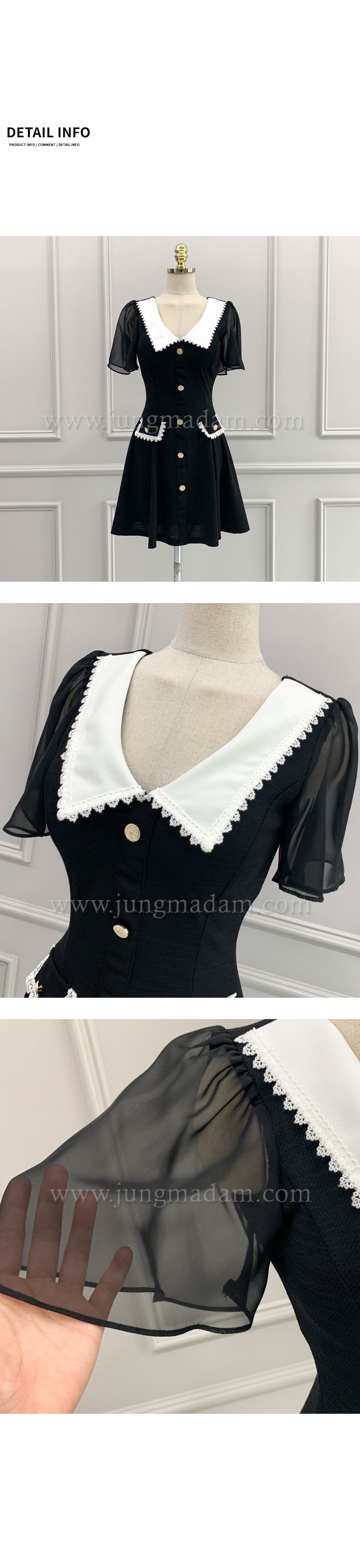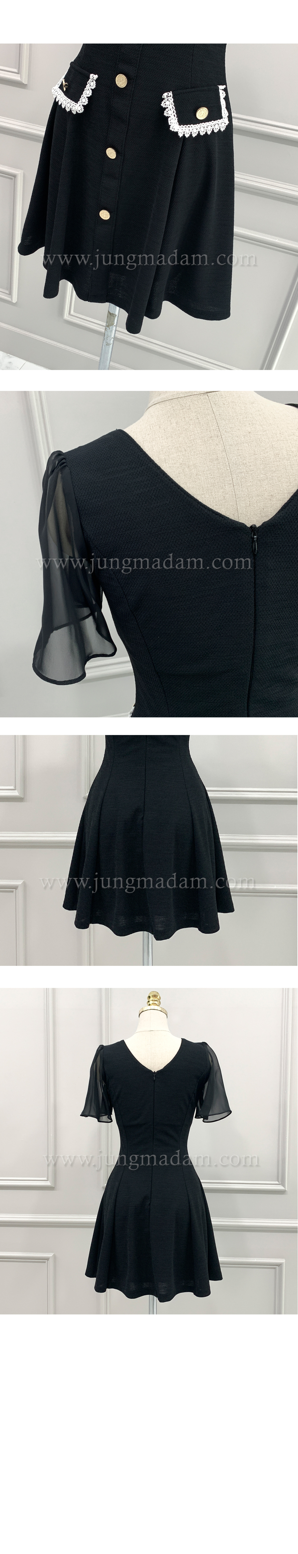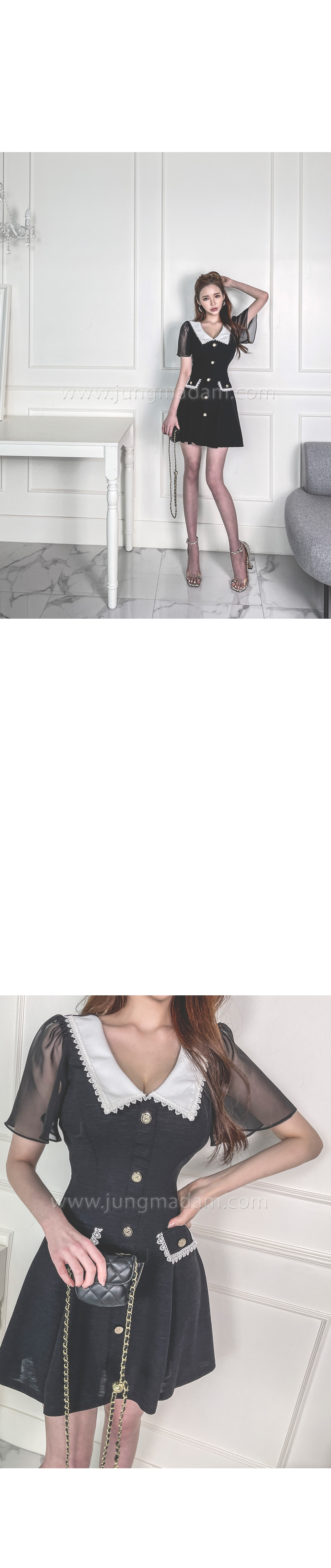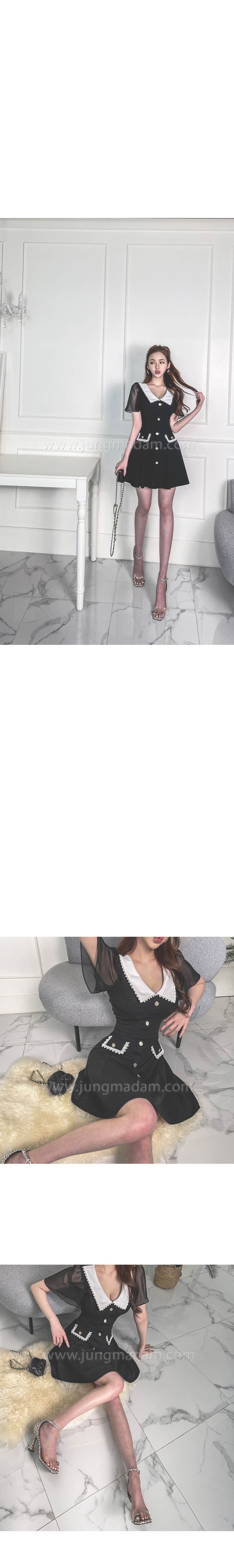 jungmadam - [16682]블랙 마델 카라 플레어 원피스♡韓國女裝連身裙