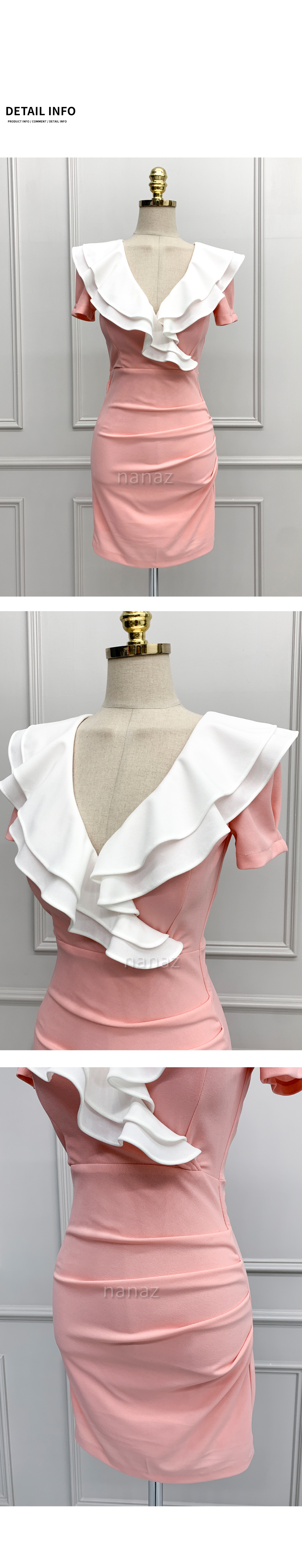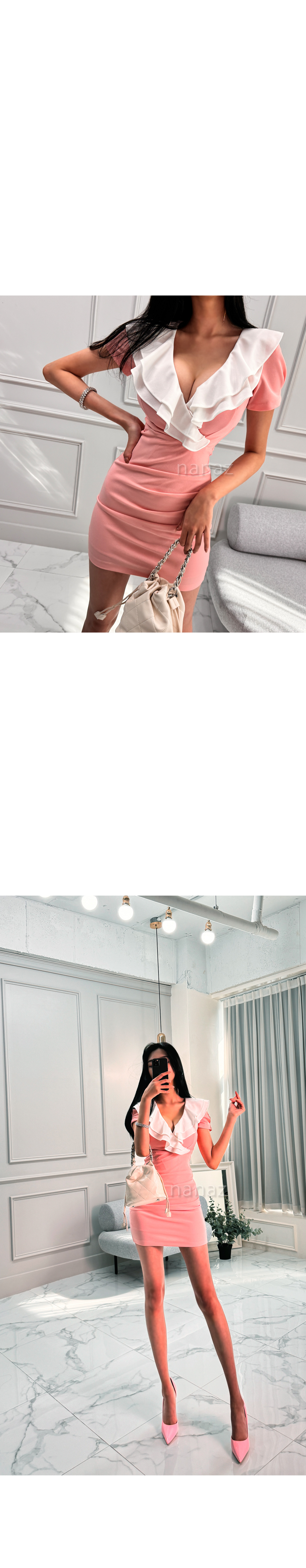 jungmadam - [18015]피치핑크 모라 러플 원피스♡韓國女裝連身裙
