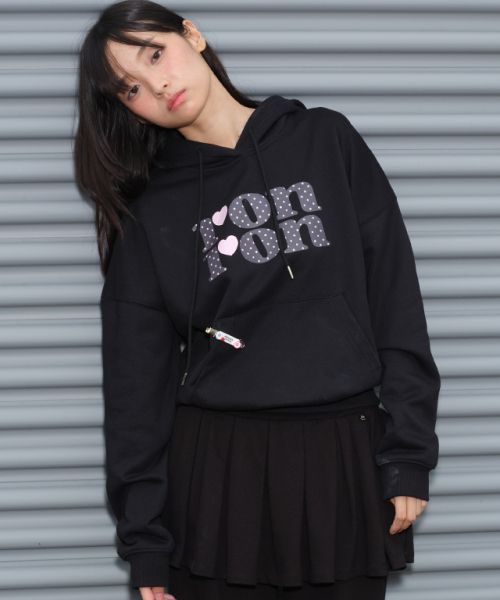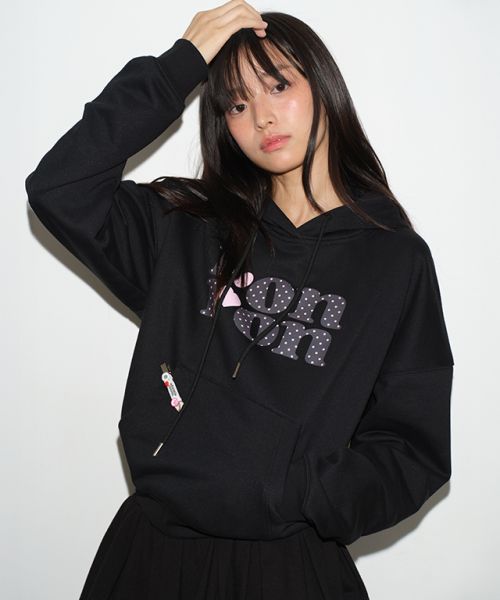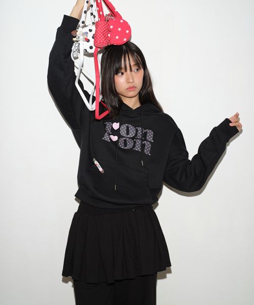 【限時優惠】韓國(RONRON) - DOT LOGO CROP HOODIE BLACK