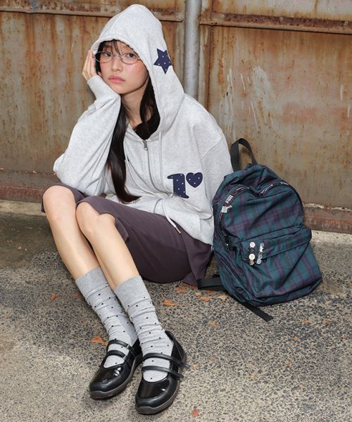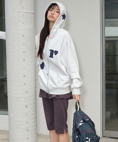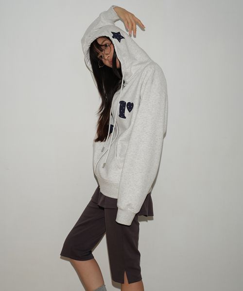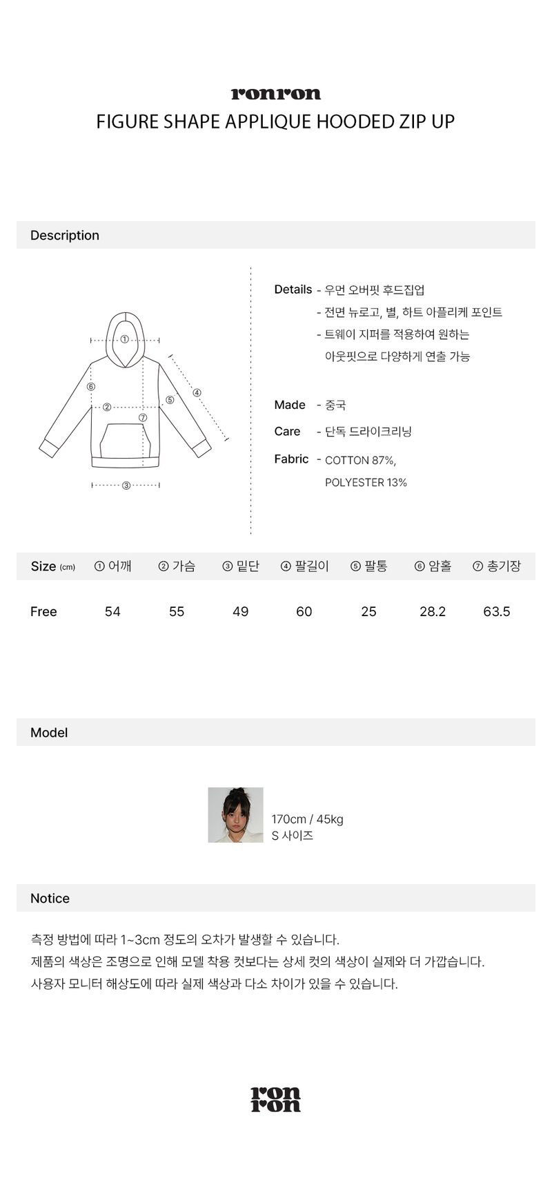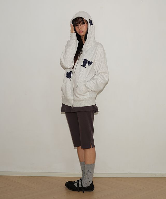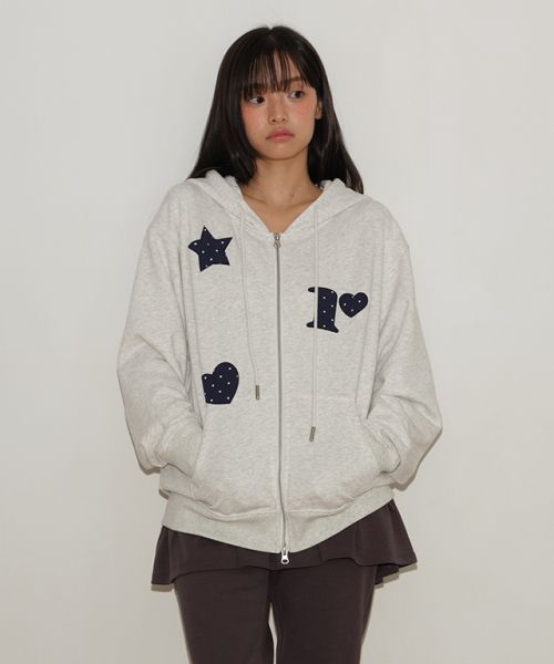 【限時優惠】韓國(RONRON) - FIGURE SHAPE APPLIQUE HOODED ZIP UP WHITE MELANGE