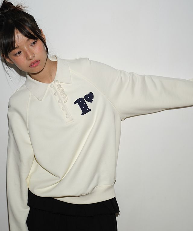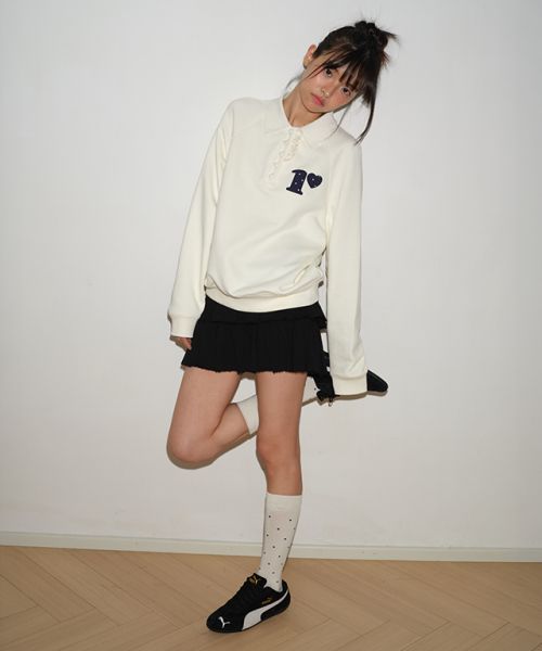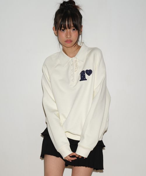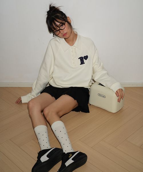【限時優惠】韓國(RONRON) - DOT R FRILL COLLAR SWEATSHIRT CREAM