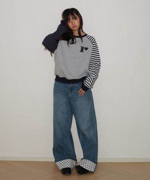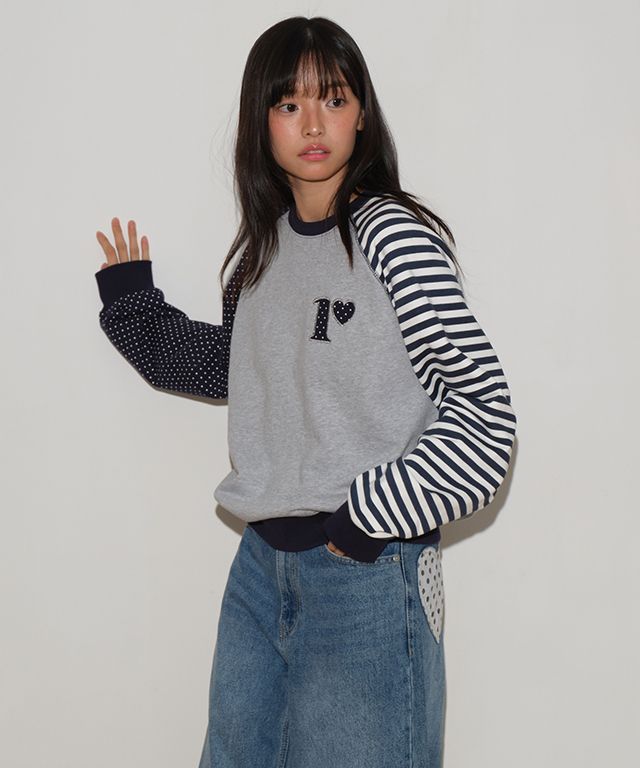 【限時優惠】韓國(RONRON) - DOT R STRIPE BLOCKING SWEATSHIRT GREY
