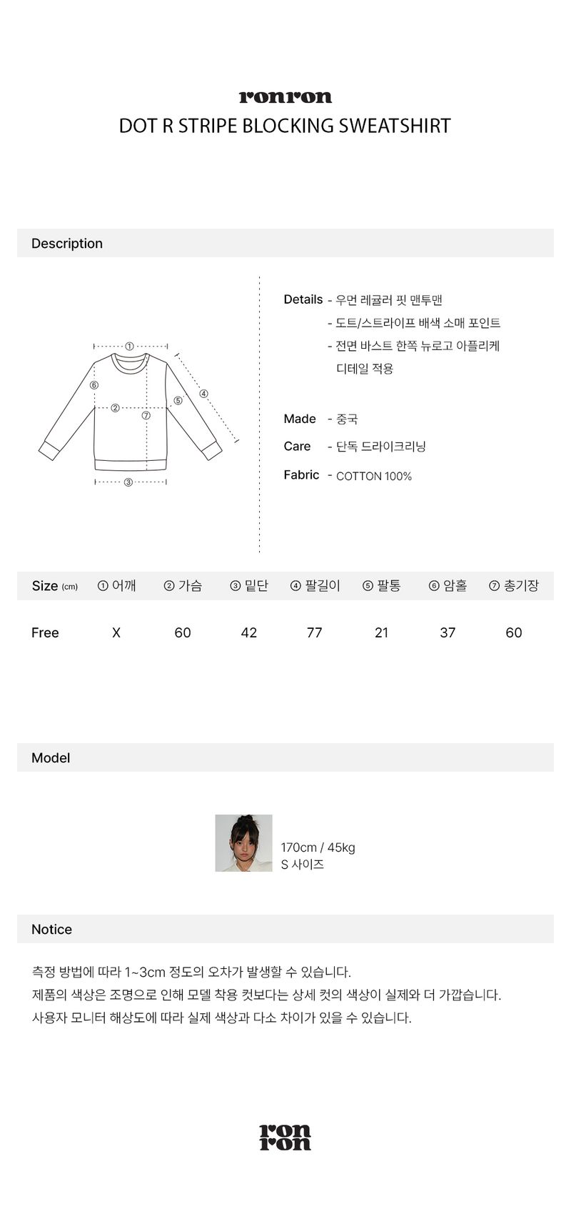 【限時優惠】韓國(RONRON) - DOT R STRIPE BLOCKING SWEATSHIRT CREAM