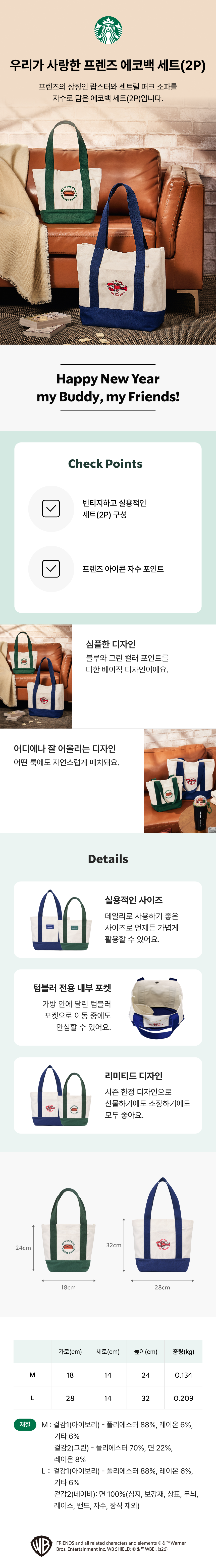 韓國 STARBUCKS × Friends 聯名帆布袋套組 (2入)