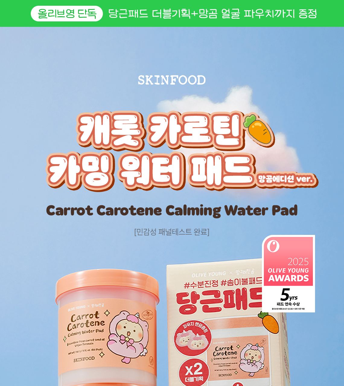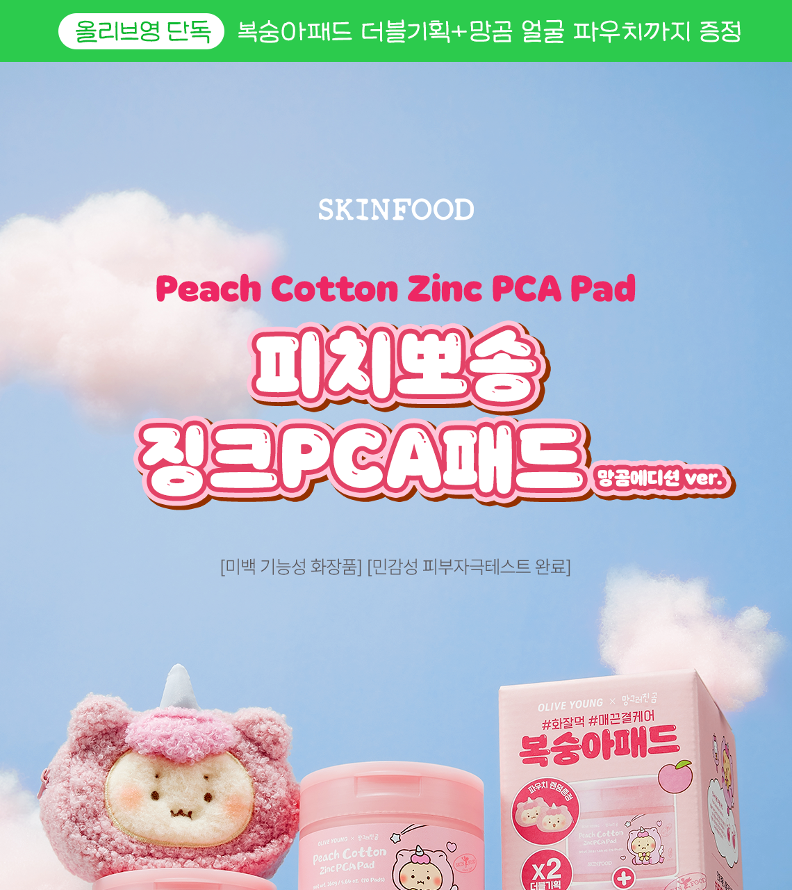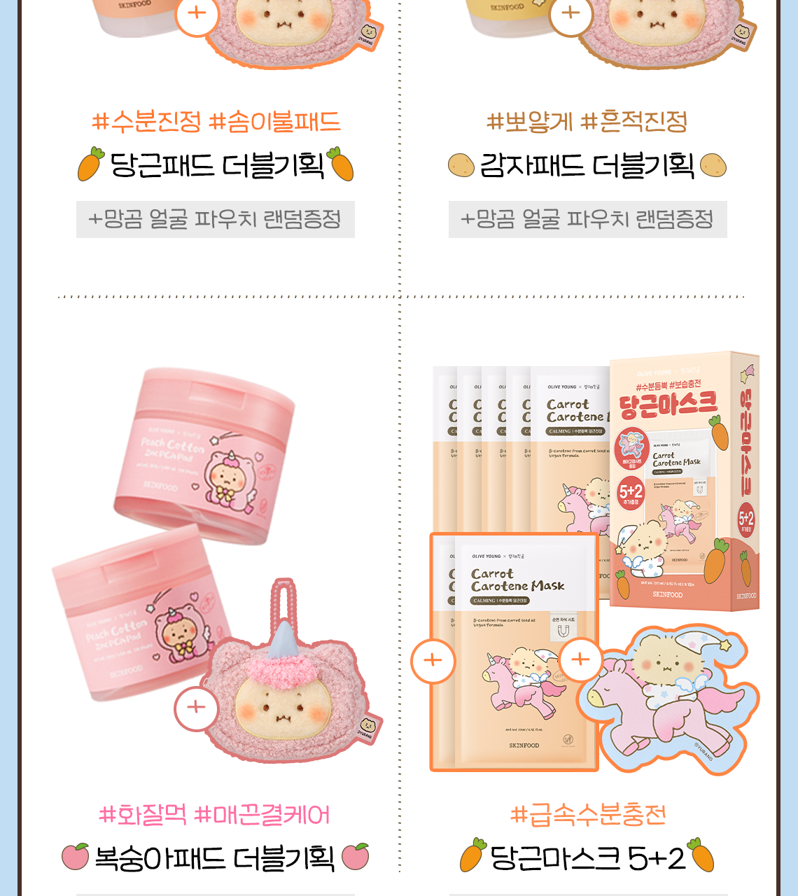 【1+1/MangGom聯名】SKINFOOD化妝棉雙入組3款(附MangGom臉部收納包)(胡蘿蔔/馬鈴薯/水蜜桃)
