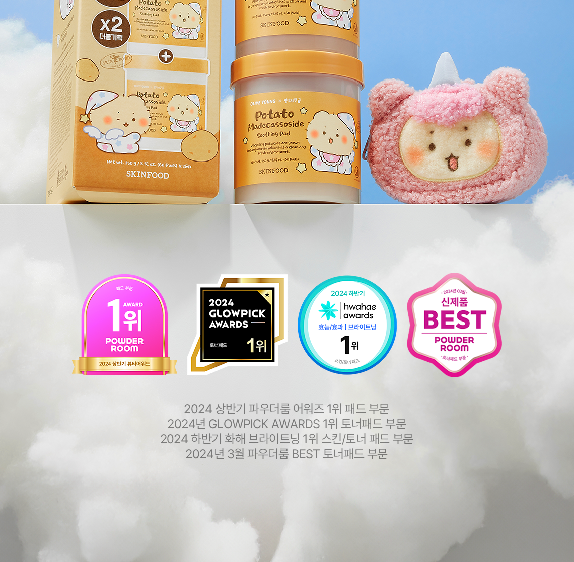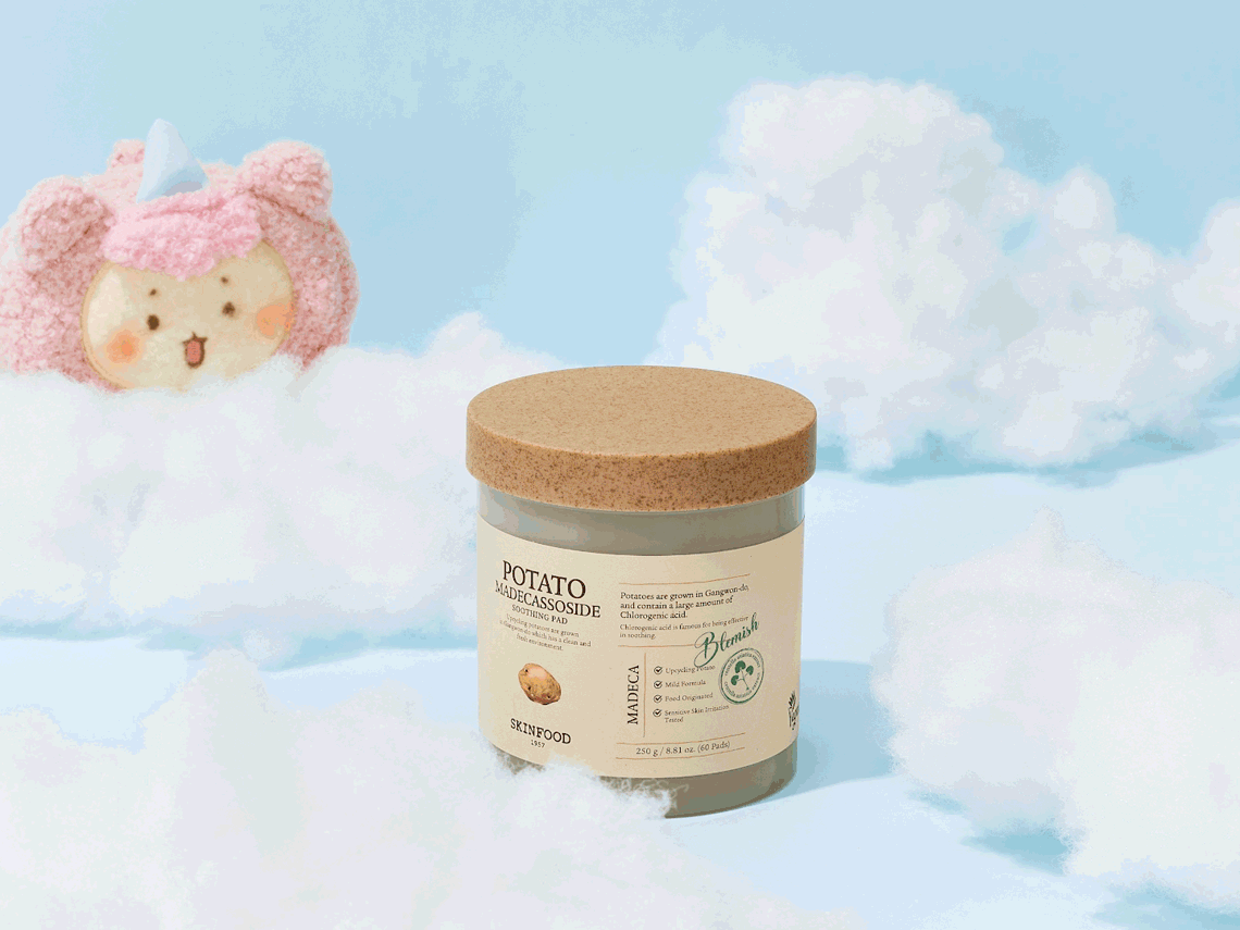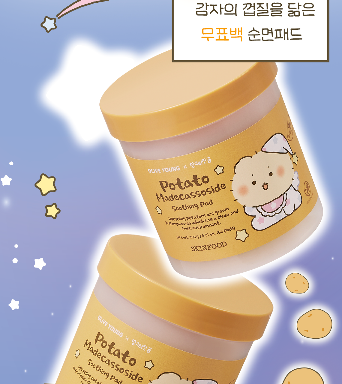 【1+1/MangGom聯名】SKINFOOD化妝棉雙入組3款(附MangGom臉部收納包)(胡蘿蔔/馬鈴薯/水蜜桃)
