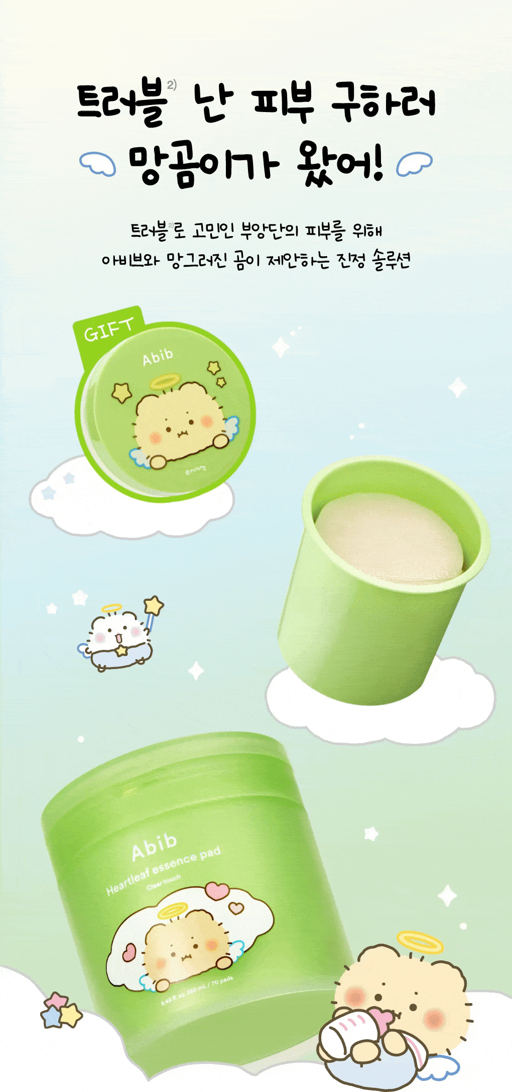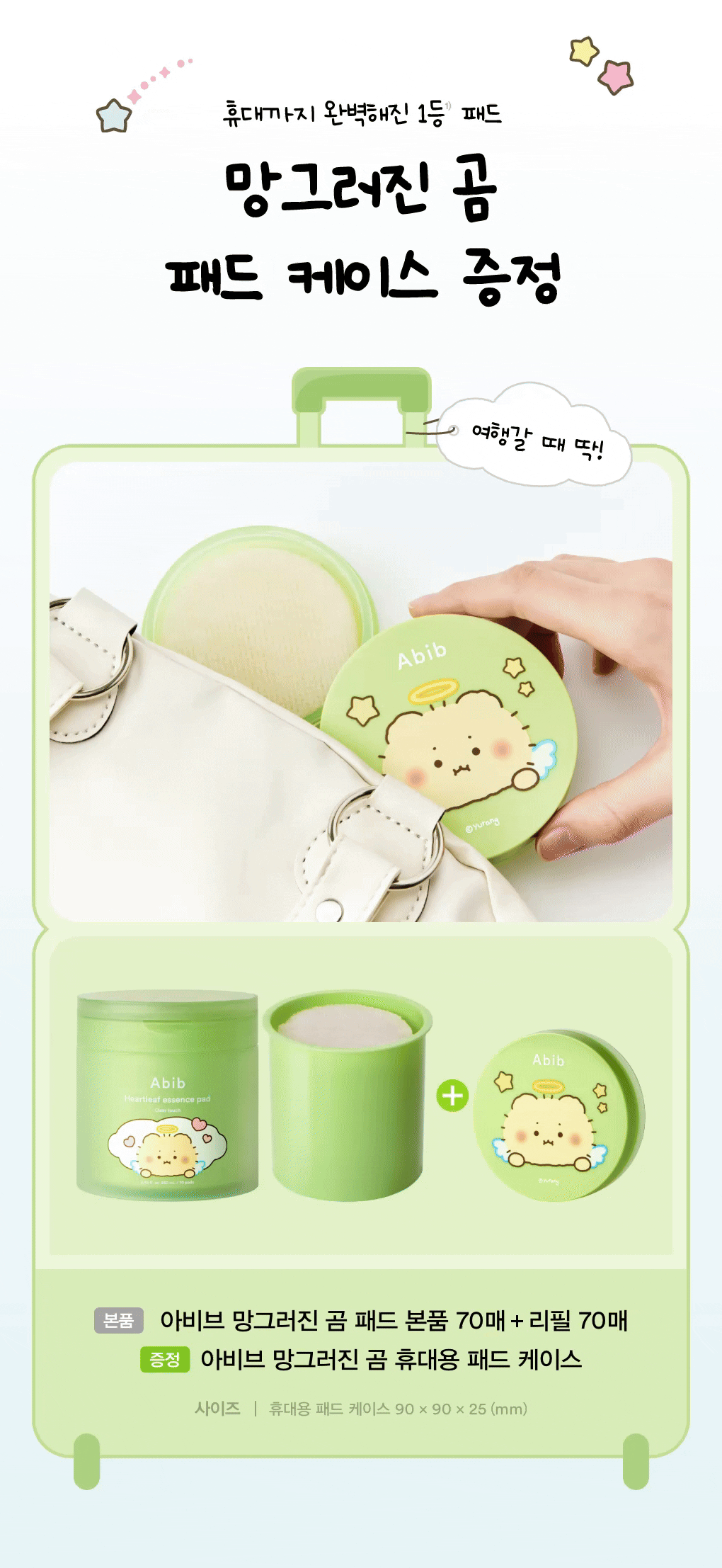【MangGom聯名】Abib積雪草修護精華化妝棉Clear Touch 70片組(加贈70片補充包+專屬收納盒)