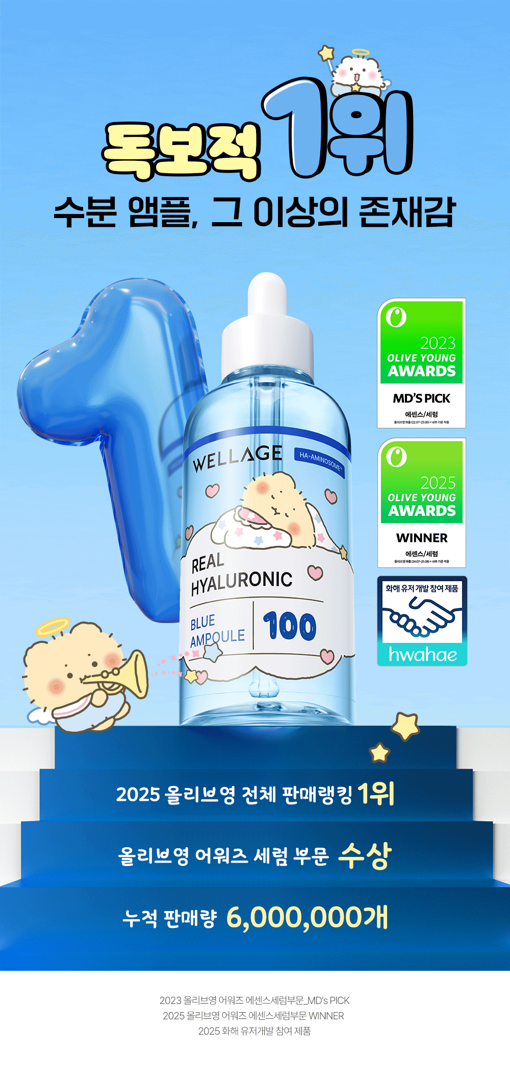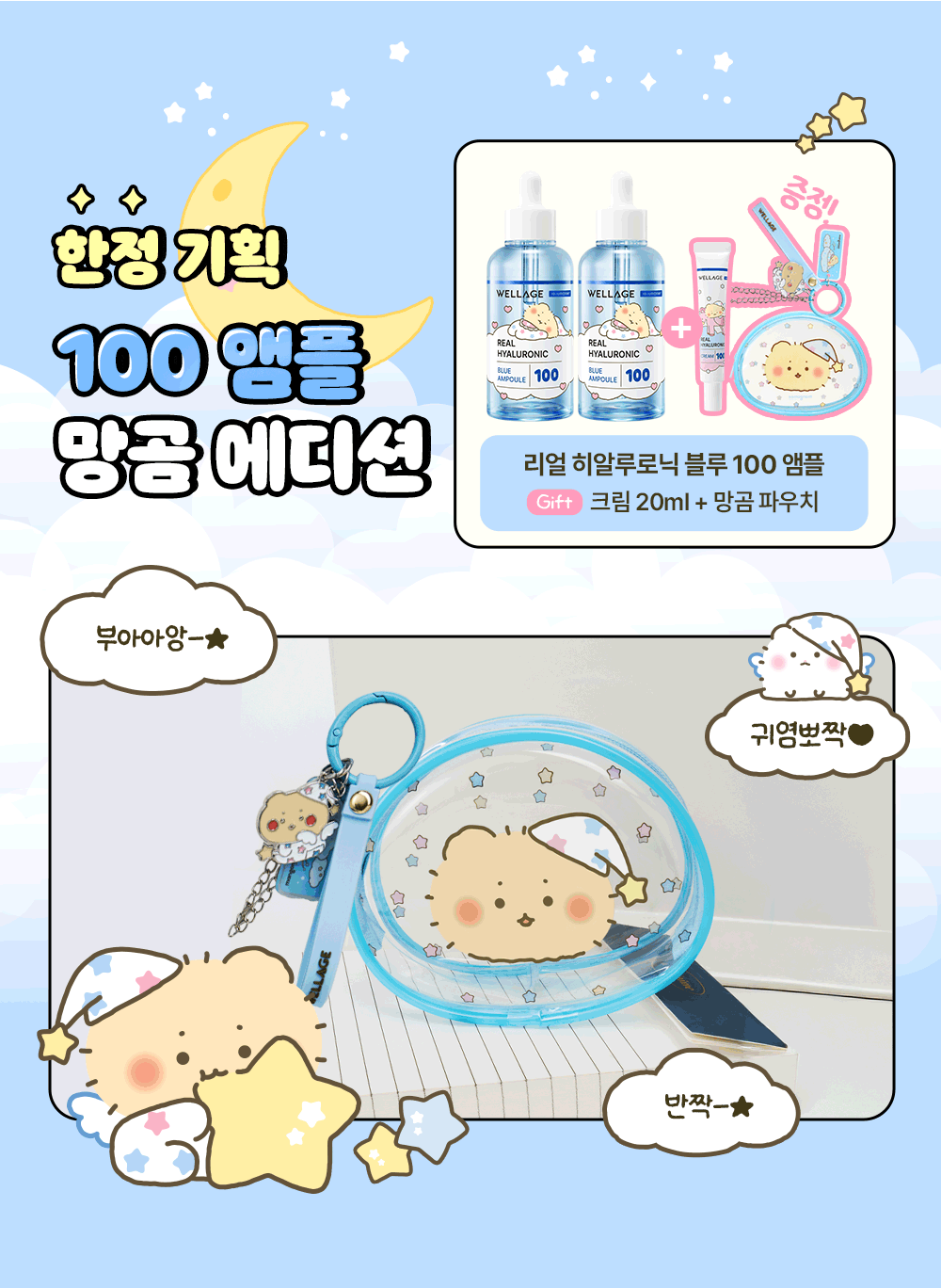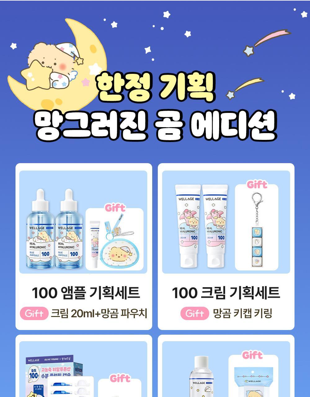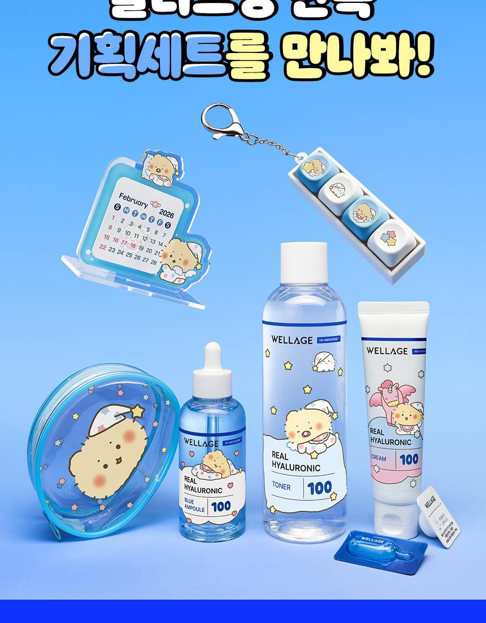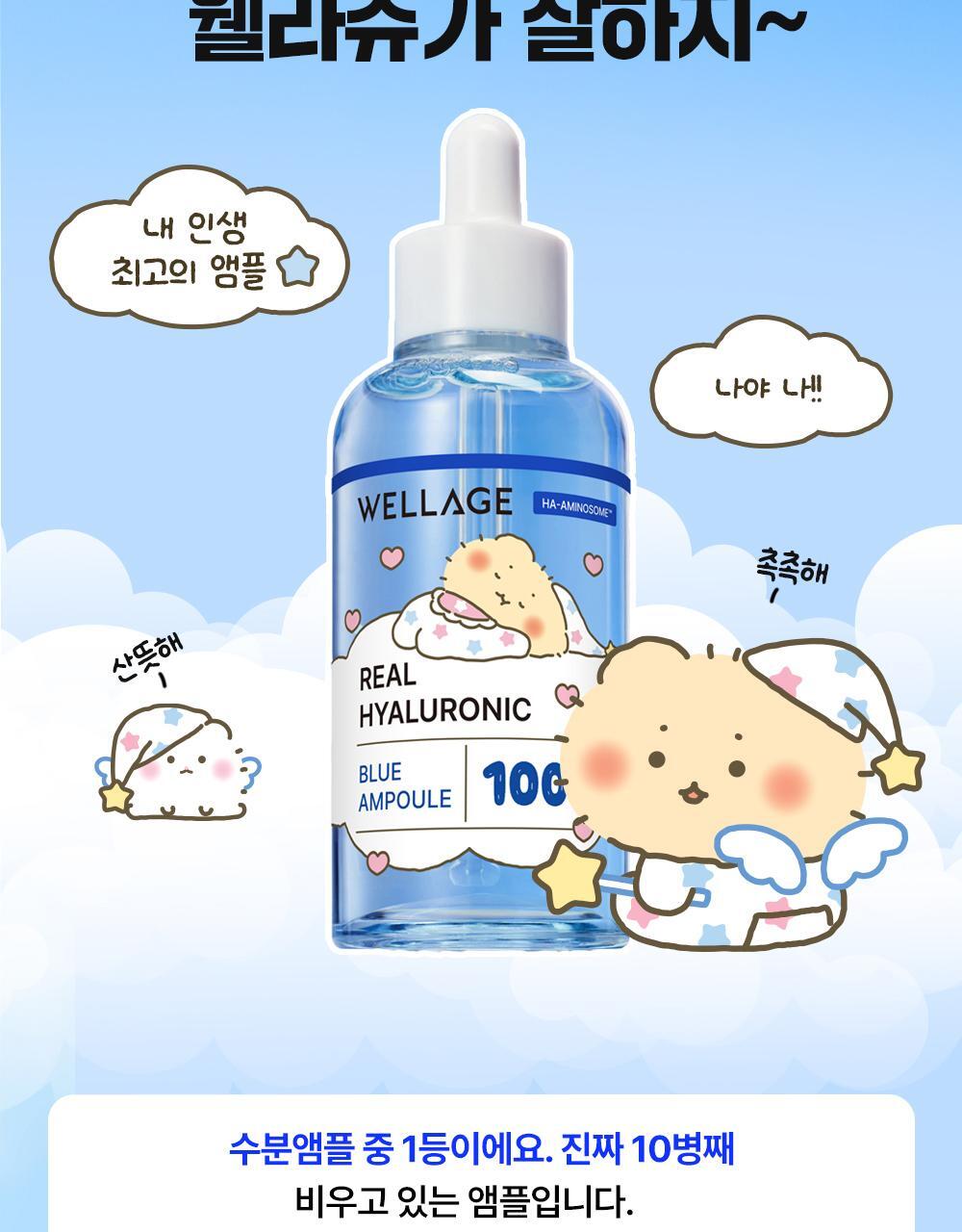 【MangGom聯名】Wellage Real Hyaluronic Blue 100安瓶75ml雙入組(附20ml面霜+PVC收納包)