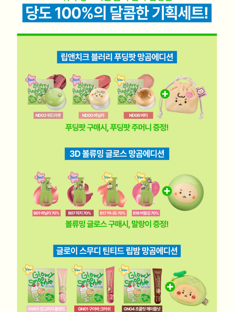 【MangGom聯名/購買活動】Fwee Glow Smoothie染色潤唇膏9.5g(附MangGom熊造型零錢包)