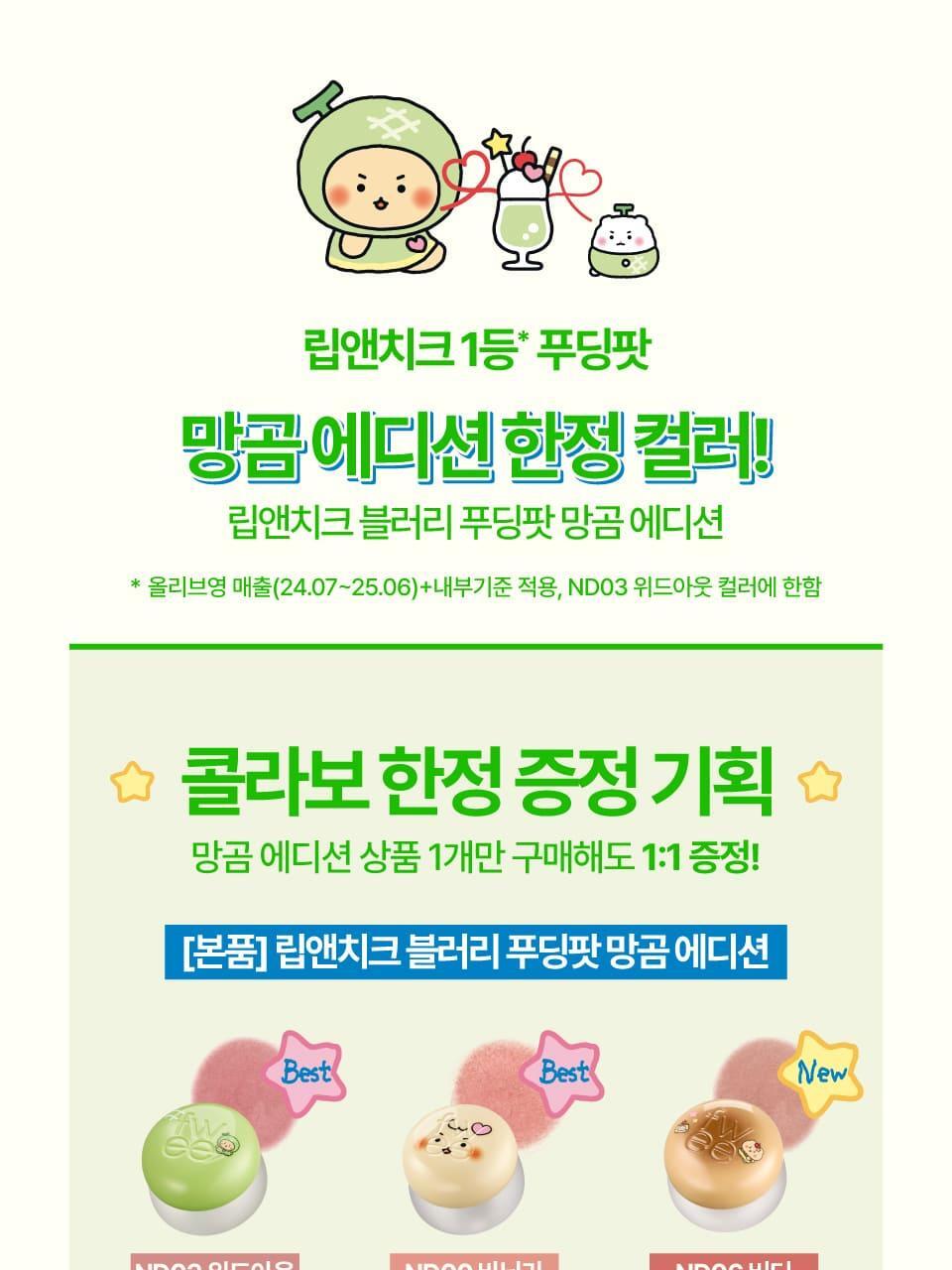【MangGom聯名/購買活動】Fwee Lip & Cheek Blurry Pudding Pot 5g(附MangGom熊布丁罐收納袋)