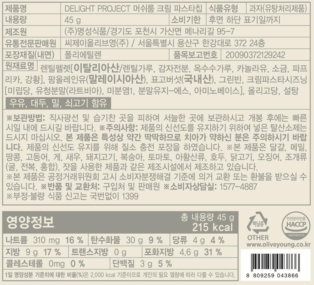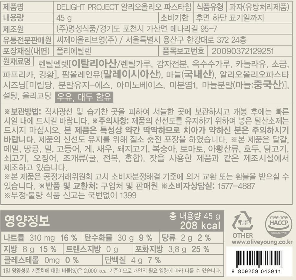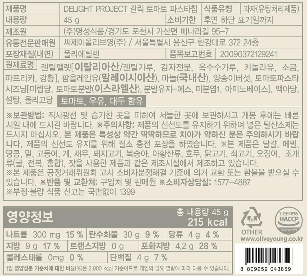 【3月 Olive Young 精選】韓國Delight Project 義大利麵脆片/馬鈴薯薄片 (2+1)