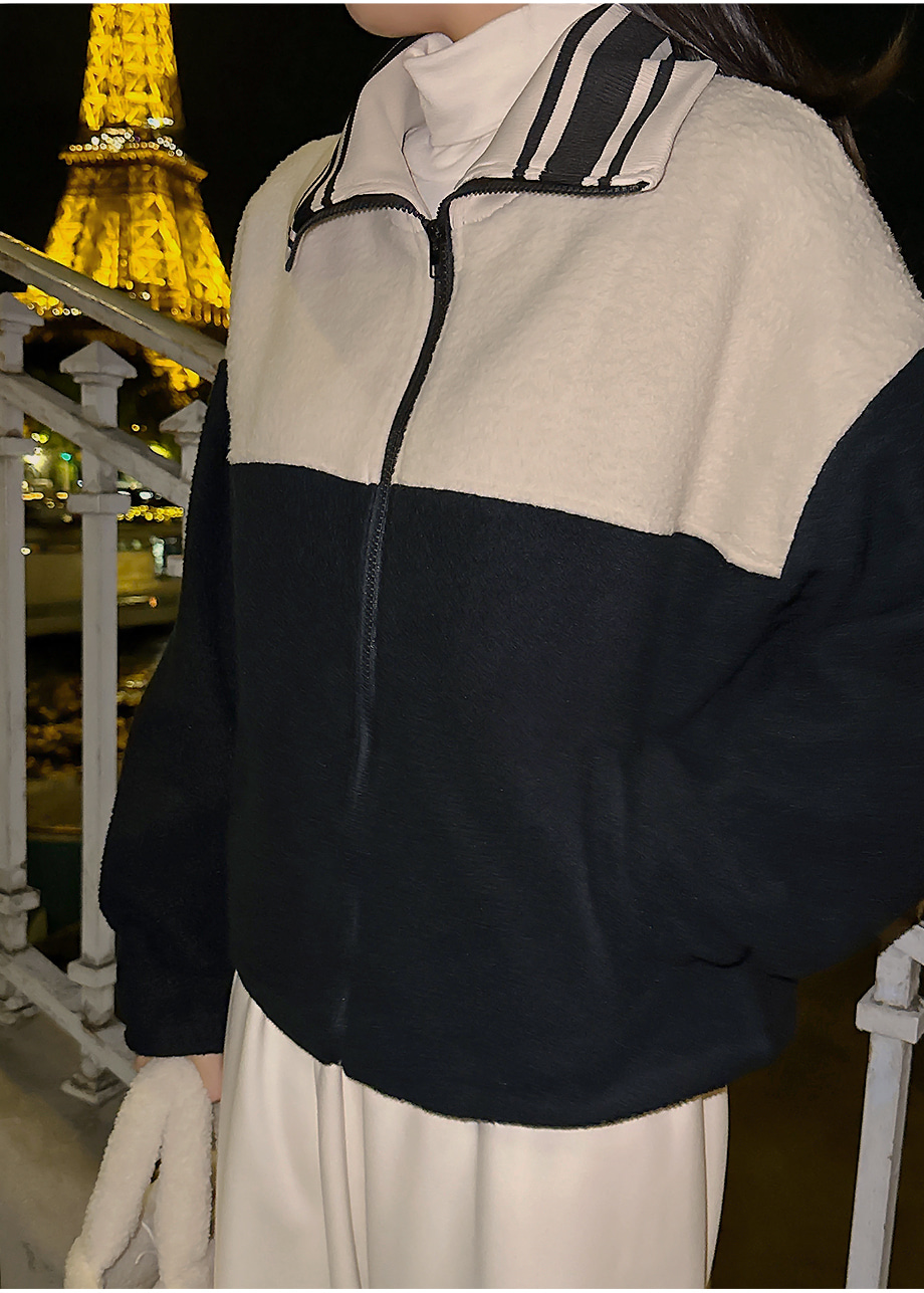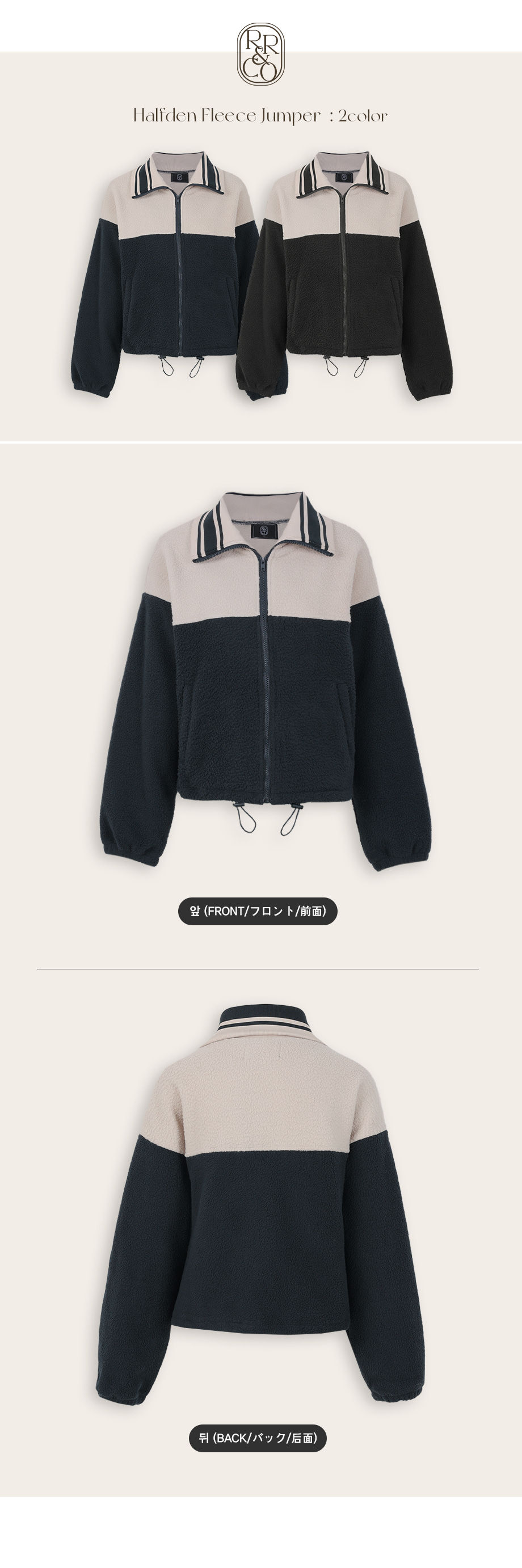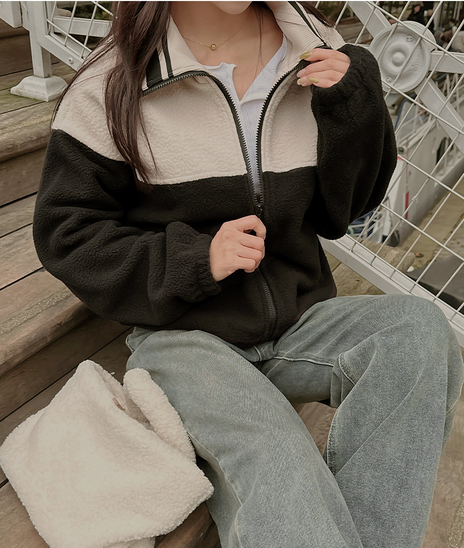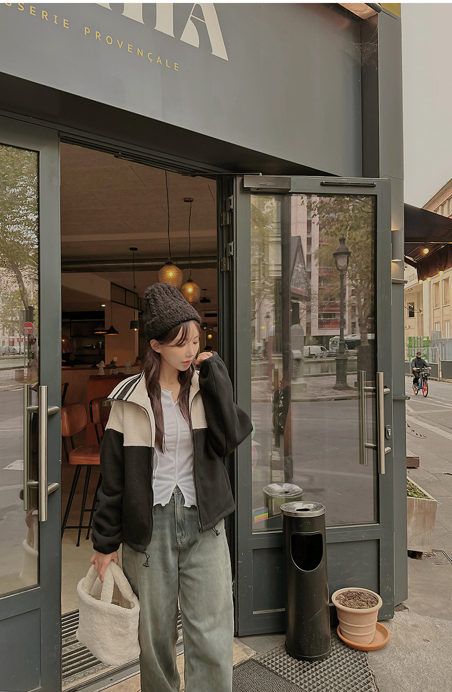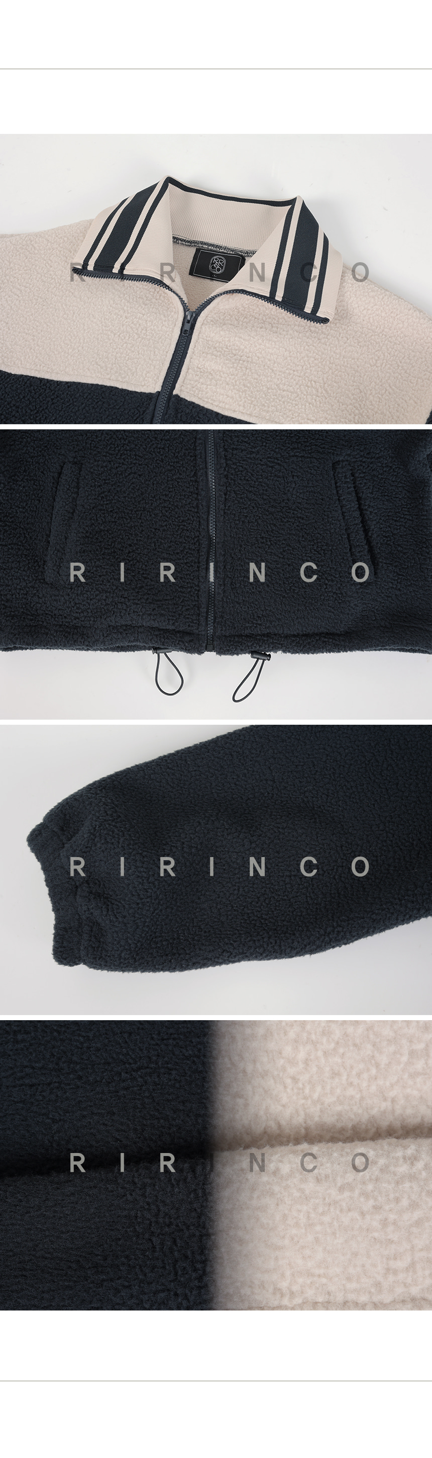 ririnco-하프덴 양털 배색 스트링 집업 점퍼♡韓國女裝外套