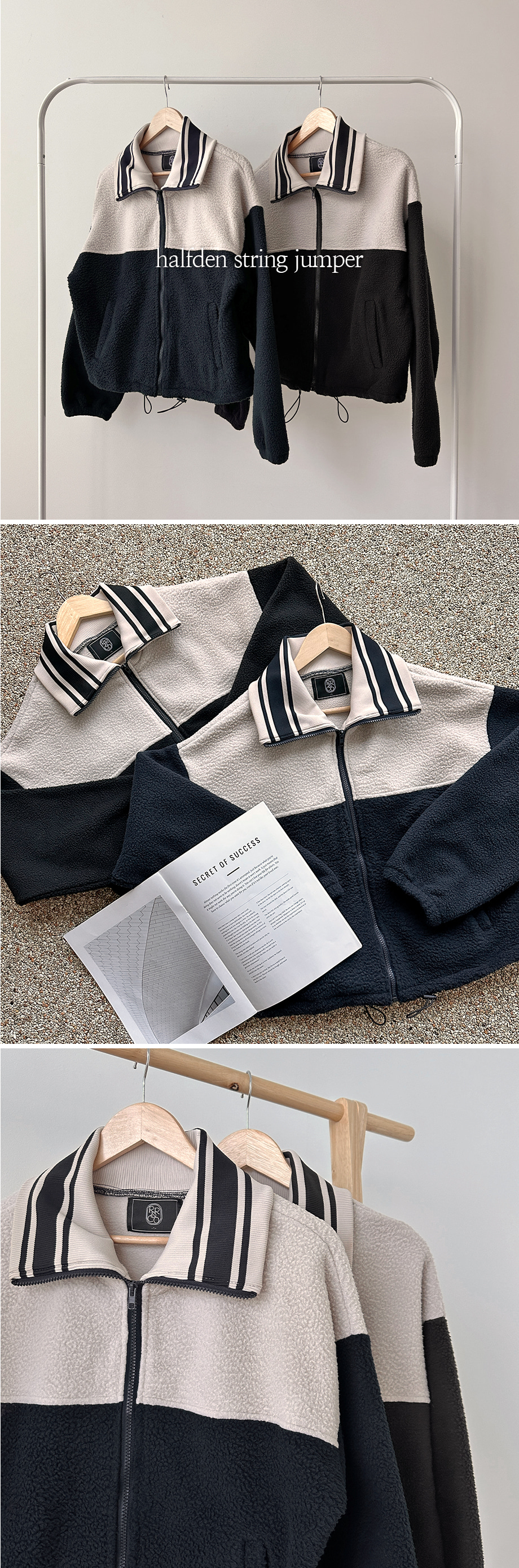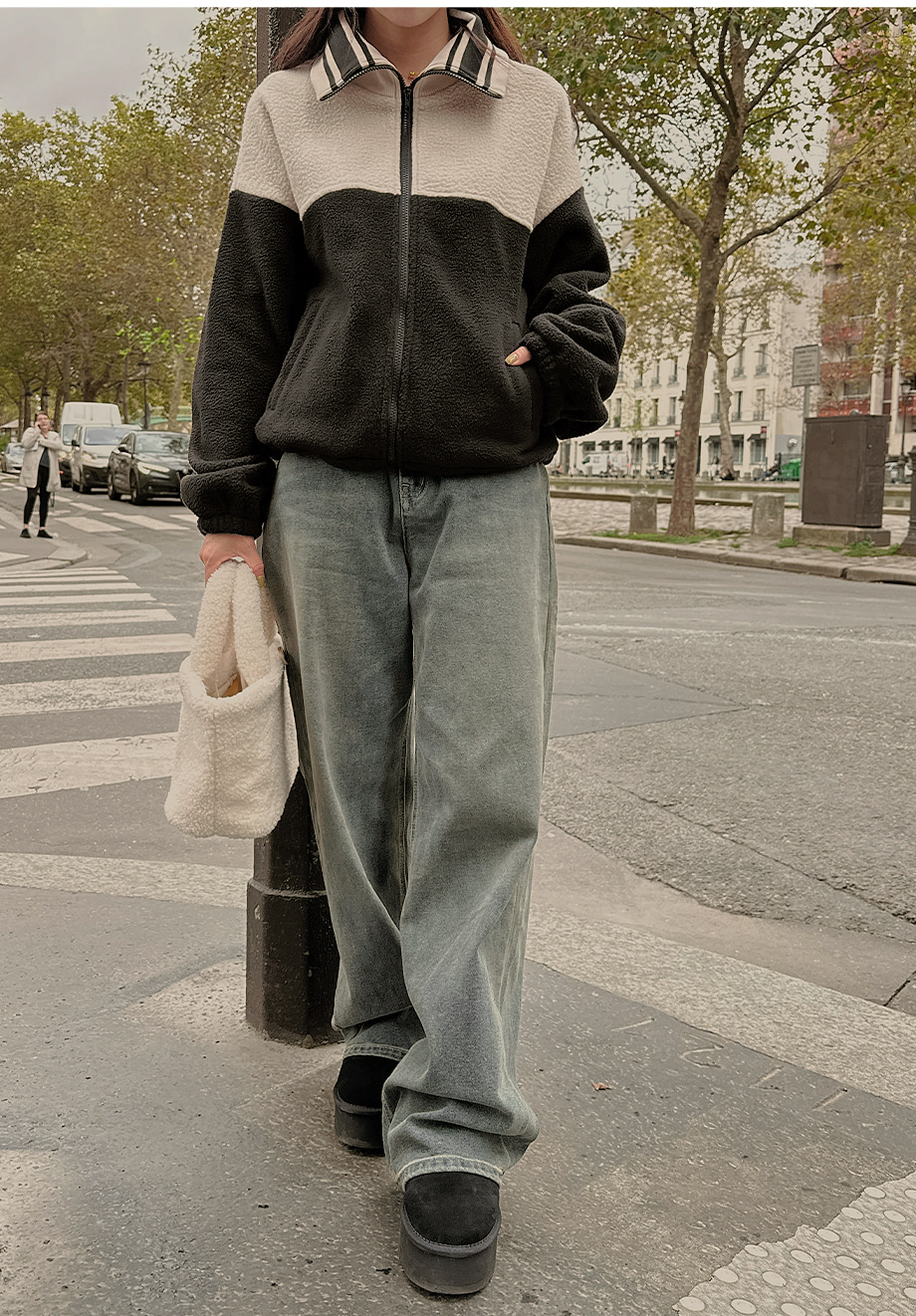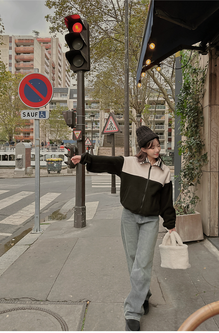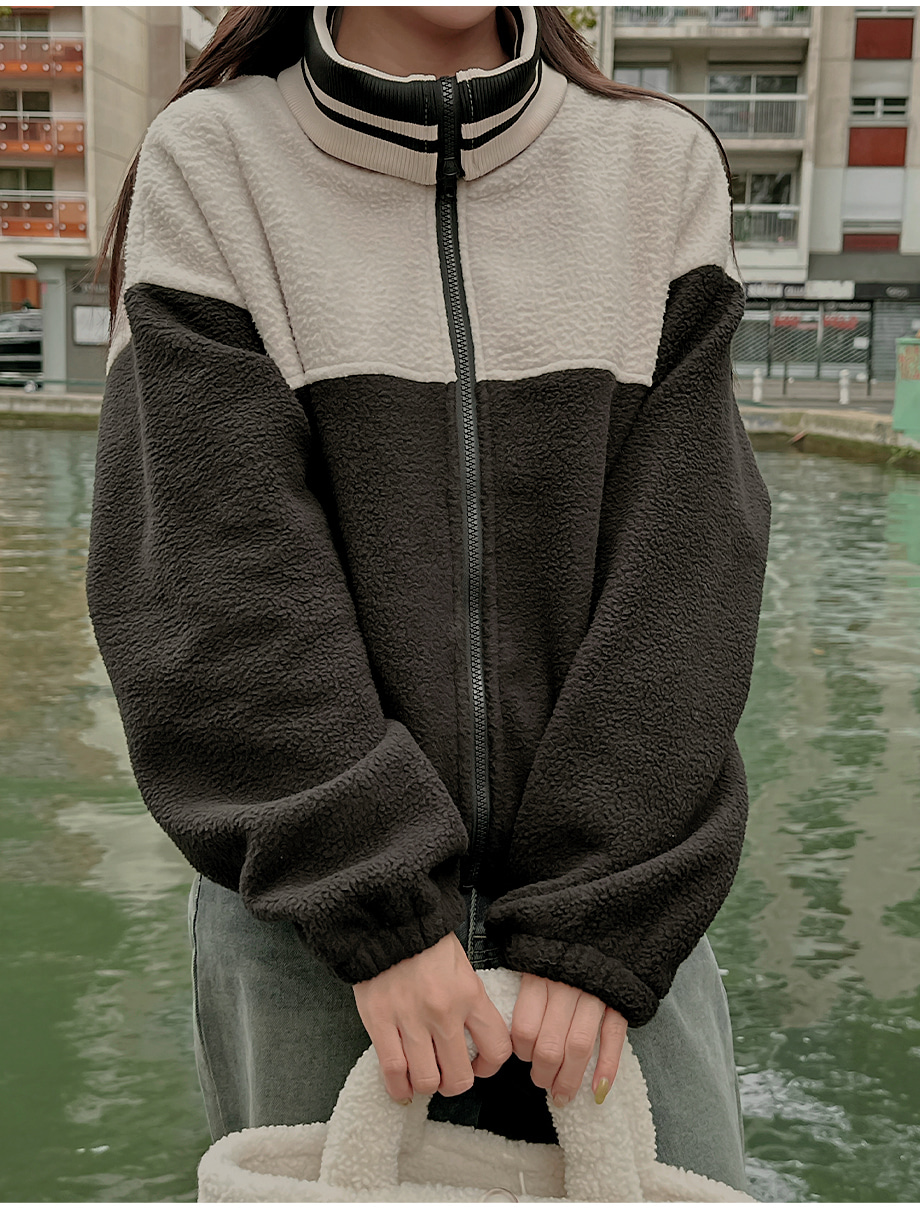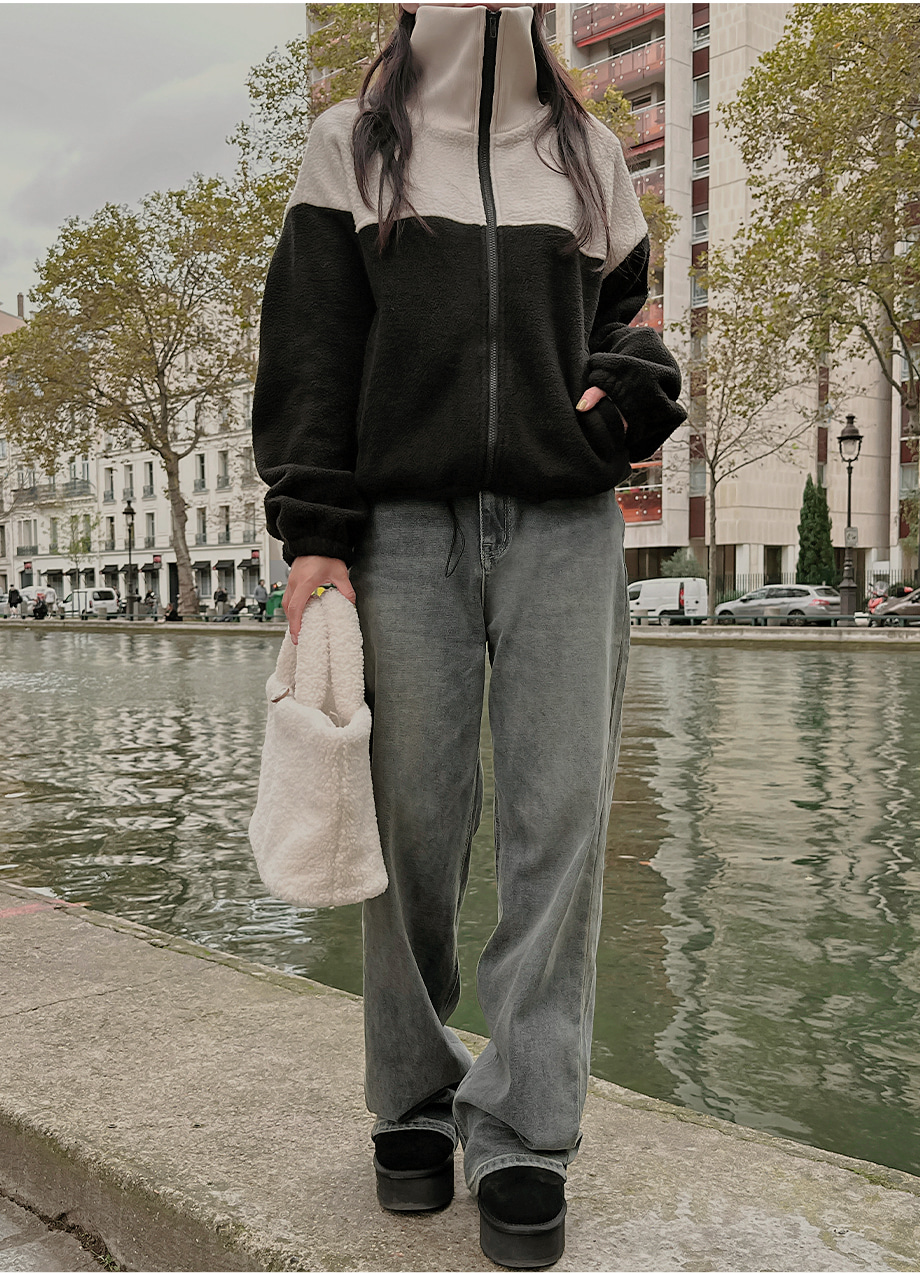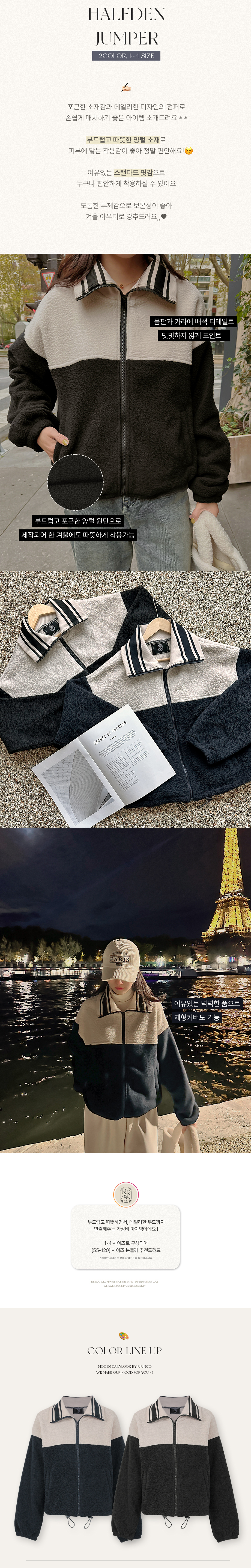 ririnco-하프덴 양털 배색 스트링 집업 점퍼♡韓國女裝外套