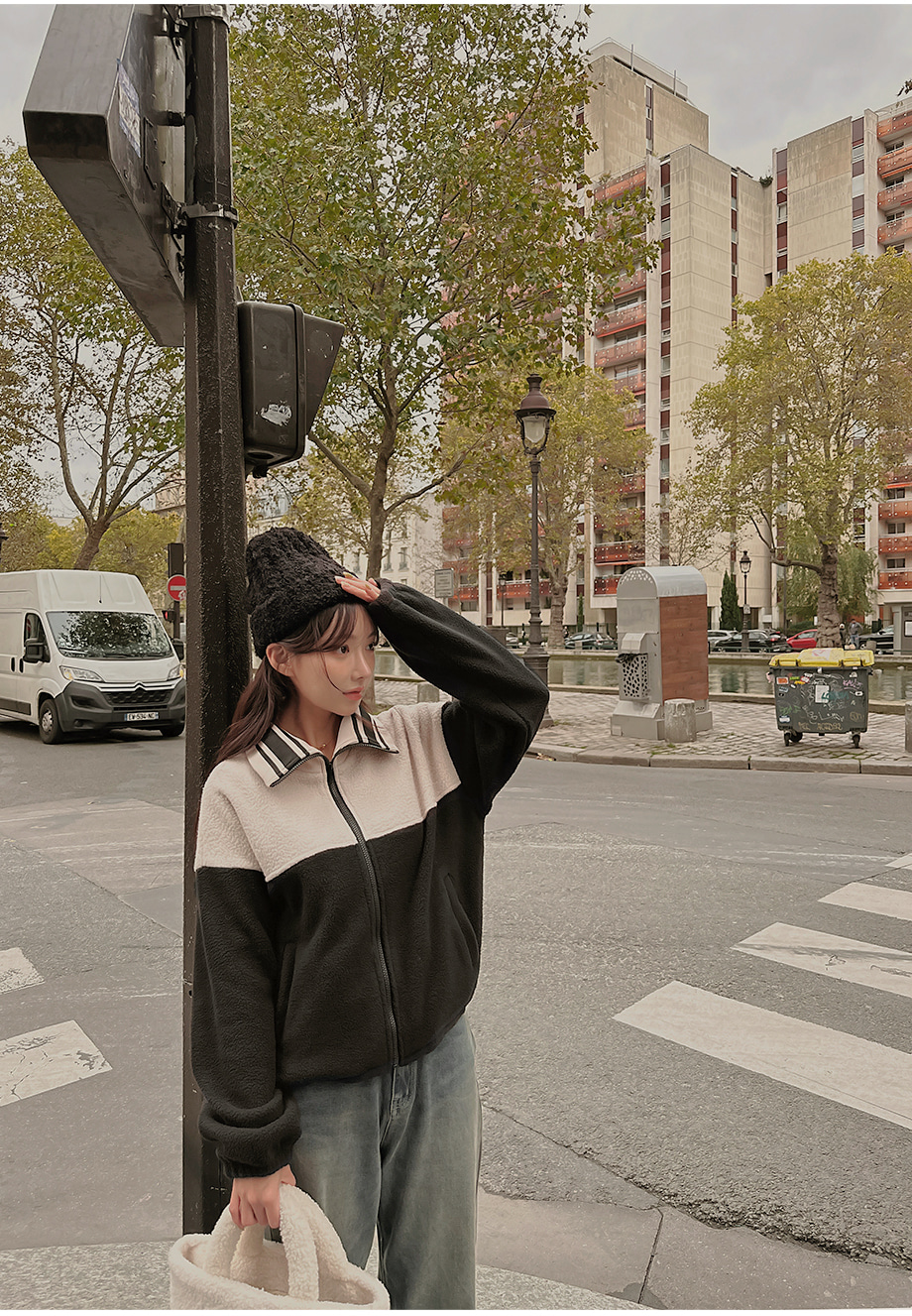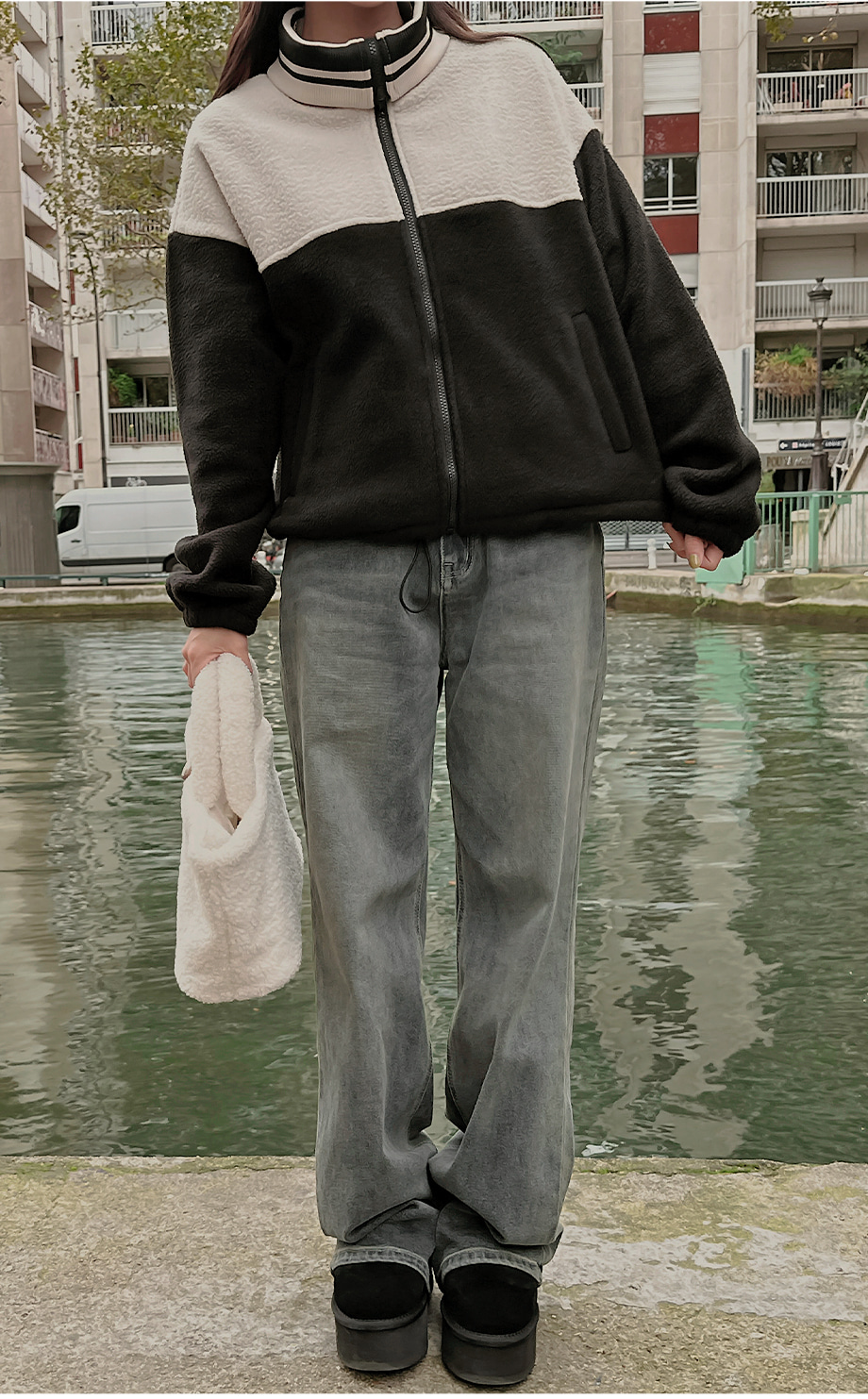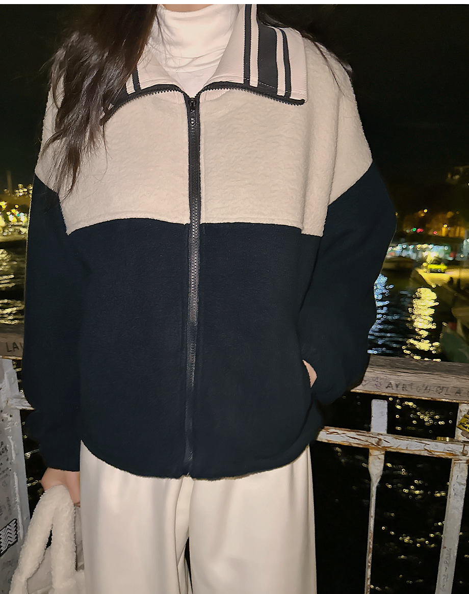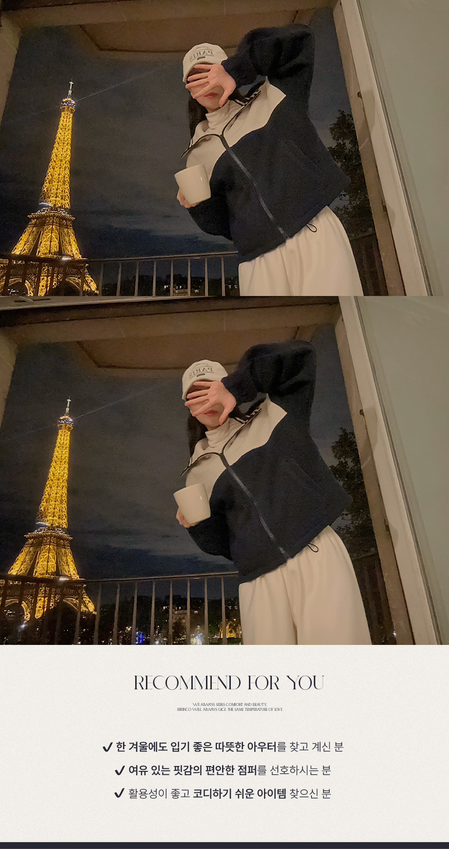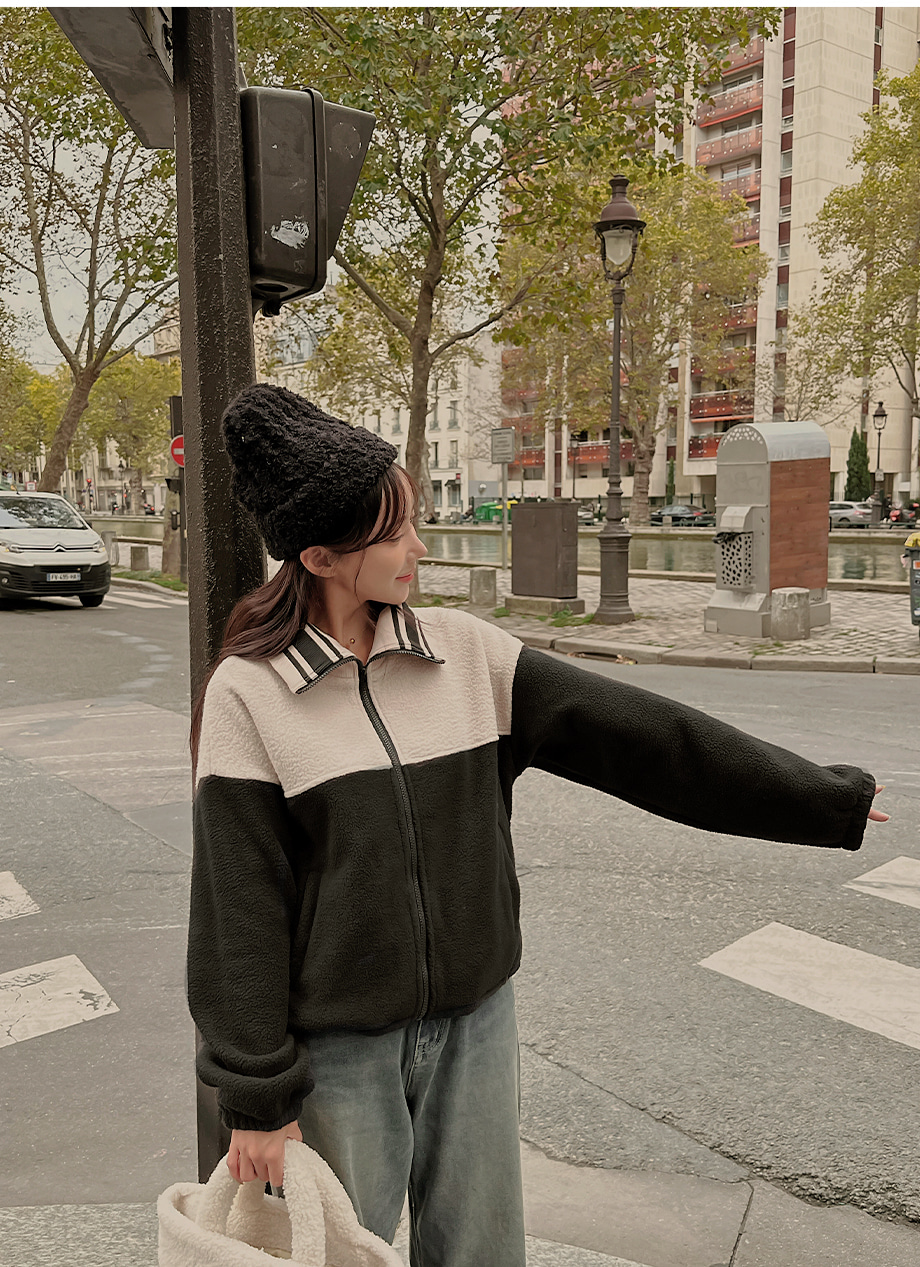 ririnco-하프덴 양털 배색 스트링 집업 점퍼♡韓國女裝外套