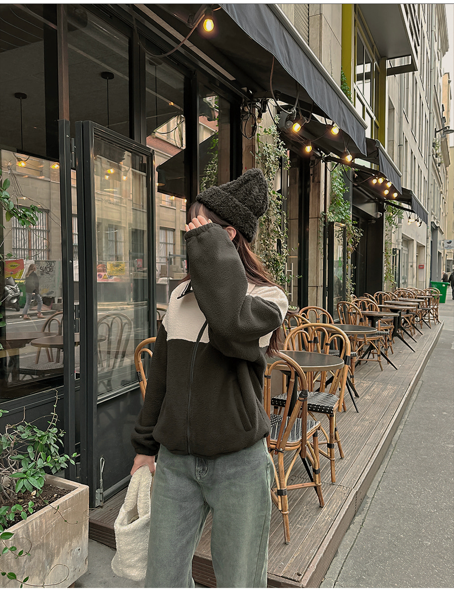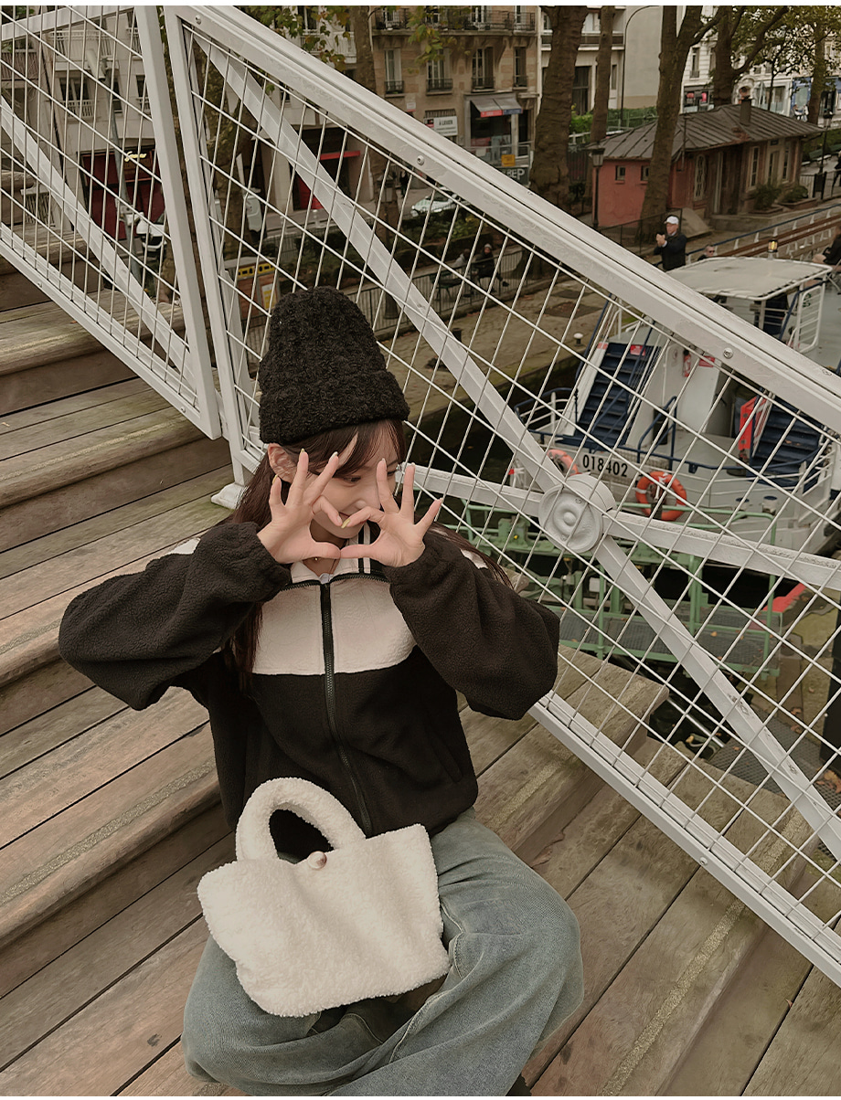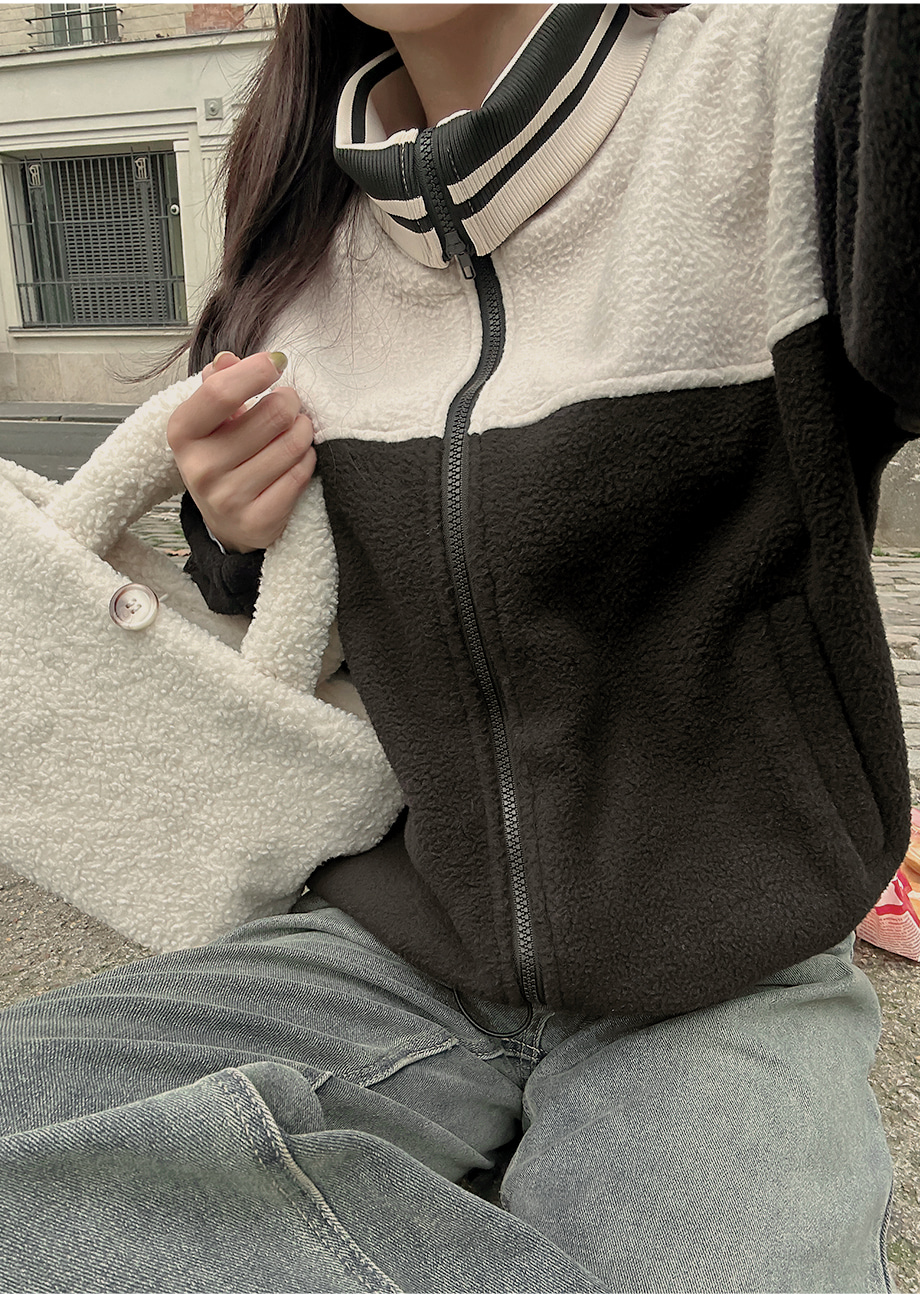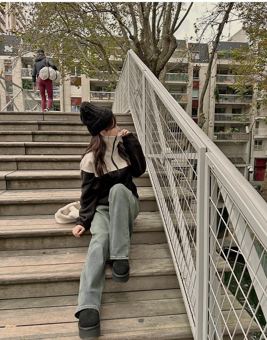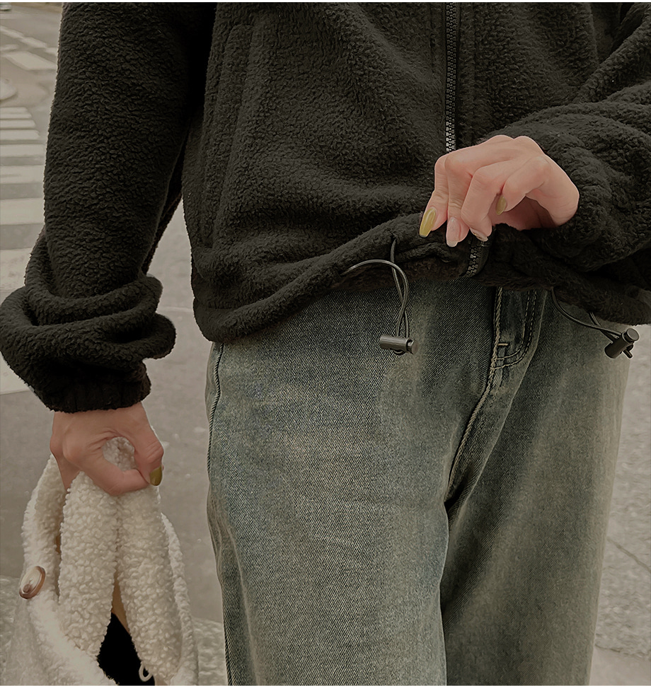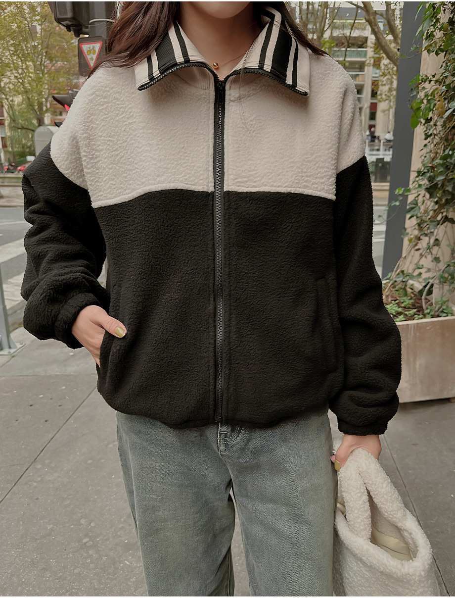 ririnco-하프덴 양털 배색 스트링 집업 점퍼♡韓國女裝外套