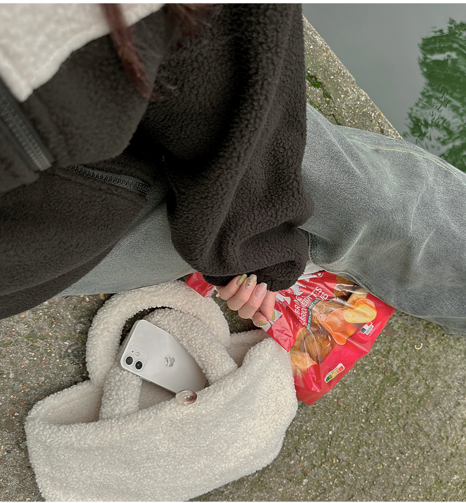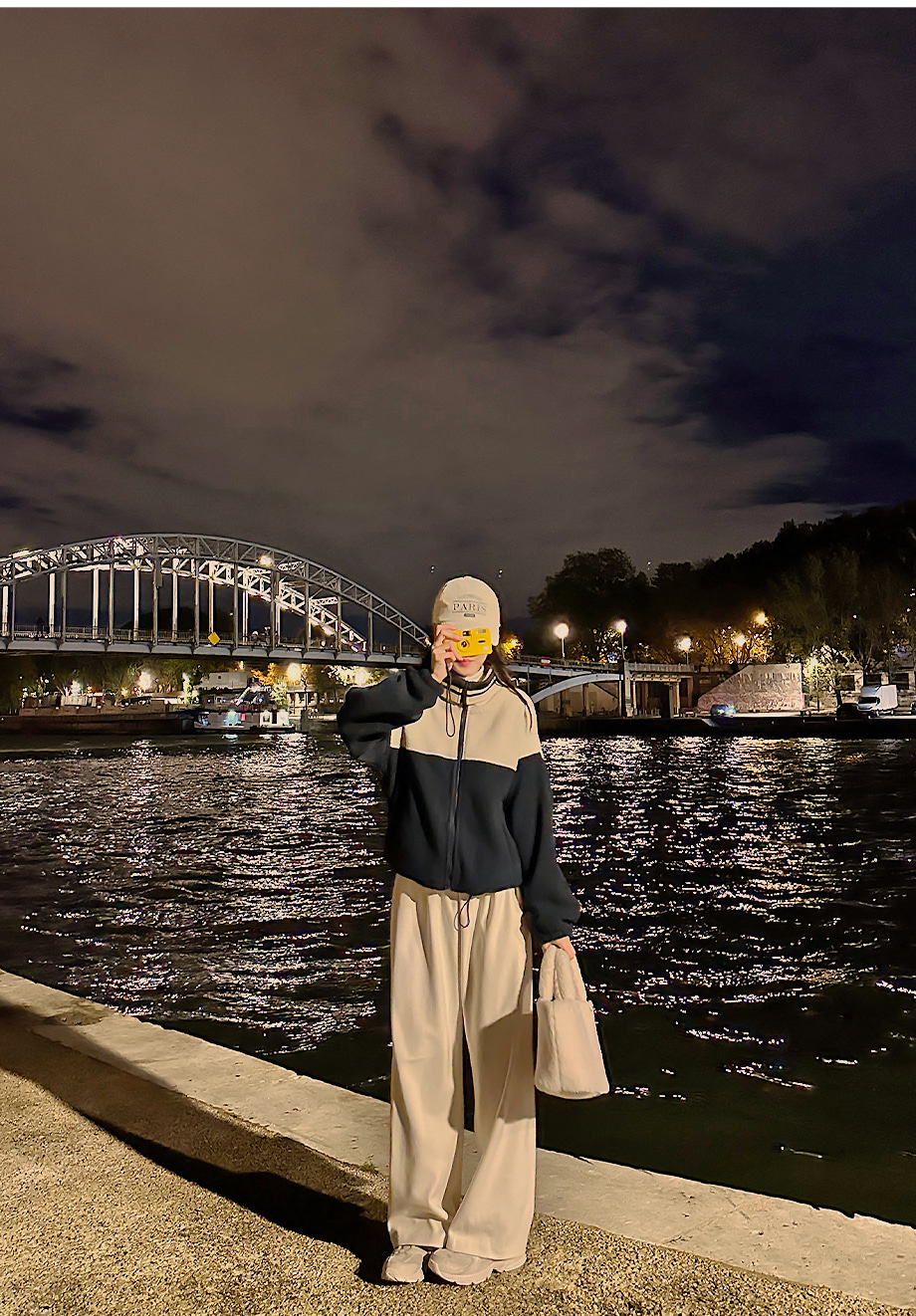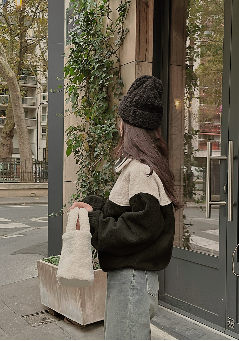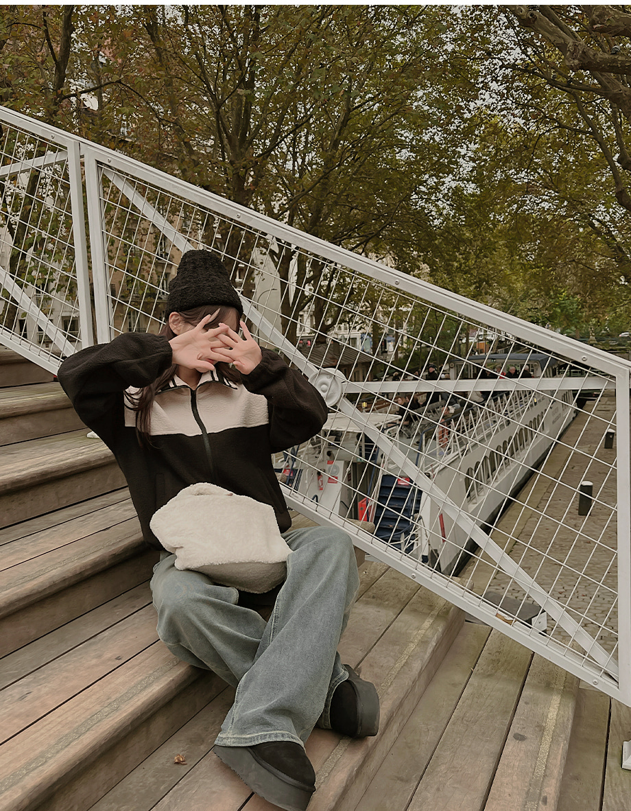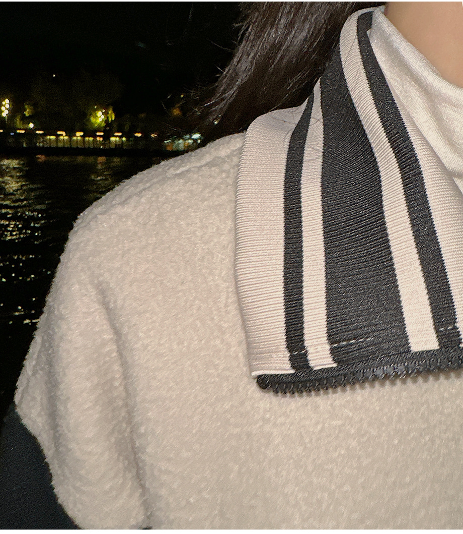 ririnco-하프덴 양털 배색 스트링 집업 점퍼♡韓國女裝外套